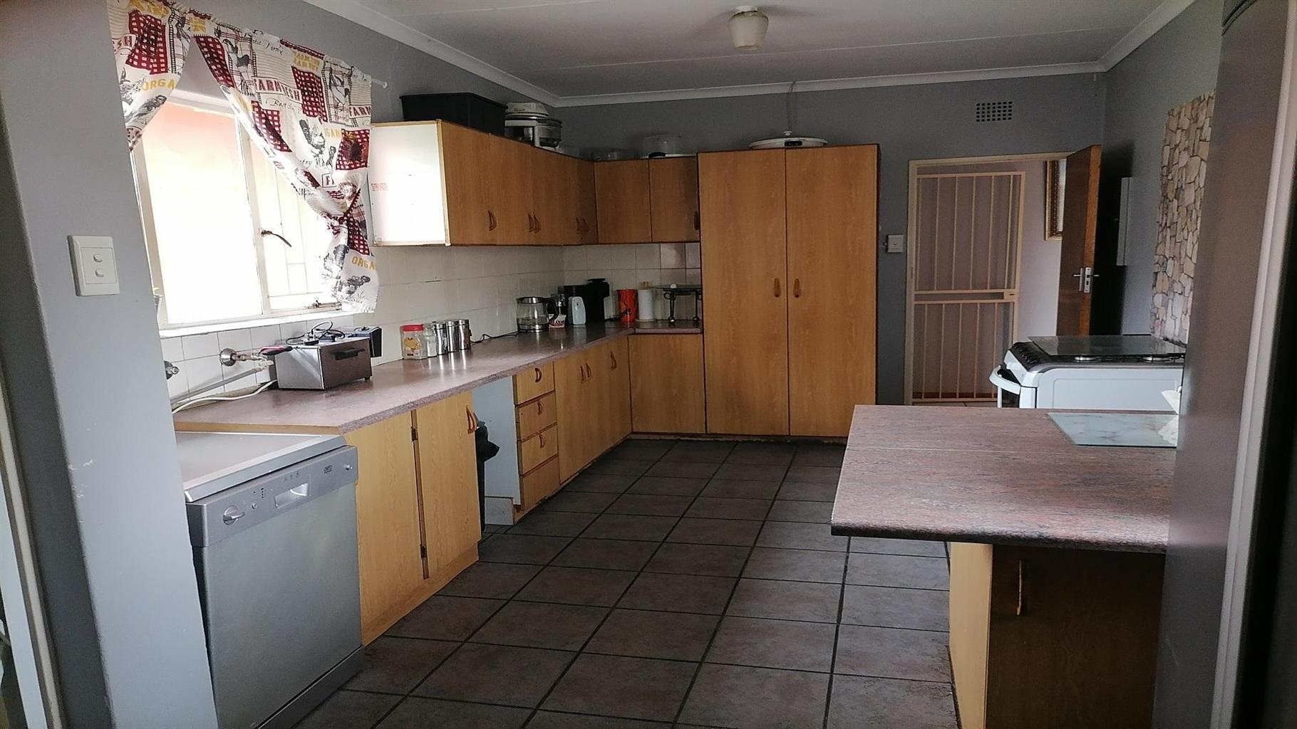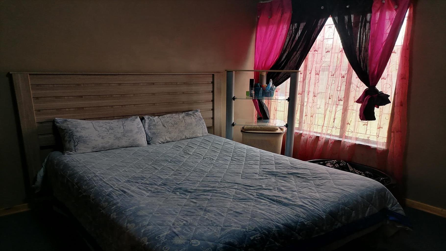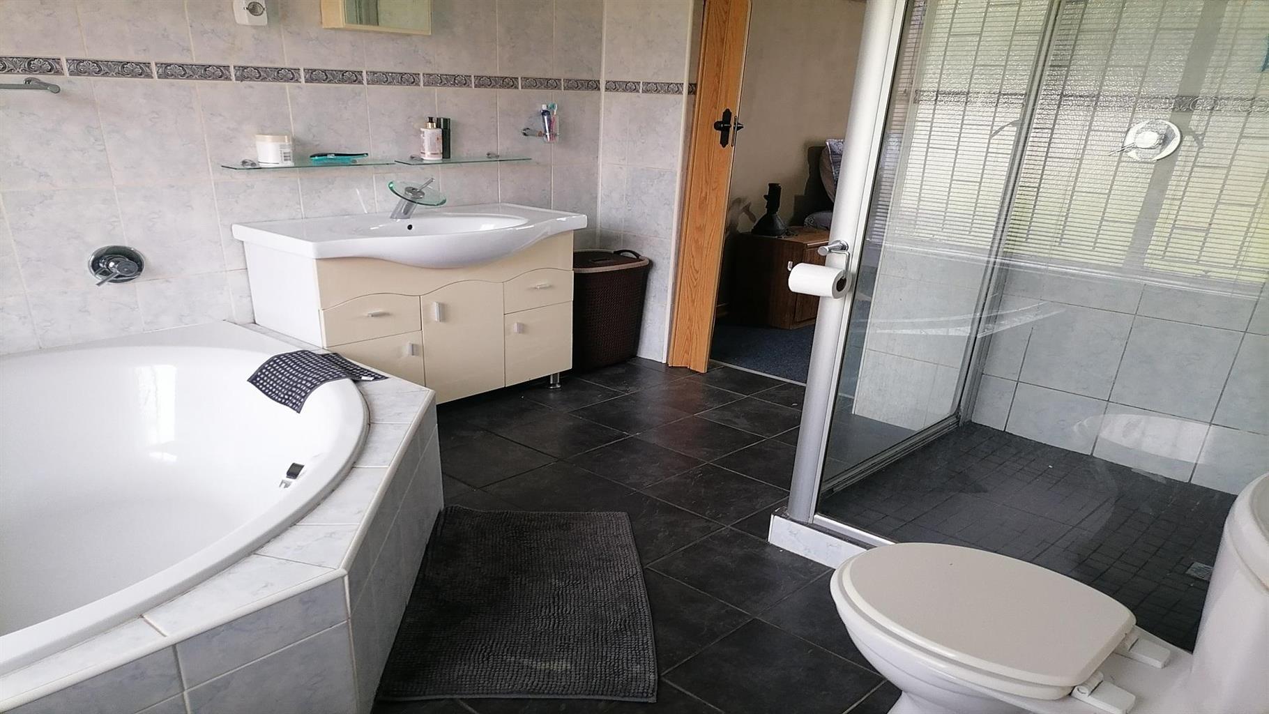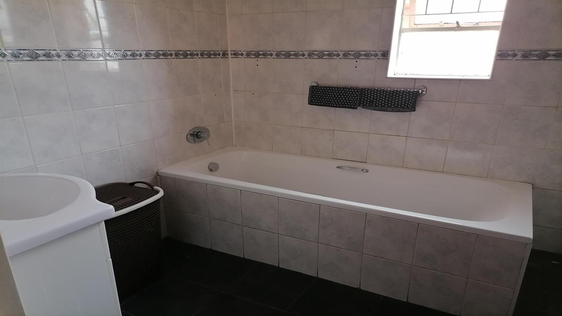 This home welcomes you with a nice spacious open plan lounge/dining room and TV room. A private covered braai area next to the swimming pool to relax for the whole family in the hot summer days. Nice kitchen with build in cupboards and an extra room for overnight guests with a scullery and quest toilet. There is a burglar gate that covers the 3 bedrooms. The main bedroom has an en suite bathroom with a nice big bath, shower, toilet and a build in cupboard for extra storage. Solar geyser and garages for 2 cars. It is close to schools, shopping centers and churches. Electric gate for eTasy life and secure fencing with Vosbeton and electric fencing. The whole house is covered with burglar bars for the safety of the family.
