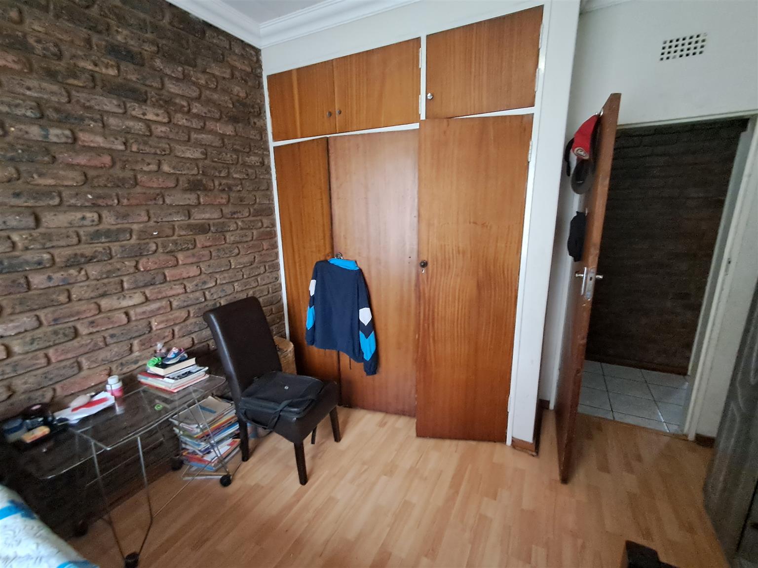 * Spacious bedroom with built-in cupboards,