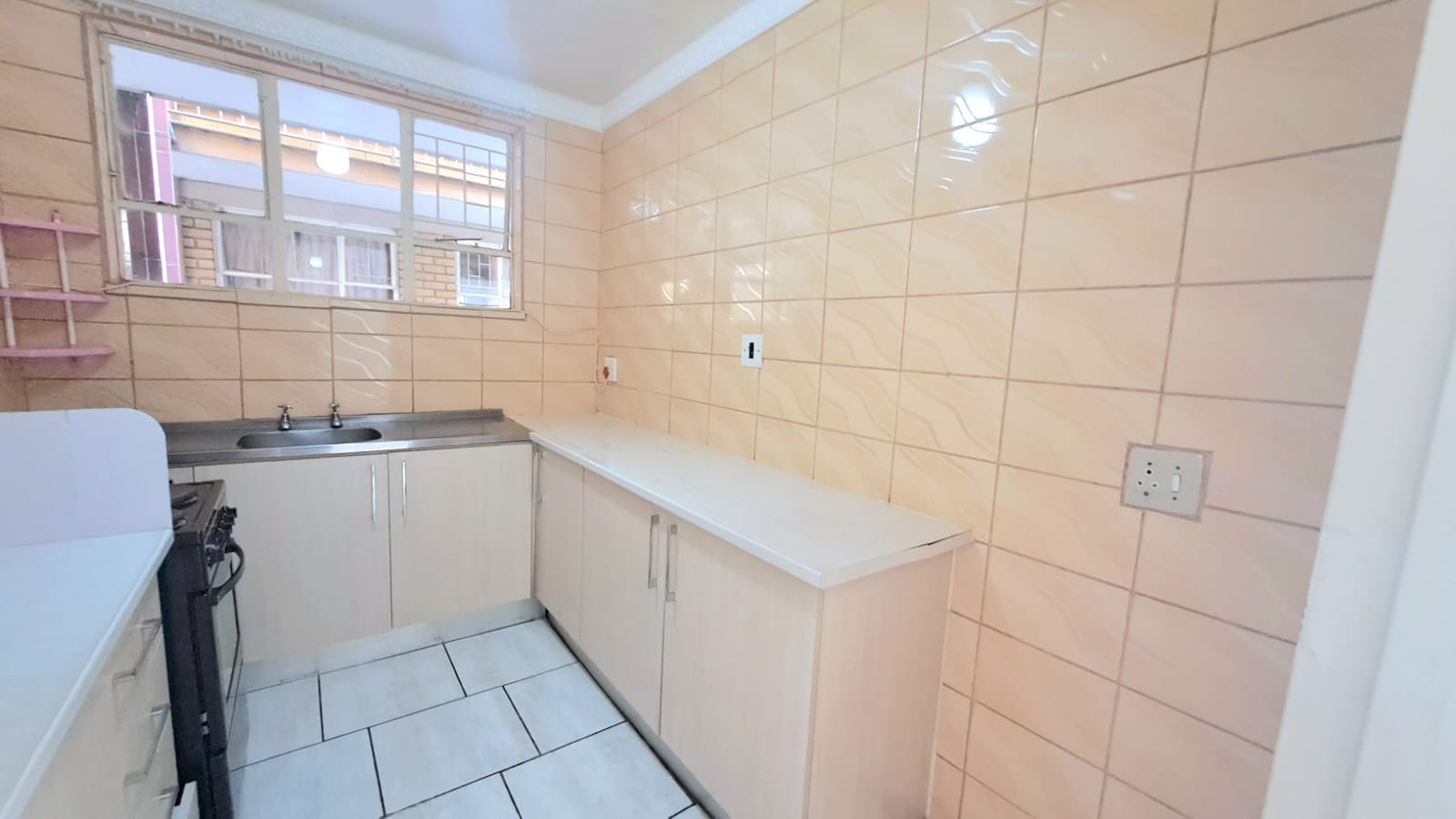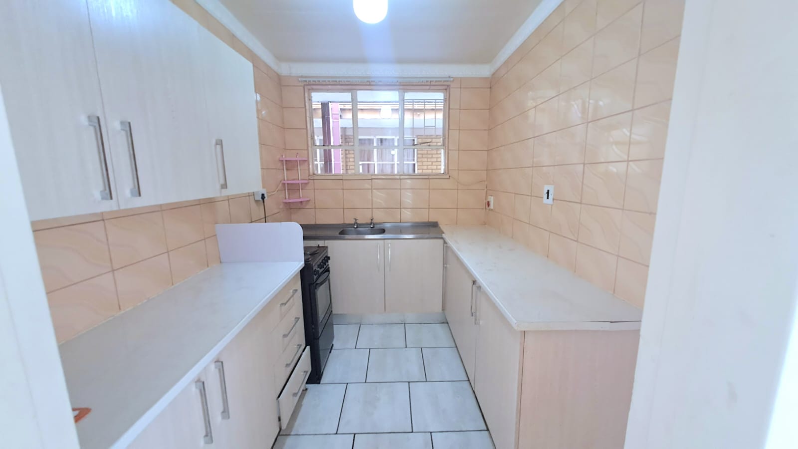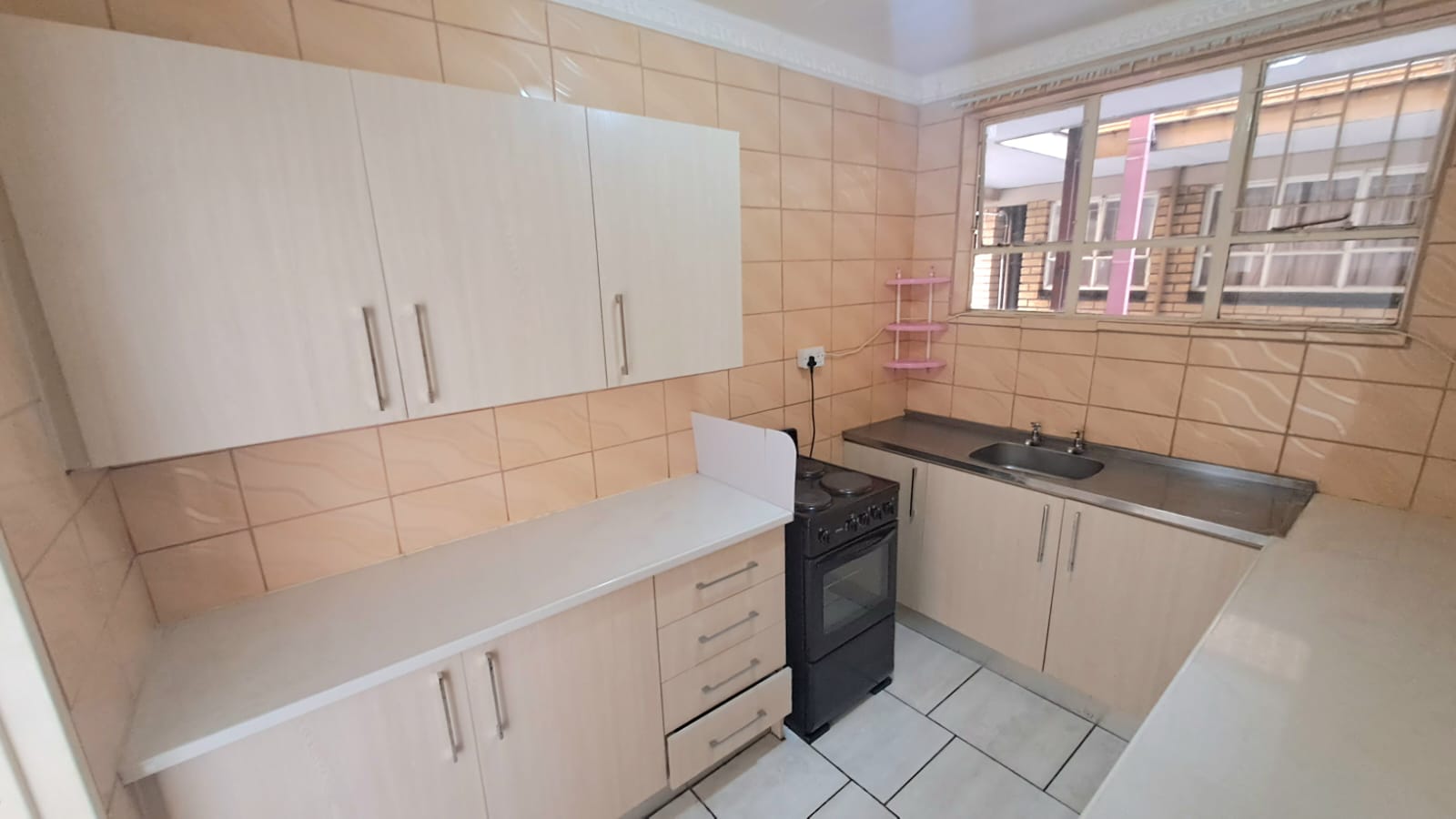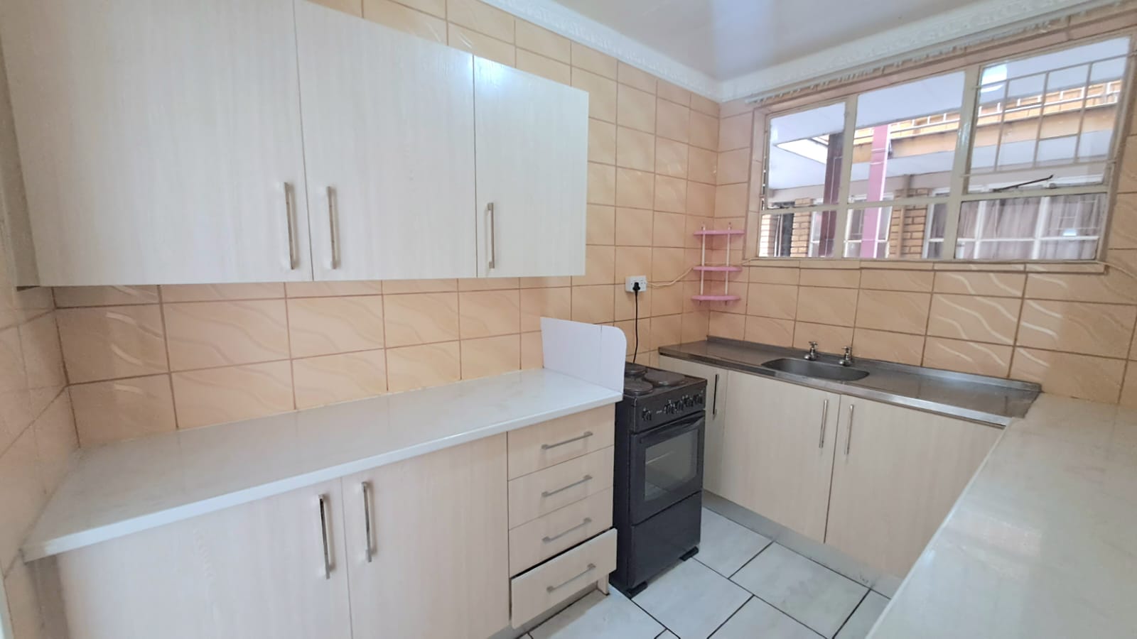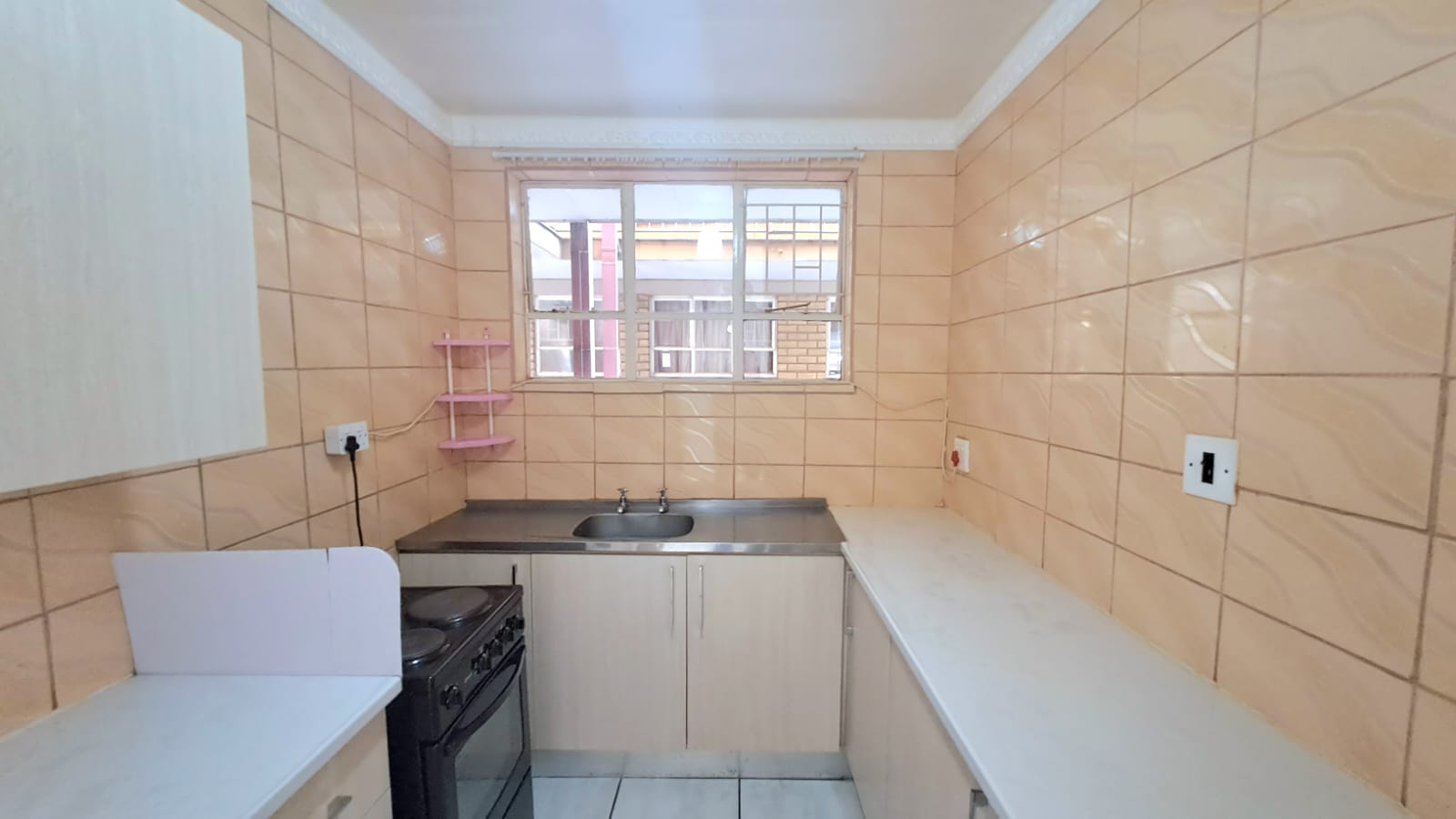 It offers a well-sized fully tiled lounge and dining room area, cozy kitchen with electric stove and ample cupboard space as well as 1 bathroom.