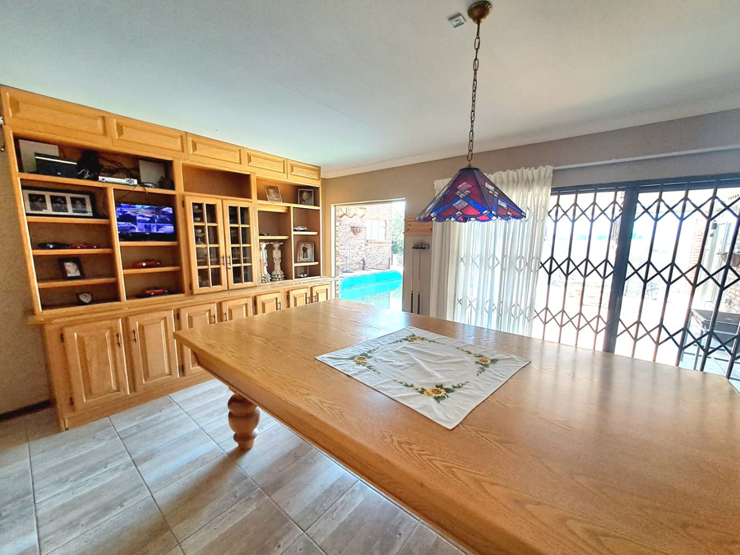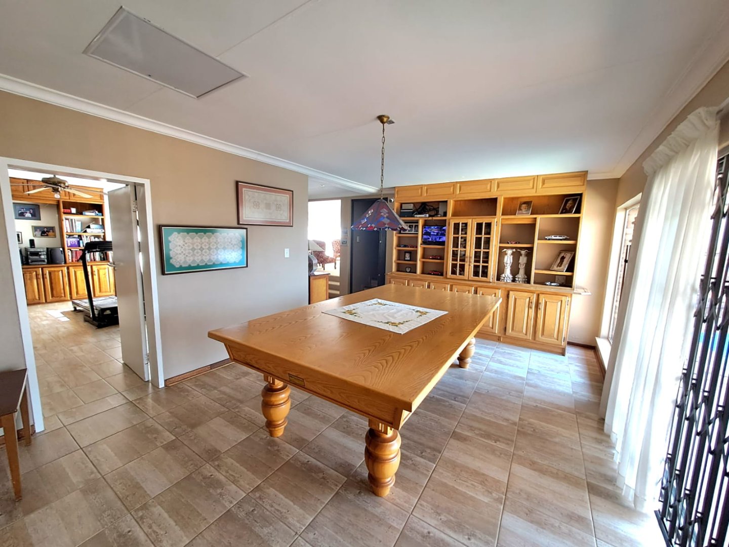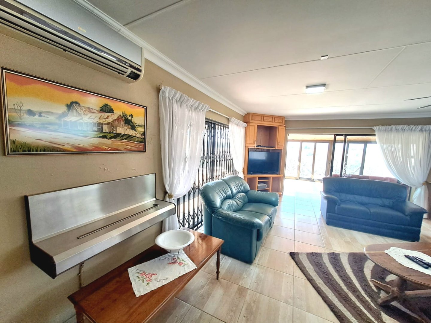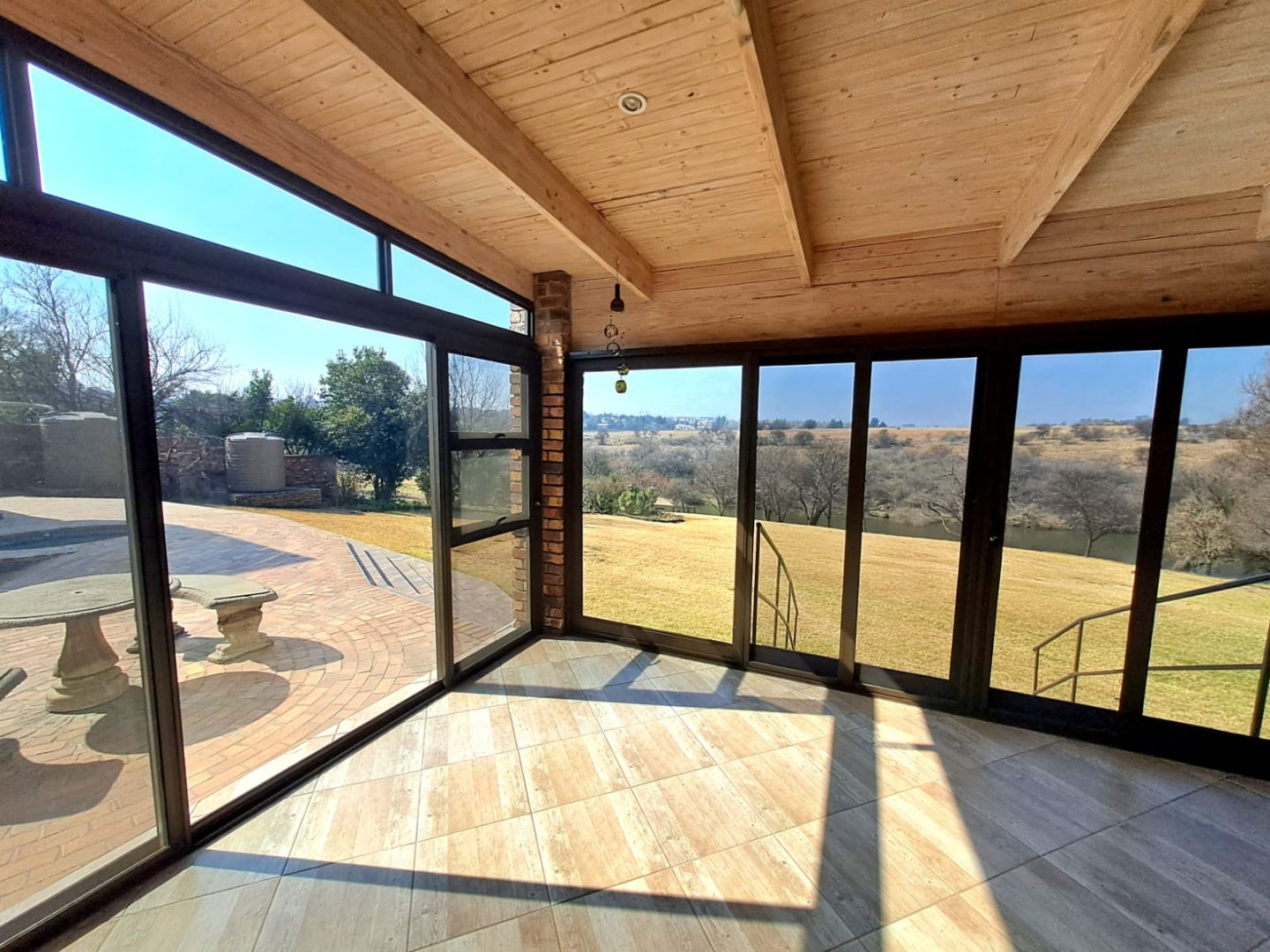 There is a lovely entertainment area with indoor braai, overlooking the river, and opening up to the sparkling blue pool.
