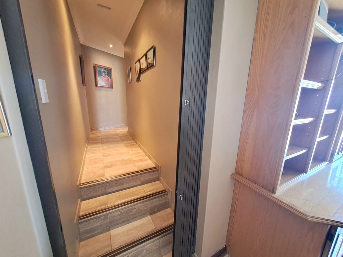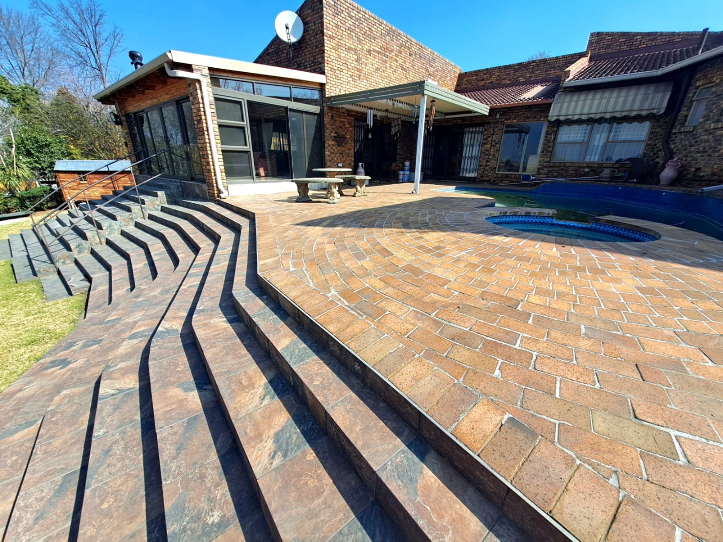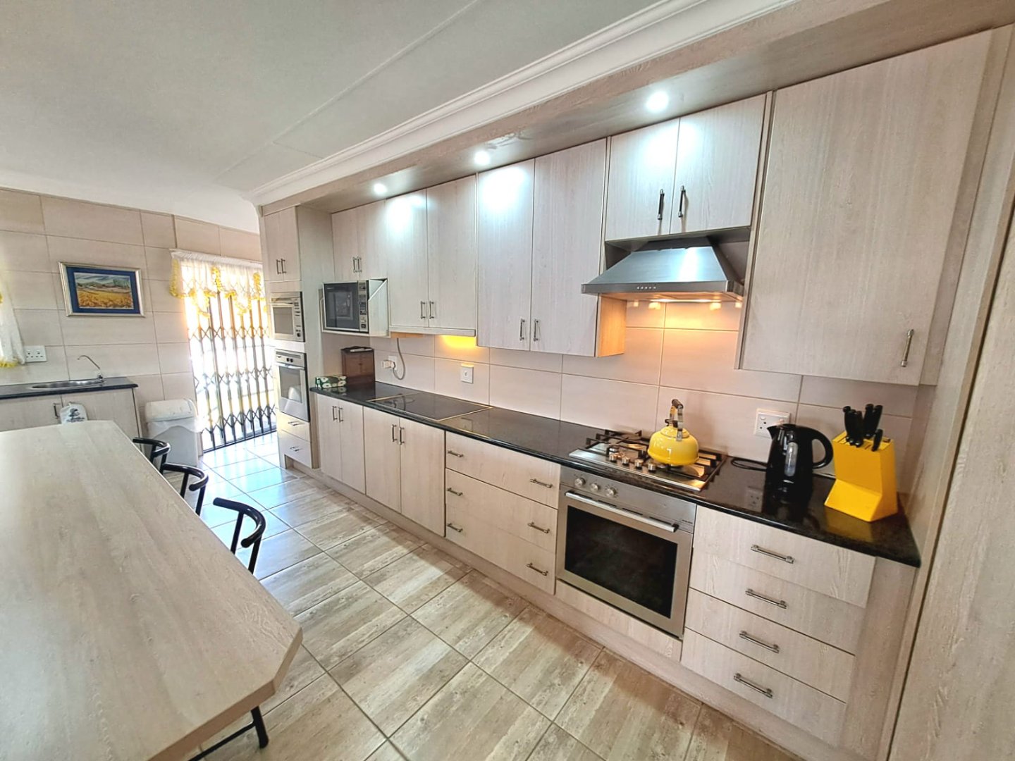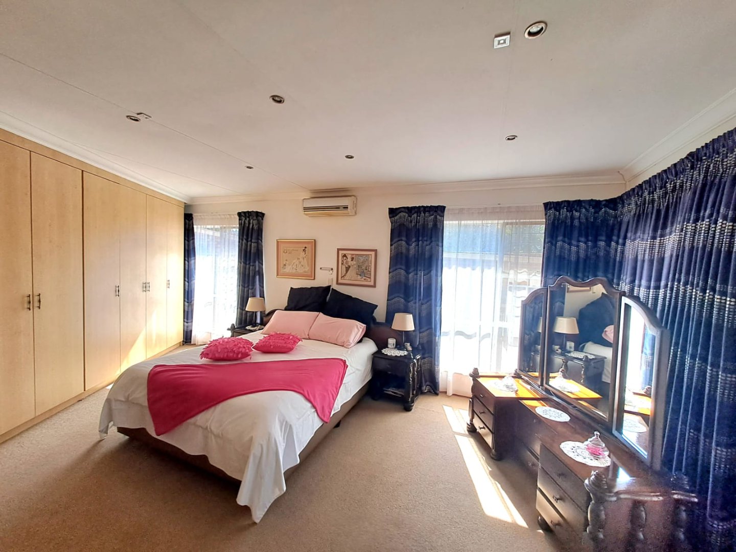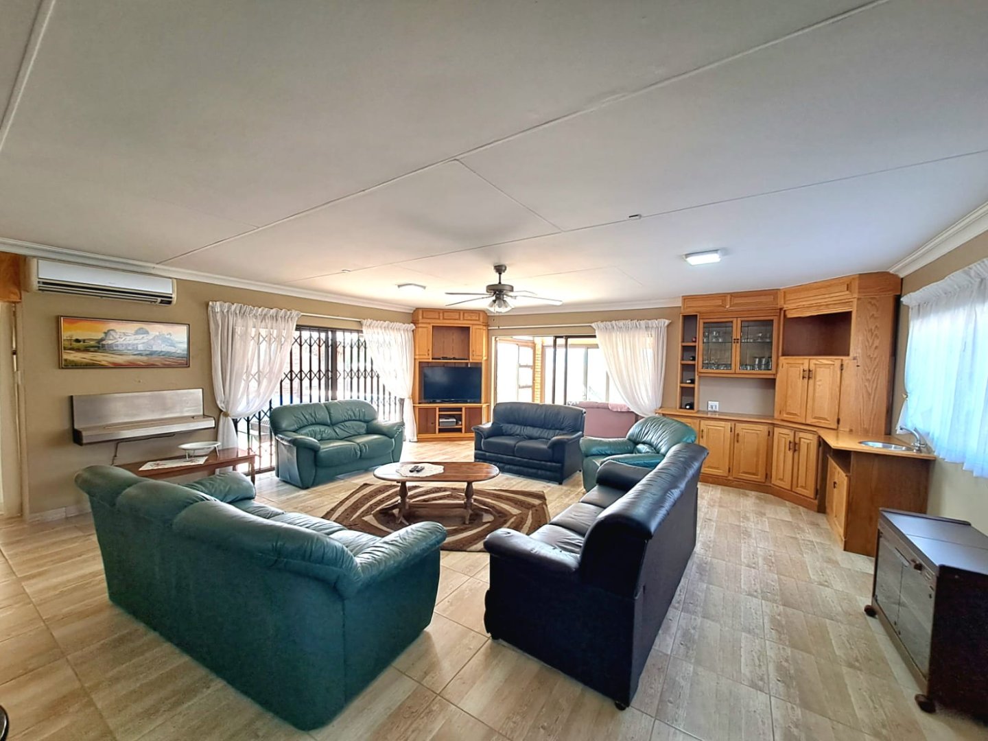 There is a lovely entertainment area with indoor braai, overlooking the river, and opening up to the sparkling blue pool.