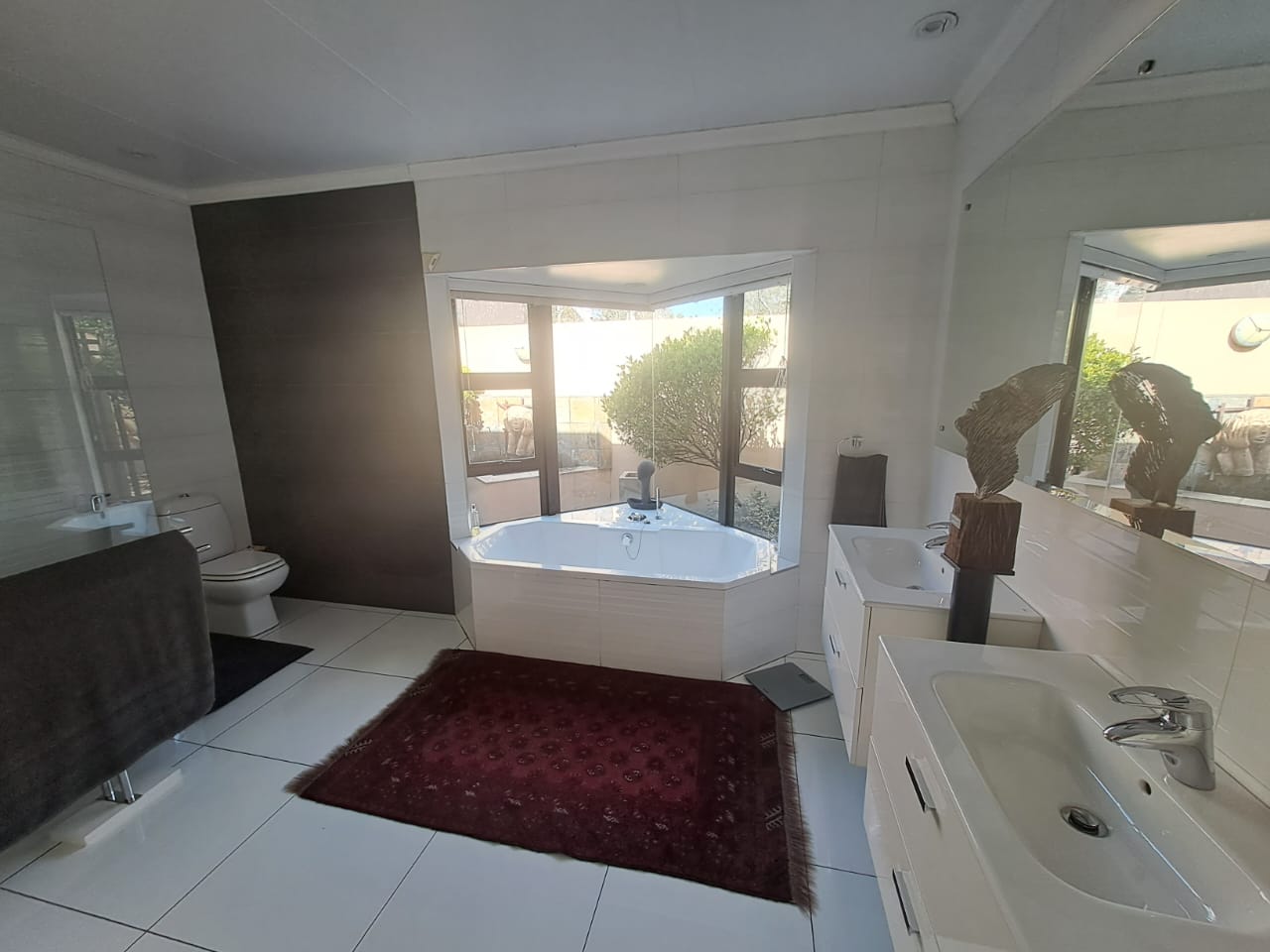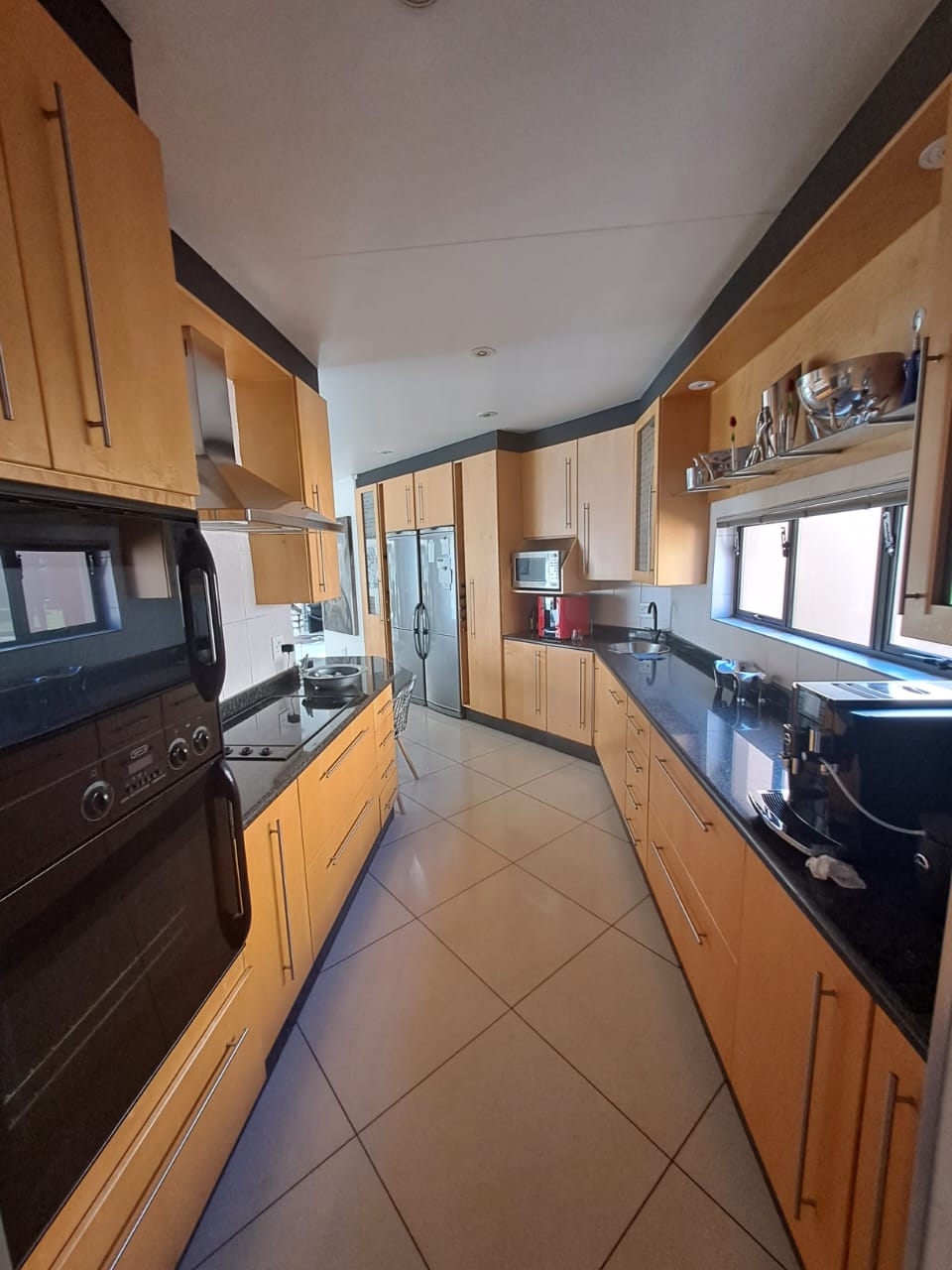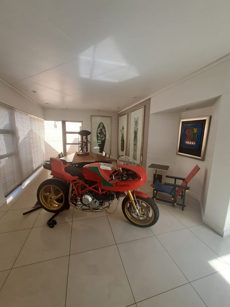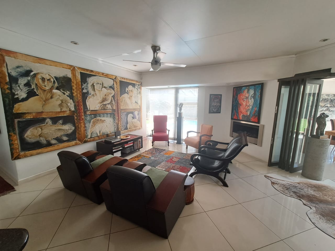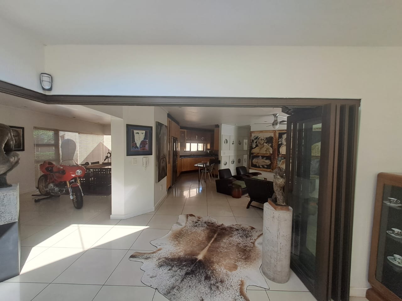 You are immediately welcomed by the modern and spacious open plan lounge / dining room area that has an indoor braai as well as a sky roof.