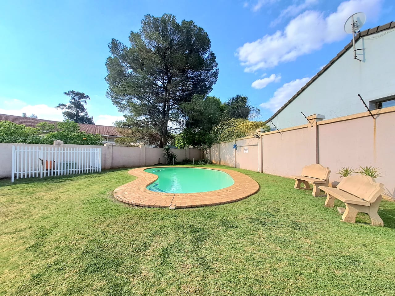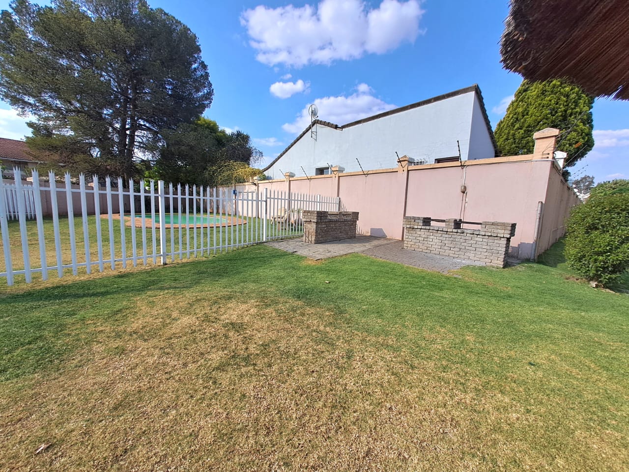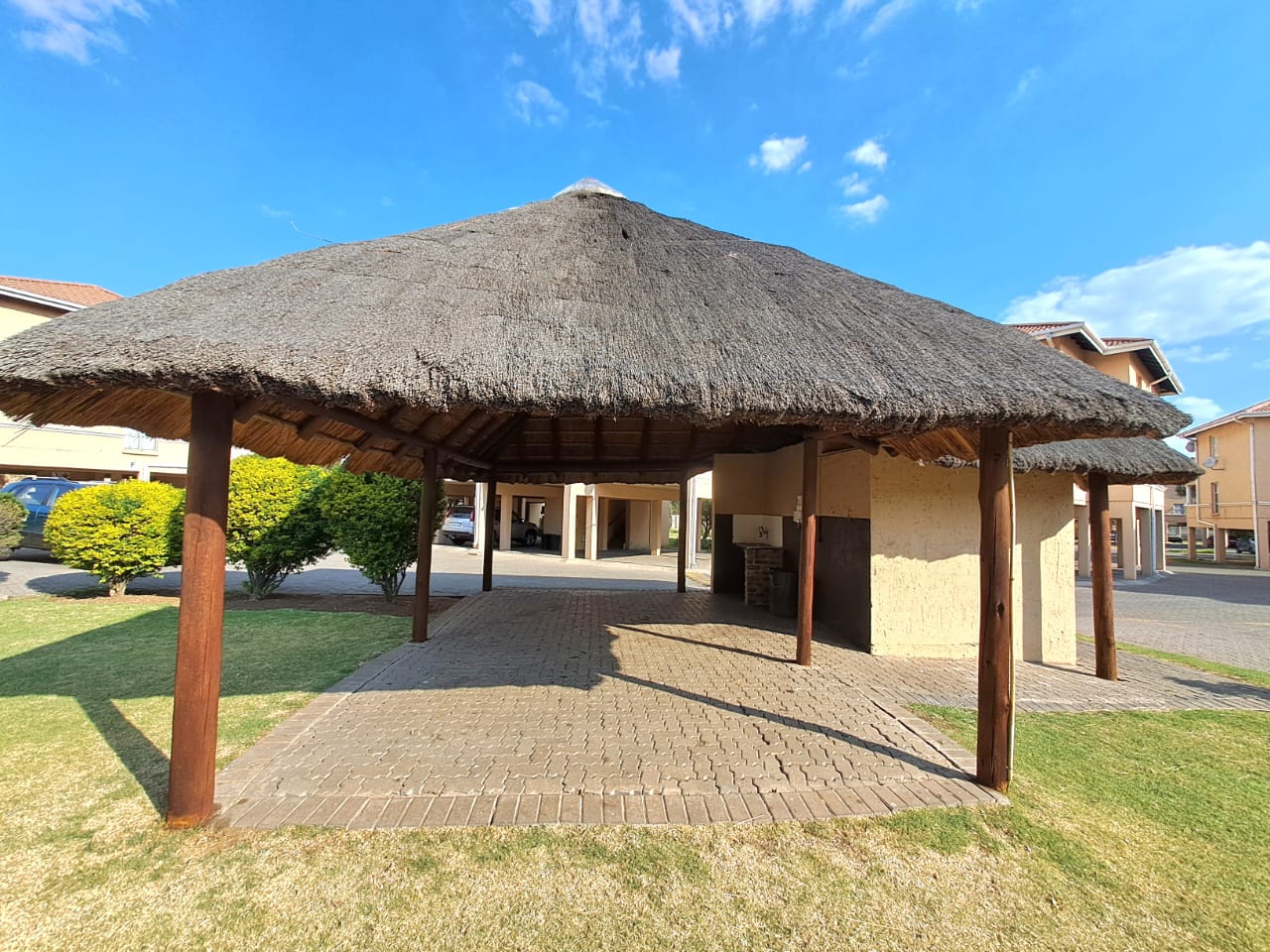 The complex is secure with electric fencing all around. On the premises, you also find a communal swimming pool, a lapa, and an outdoor braai area plus a kids' play area. Single carport and visitors parking.
