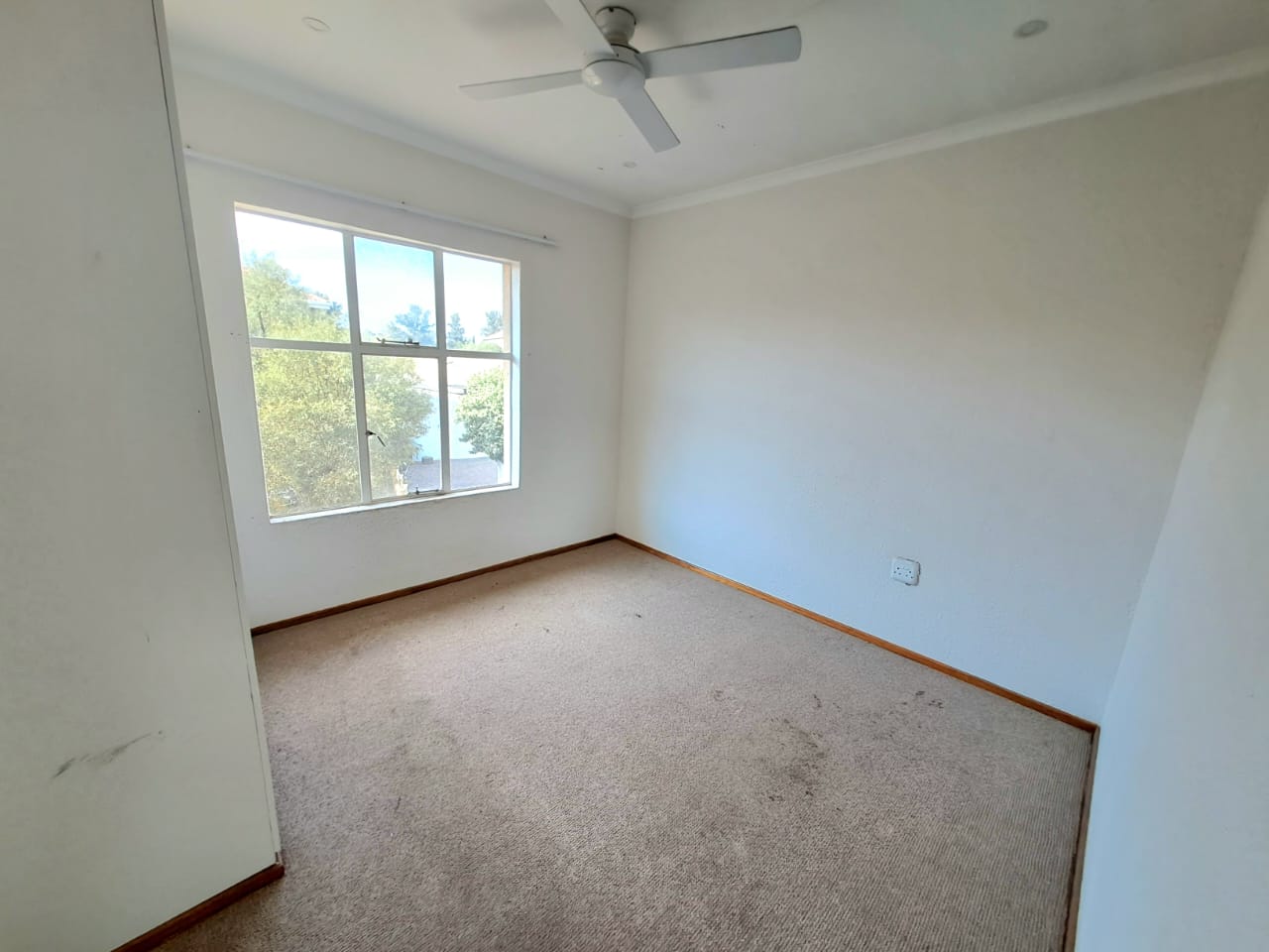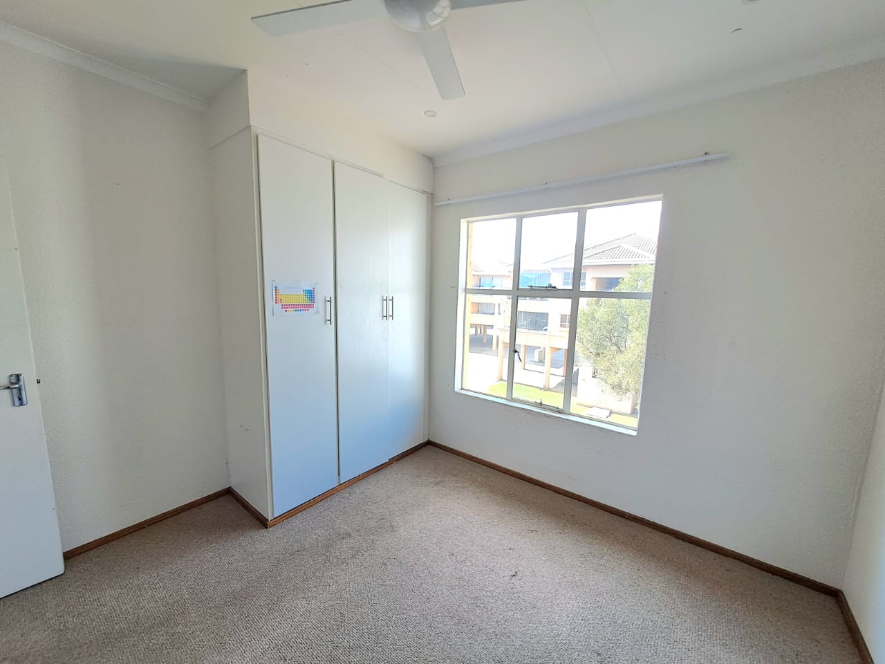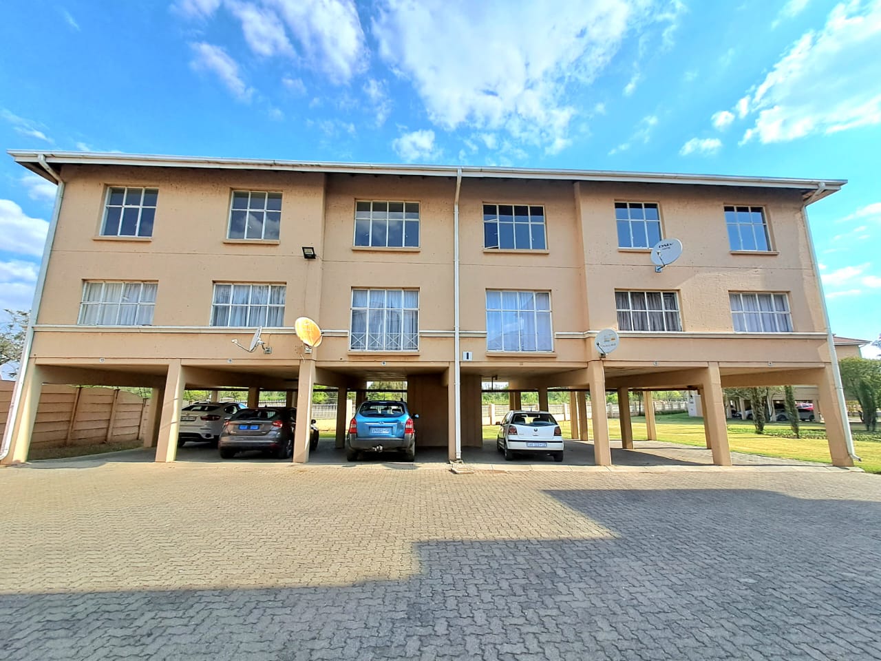 The complex is secure with electric fencing all around. On the premises, you also find a communal swimming pool, a lapa, and an outdoor braai area plus a kids' play area. Single carport and visitors parking.