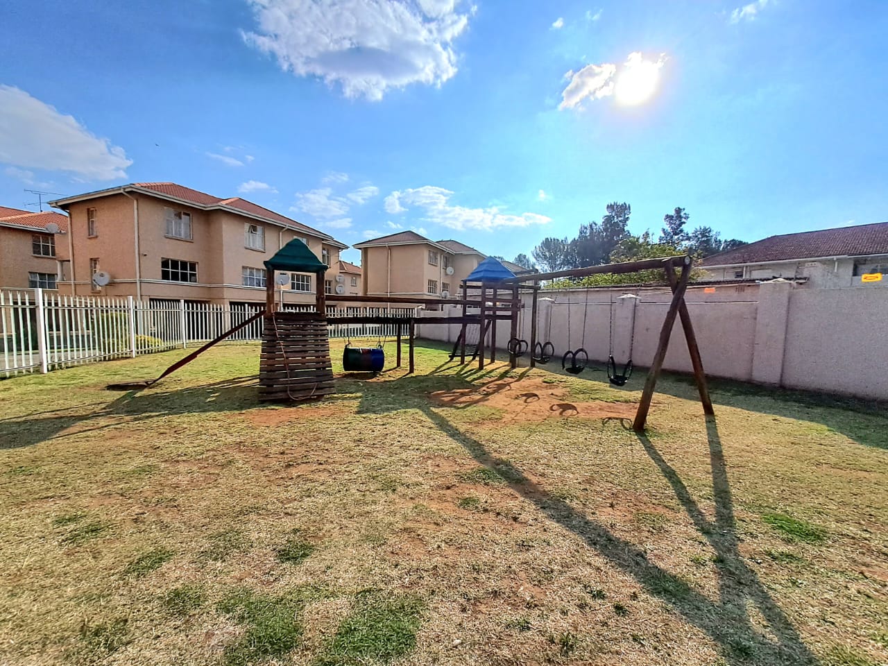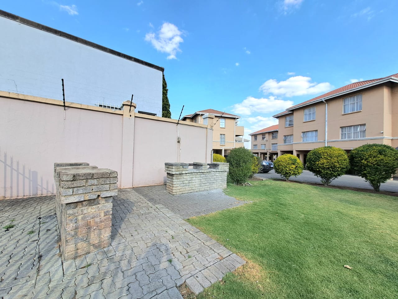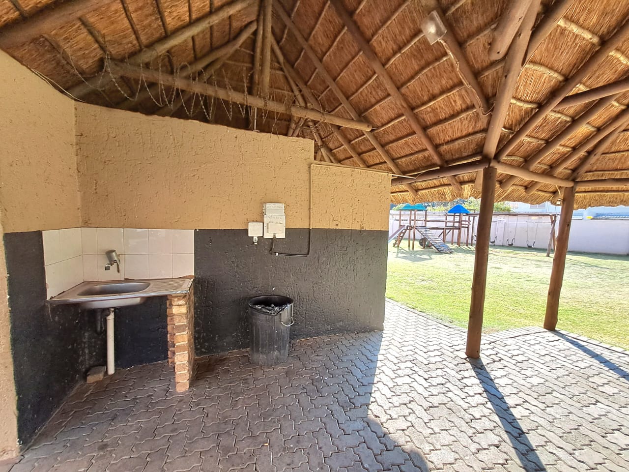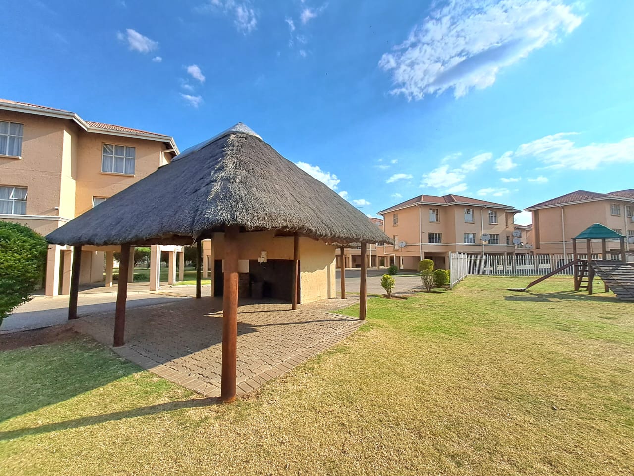 The complex is secure with electric fencing all around. On the premises, you also find a communal swimming pool, a lapa, and an outdoor braai area plus a kids' play area. Single carport and visitors parking.