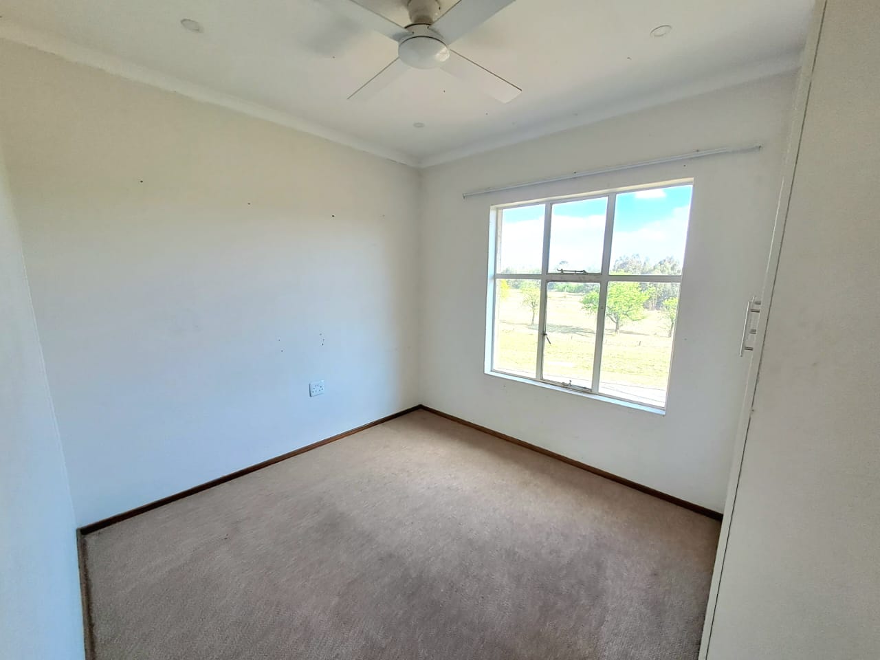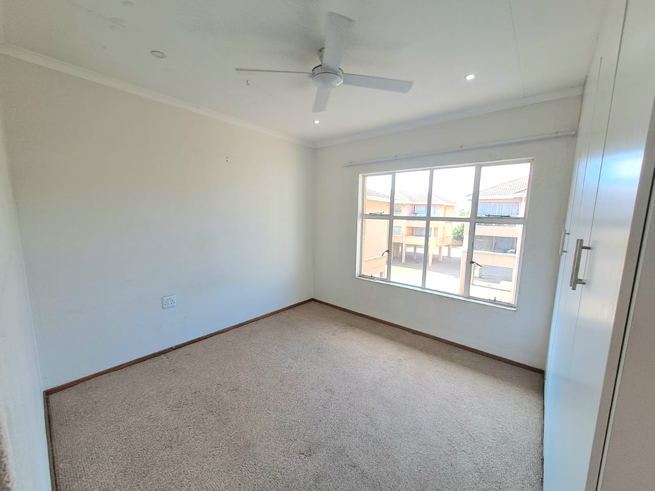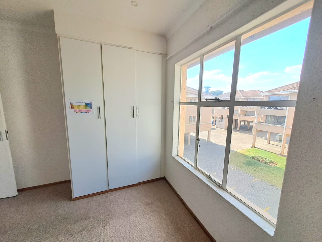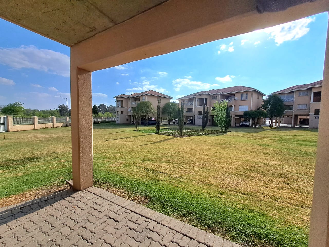 The complex is secure with electric fencing all around. On the premises, you also find a communal swimming pool, a lapa, and an outdoor braai area plus a kids' play area. Single carport and visitors parking.