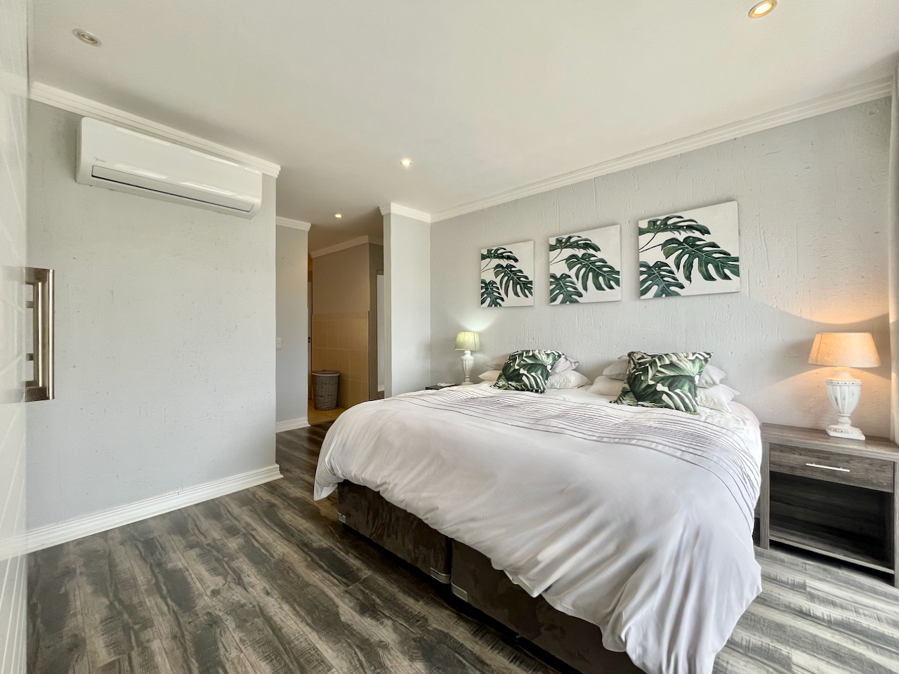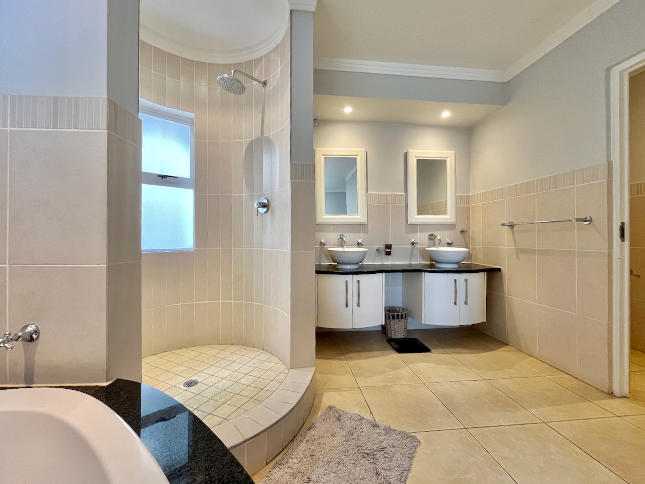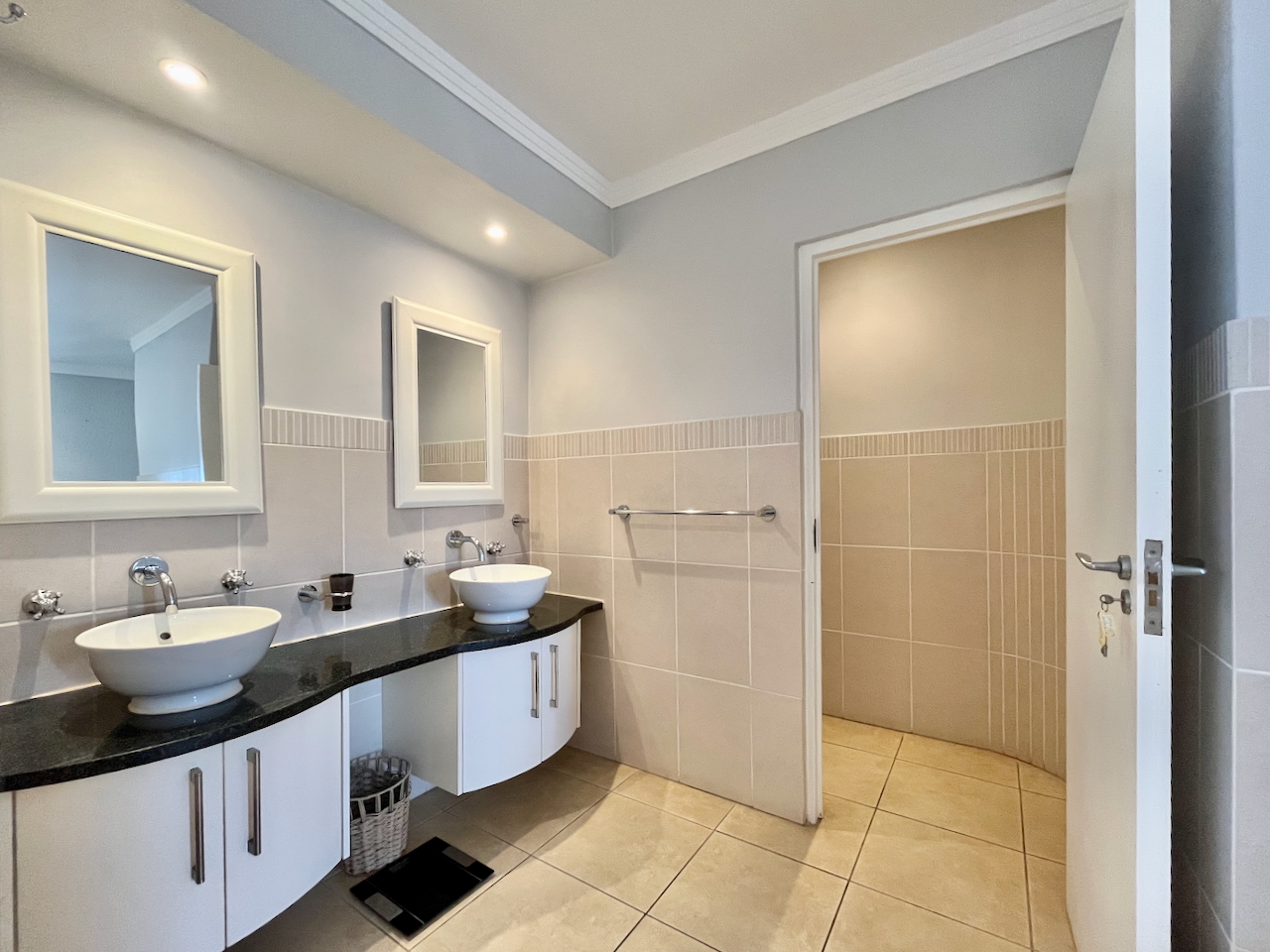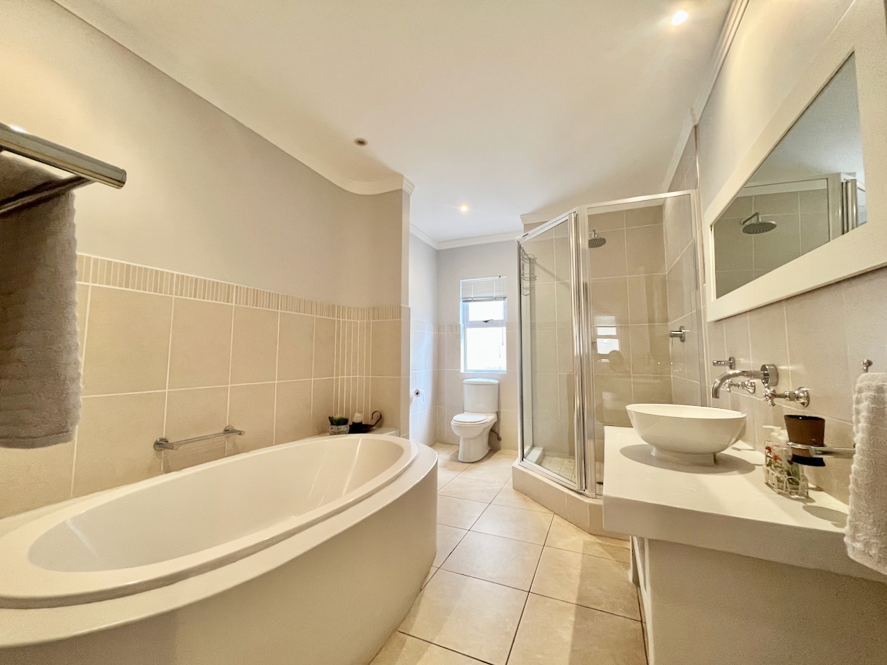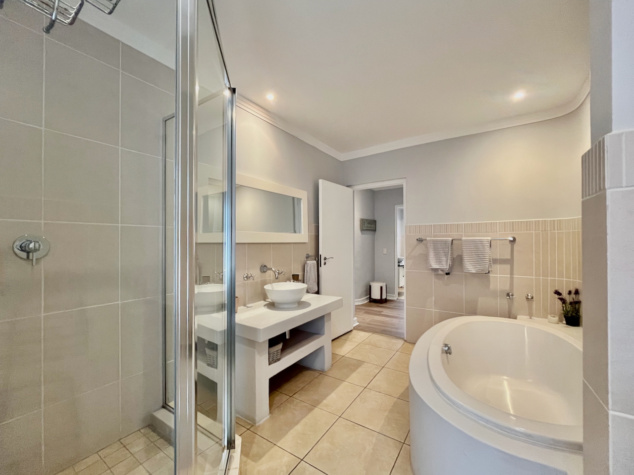 All three bedrooms are generously proportioned and air-conditioned, designed with comfort in mind. The master suite offers a luxurious private retreat with a full en suite bathroom, including a walk-in shower, soaking tub and double vanities. The remaining two bedrooms are served by a stylish shared bathroom.