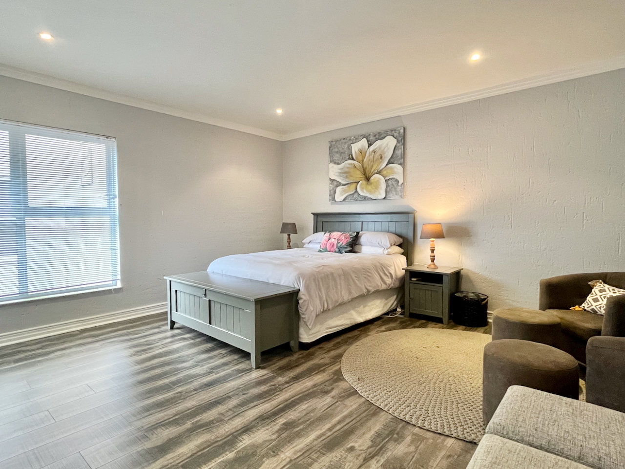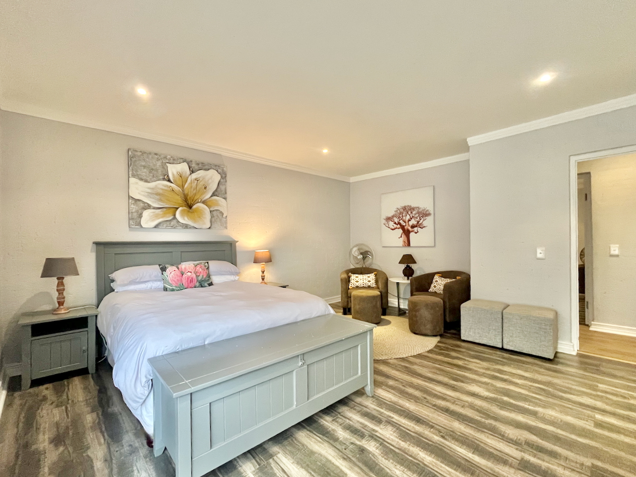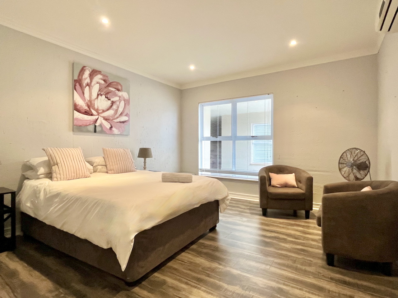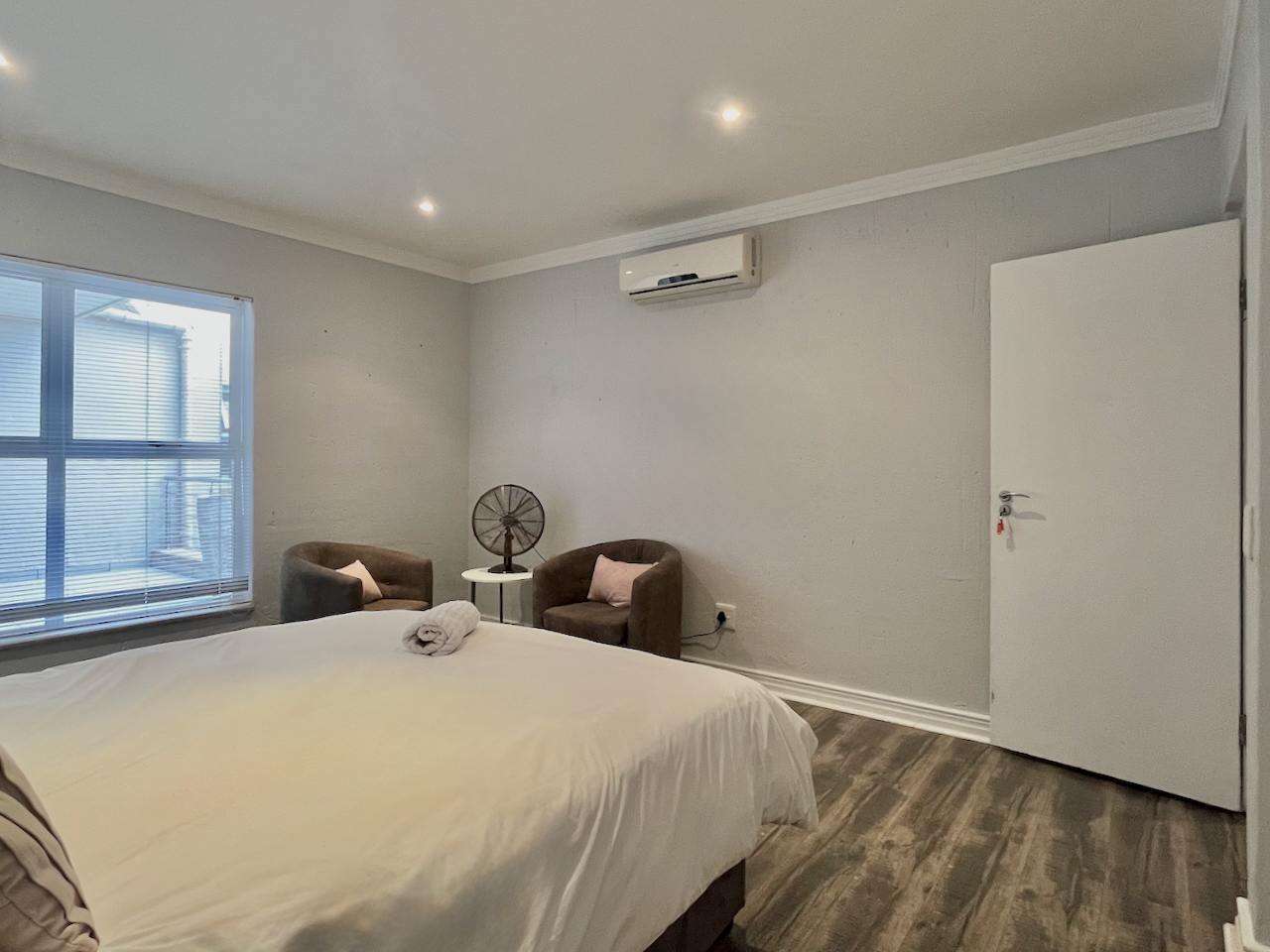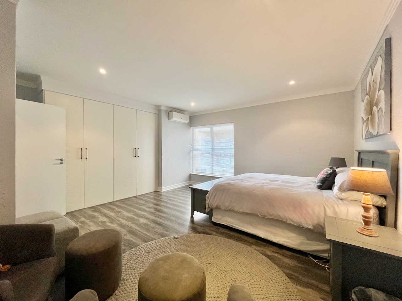 All three bedrooms are generously proportioned and air-conditioned, designed with comfort in mind. The master suite offers a luxurious private retreat with a full en suite bathroom, including a walk-in shower, soaking tub and double vanities. The remaining two bedrooms are served by a stylish shared bathroom.