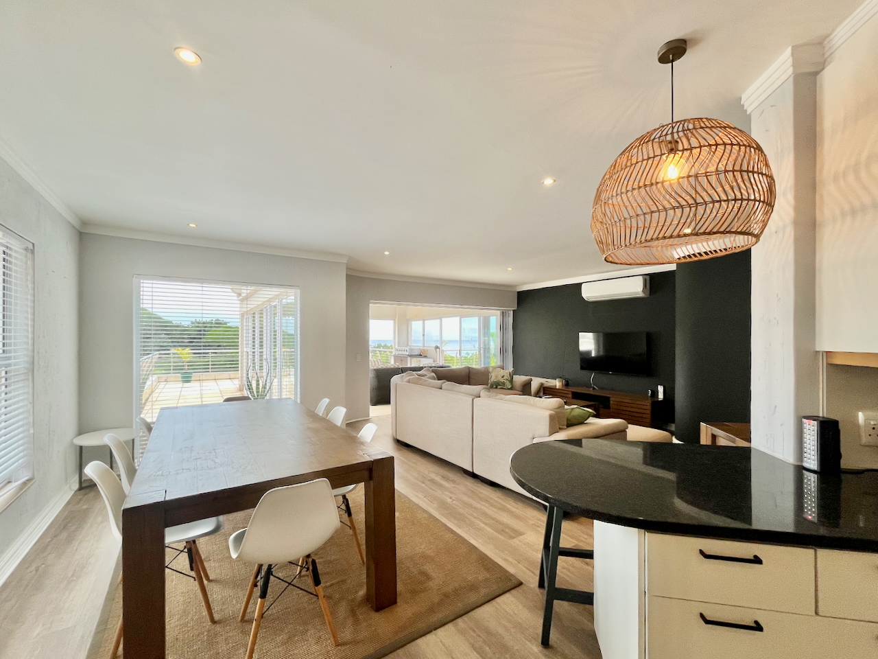 Positioned in the secure and sought-after Simbithi Eco Estate, this fully furnished three-bedroom apartment presents a refined blend of comfort, style and convenience. Recently upgraded with contemporary finishes, the open-plan design seamlessly integrates the sleek kitchen with the spacious lounge and dining area, creating a harmonious flow for both everyday living and entertaining.