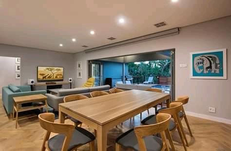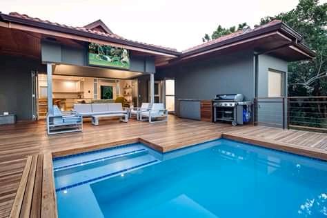 This beautifully designed 4-bedroom, 4-bathroom home offers the perfect blend of privacy, comfort, and relaxed sophistication – all on one level. The open-plan living area flows seamlessly onto an inviting outdoor entertainment space, complete with a heated pool, built-in braai, bar fridge, and outdoor TV – ideal for year-round enjoyment.