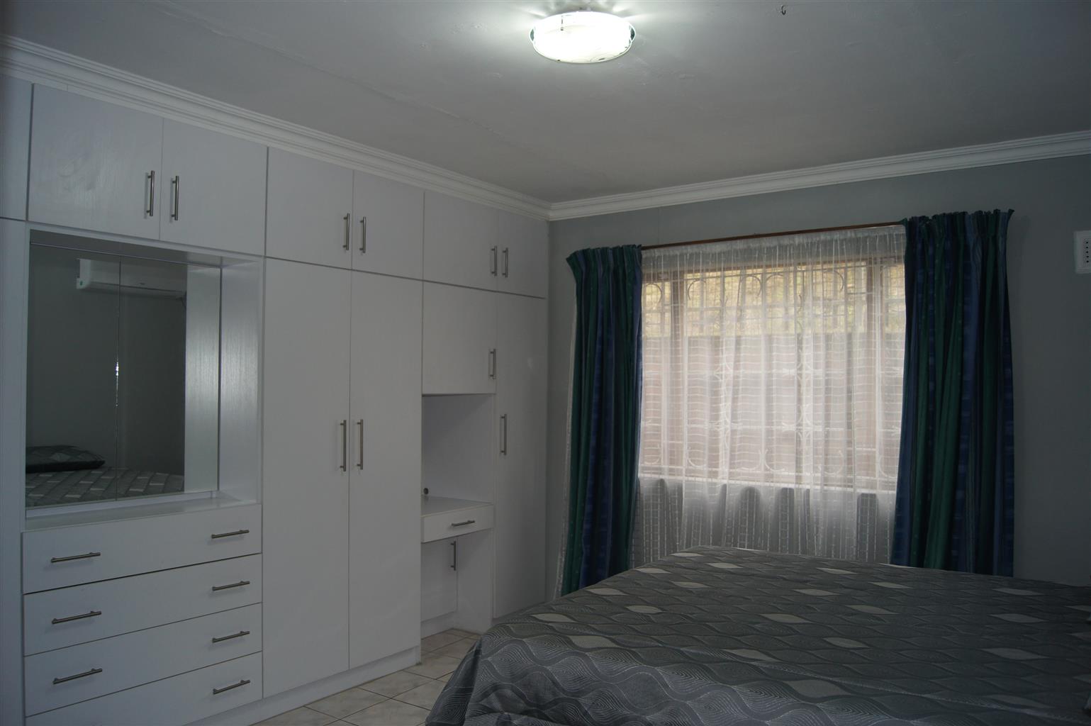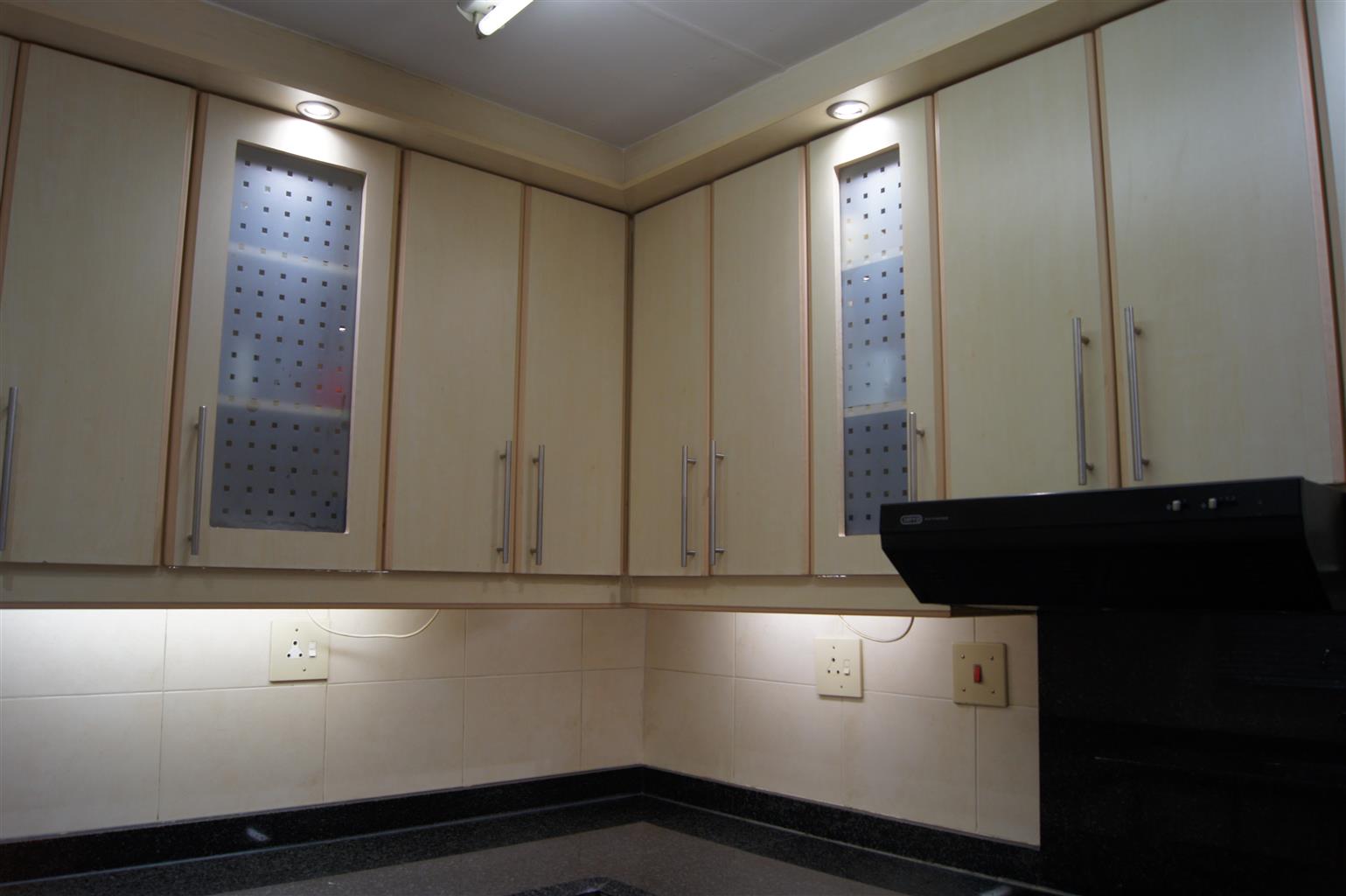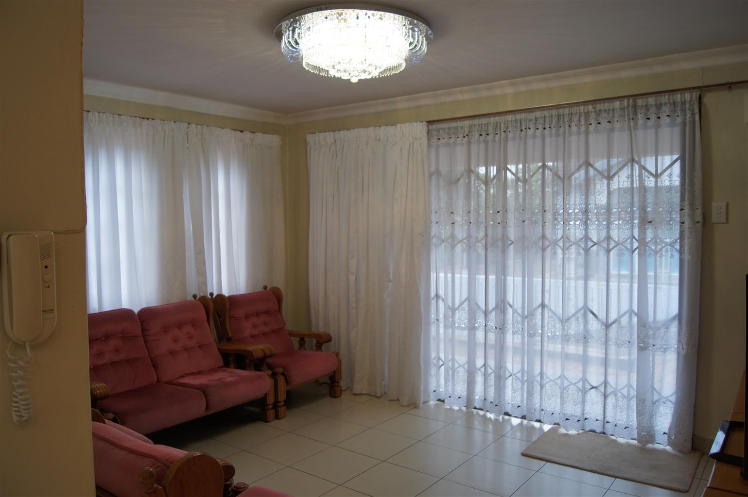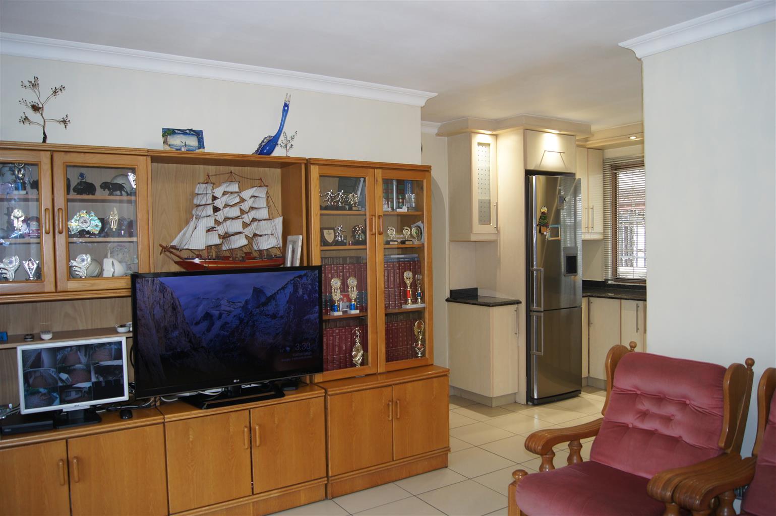 The fully tiled interior ensures easy maintenance and a sleek finish throughout. All bedrooms come with built-in cupboards, providing ample storage space. The heart of the home is the well-appointed kitchen, featuring a fitted stove and seamless flow to the open-plan living areas.