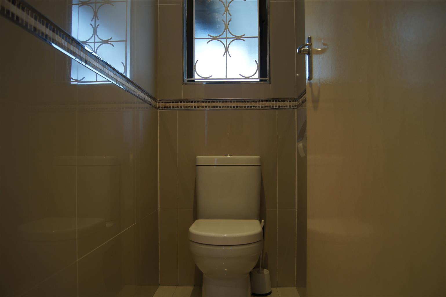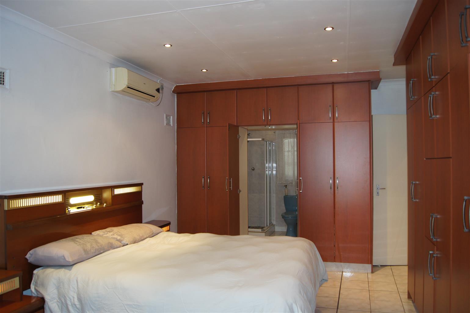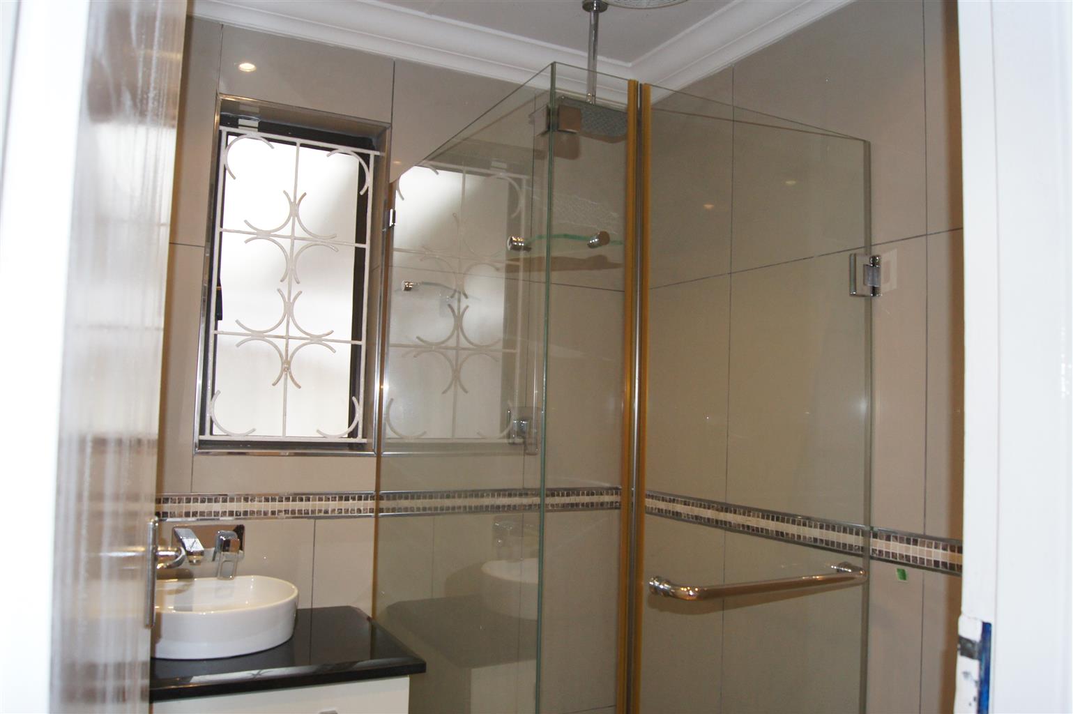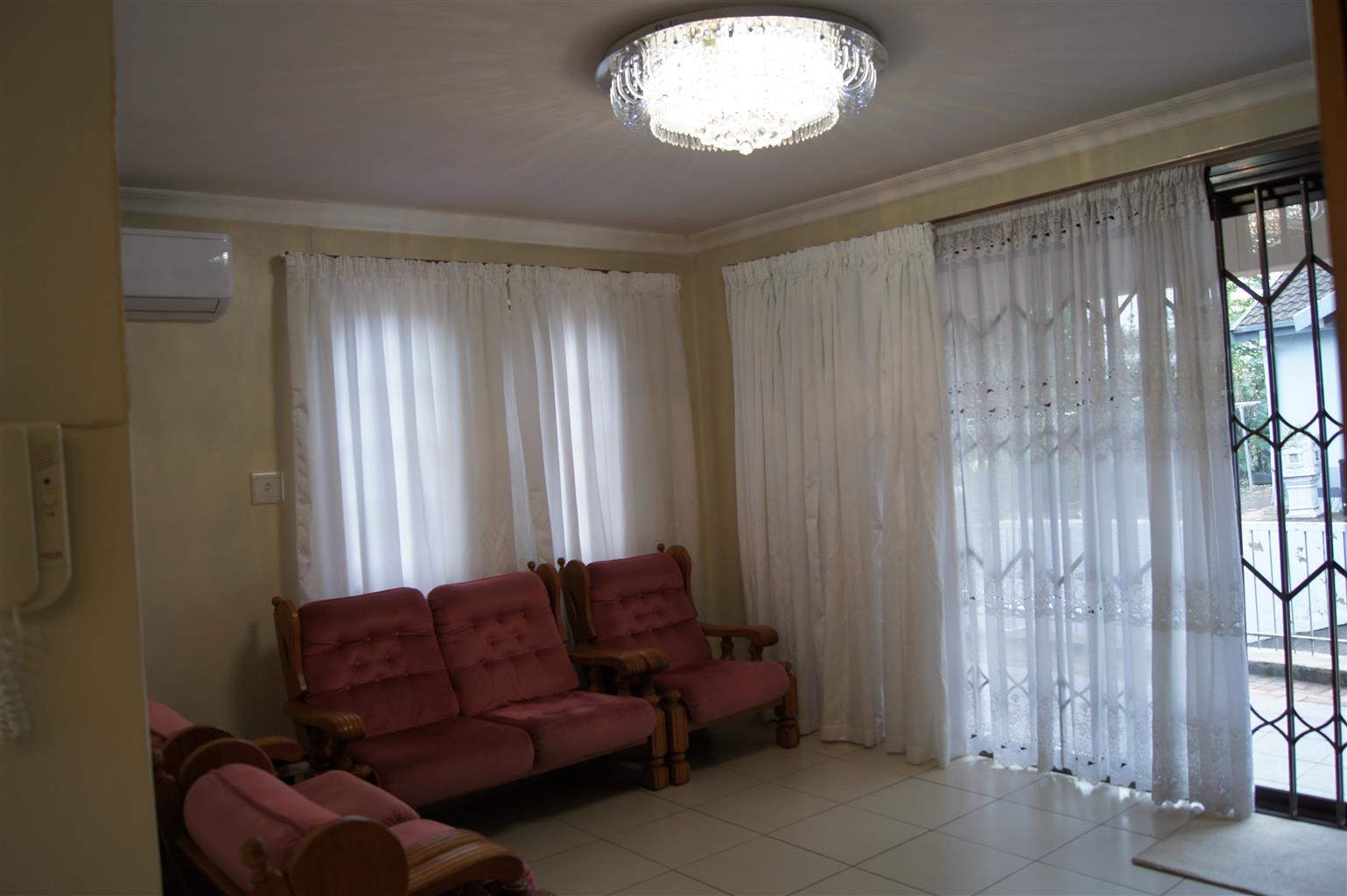 The fully tiled interior ensures easy maintenance and a sleek finish throughout. All bedrooms come with built-in cupboards, providing ample storage space. The heart of the home is the well-appointed kitchen, featuring a fitted stove and seamless flow to the open-plan living areas.