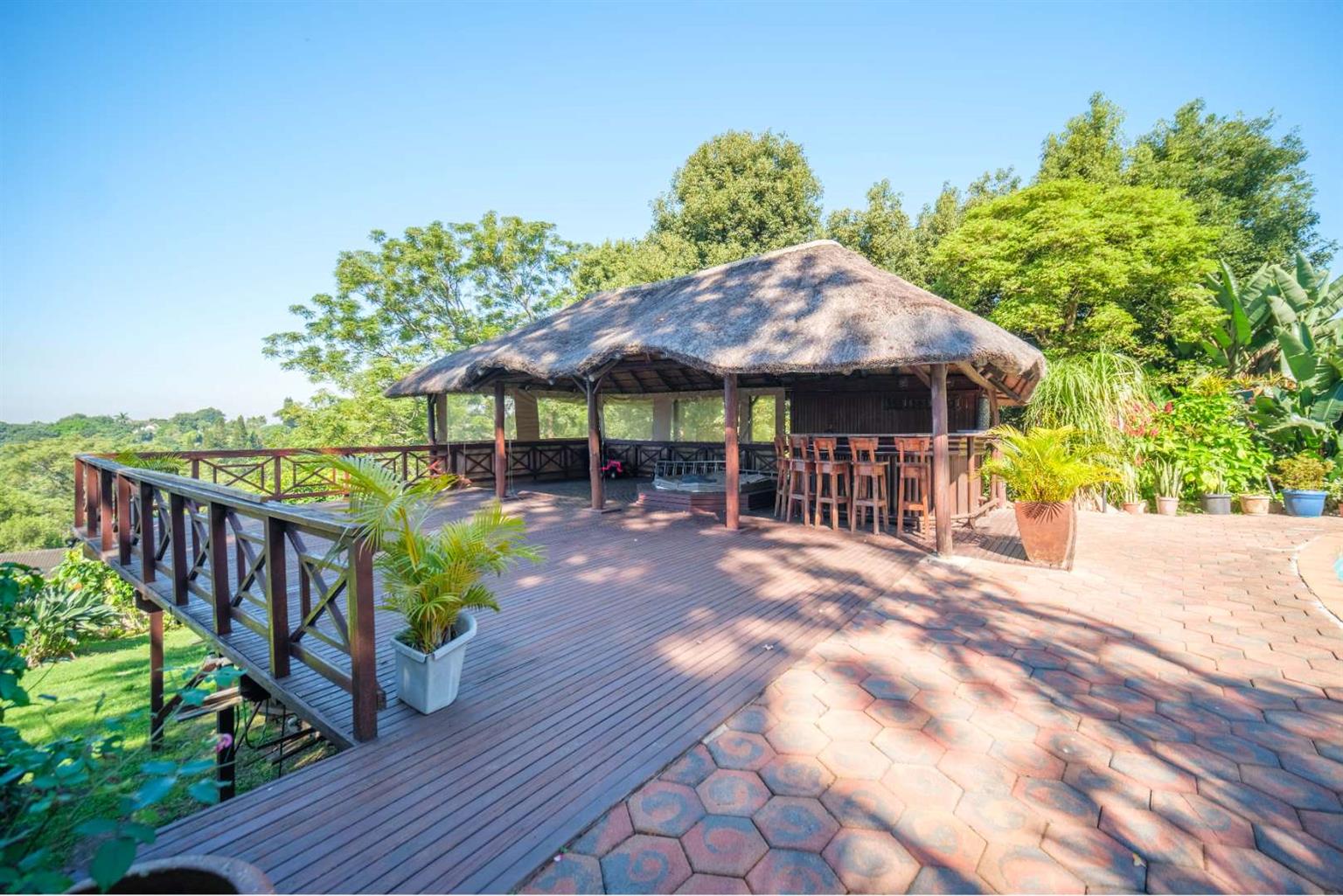 Step out of the kitchen or dining room into the closed off, built in braai area, pass the potential glass green house that leads directly to the sparkling pool with breathtaking view and onto the 100sqm wooden sundeck. Here you will find the outdoor bar and jacuzzi under the sports Lapa. Fruit Trees in bloom and a separate storage room underneath the deck.