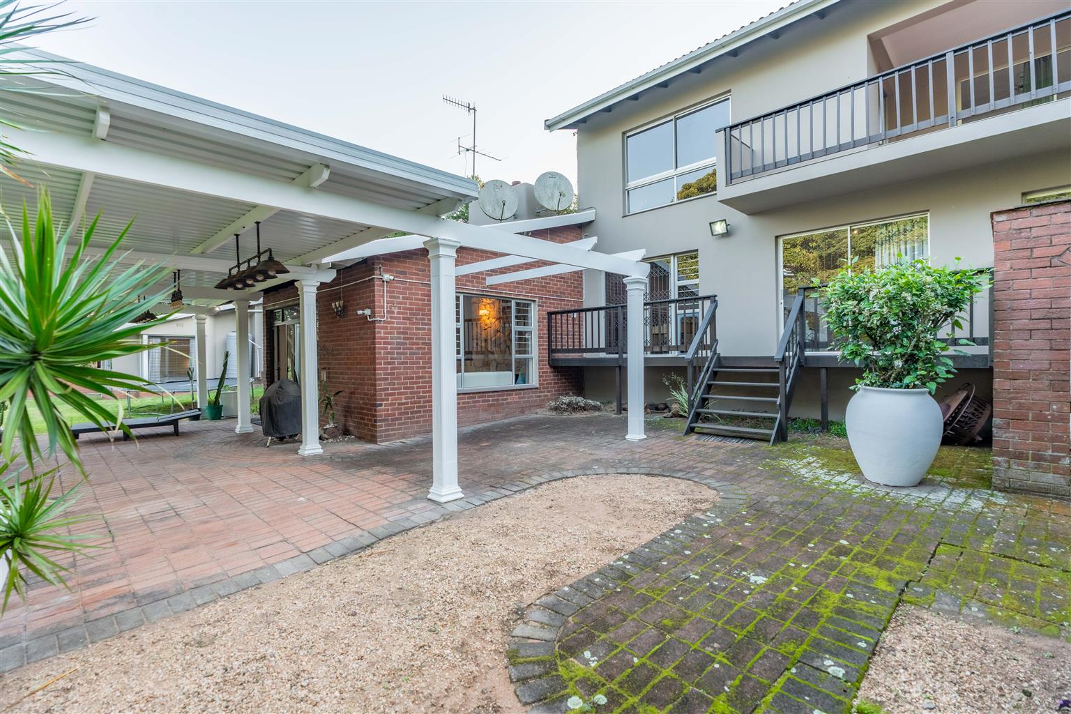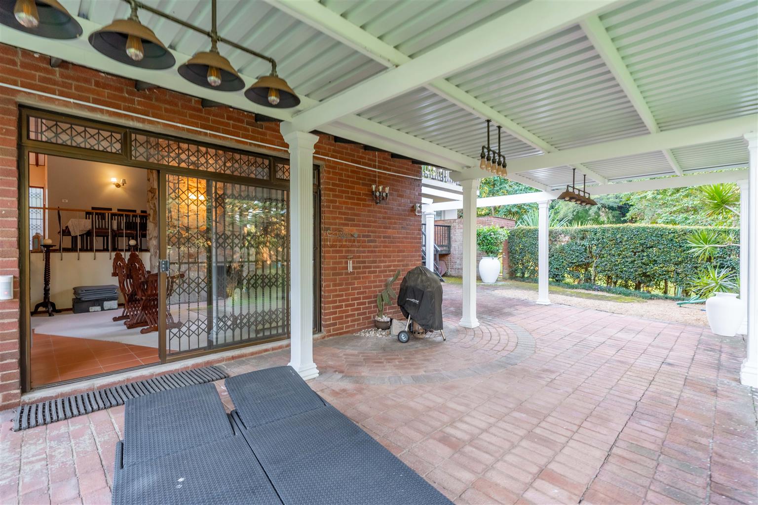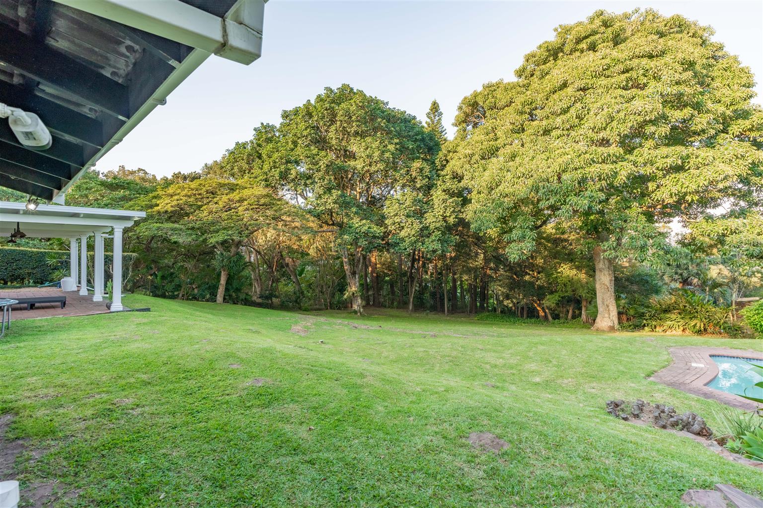 The 3529sqm garden is a parklike paradise, offering endless opportunities for relaxation or future development, the choice is yours—create a private oasis, add recreational amenities, or explore further development potential. A courtyard off the main house includes a storeroom and outside ablutions, adding convenience for outdoor living.