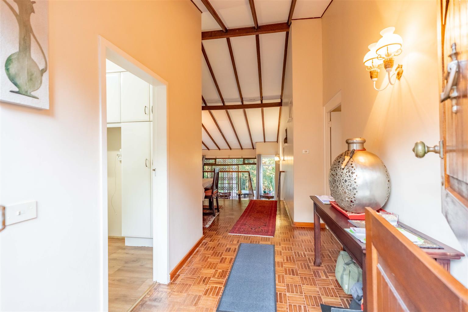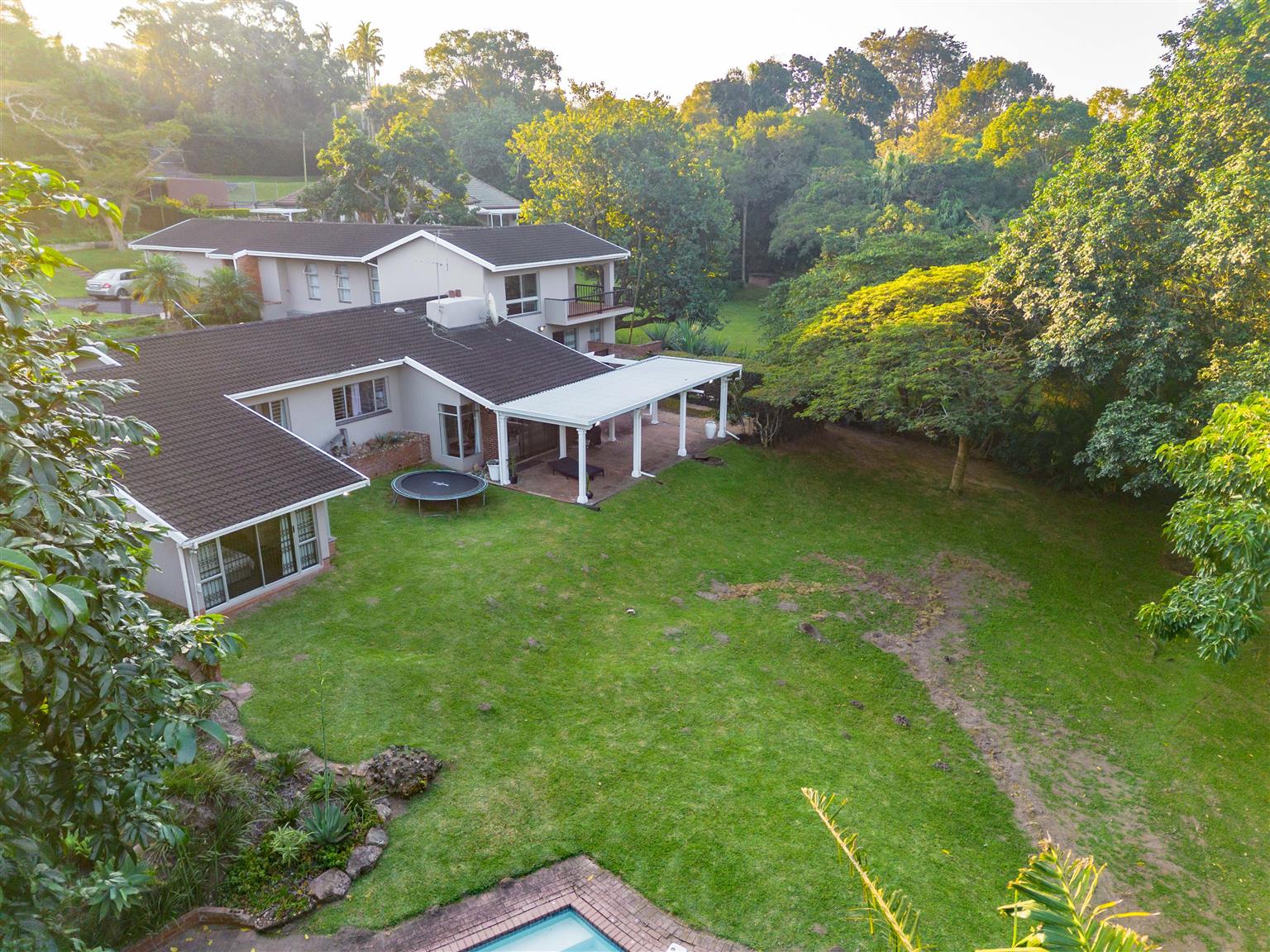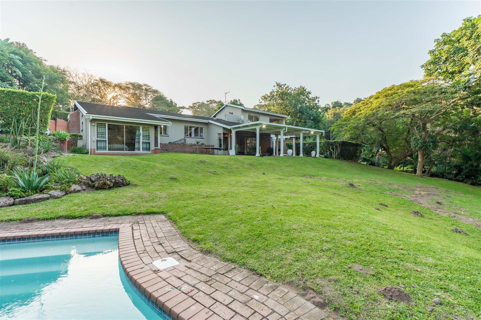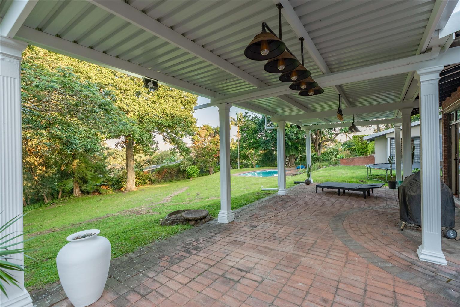 The 3529sqm garden is a parklike paradise, offering endless opportunities for relaxation or future development, the choice is yours—create a private oasis, add recreational amenities, or explore further development potential. A courtyard off the main house includes a storeroom and outside ablutions, adding convenience for outdoor living.