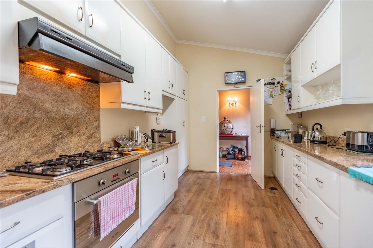 The second dwelling is a game-changer, offering endless possibilities for rental income, extended family living, or a work-from-home sanctuary. With its own driveway and single auto garage, this single-level home is both accessible and private. Inside, you’ll find two large bedrooms with ample built-in cupboards, a full family bathroom with shower and bathtub, and a bright open-plan lounge and dining area that opens to a spacious balcony. The fully fitted kitchen boasts a centre-island, gas hob, oven, and double sink. This self-contained residence ensures complete privacy for the main house, making it ideal for multigenerational families, young professionals, or savvy investors looking to maximize returns.