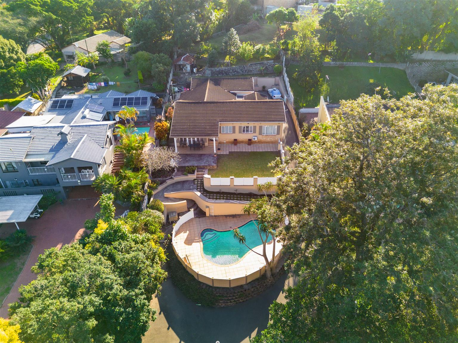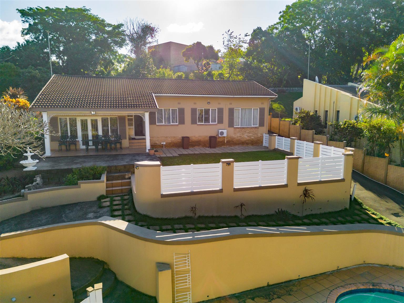 A versatile detached outbuilding offers endless possibilities: use it as a granny flat with a bedroom, open-plan kitchen, and lounge for extended family, or transform it into a home office or studio for remote work or creative hobbies. Outdoors, a fully fenced-off swimming pool ensures safe family fun, while a manicured garden provides a tranquil space for play or relaxation.