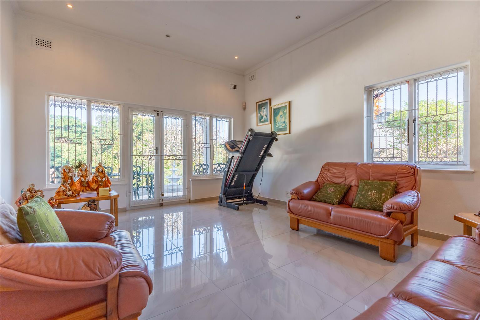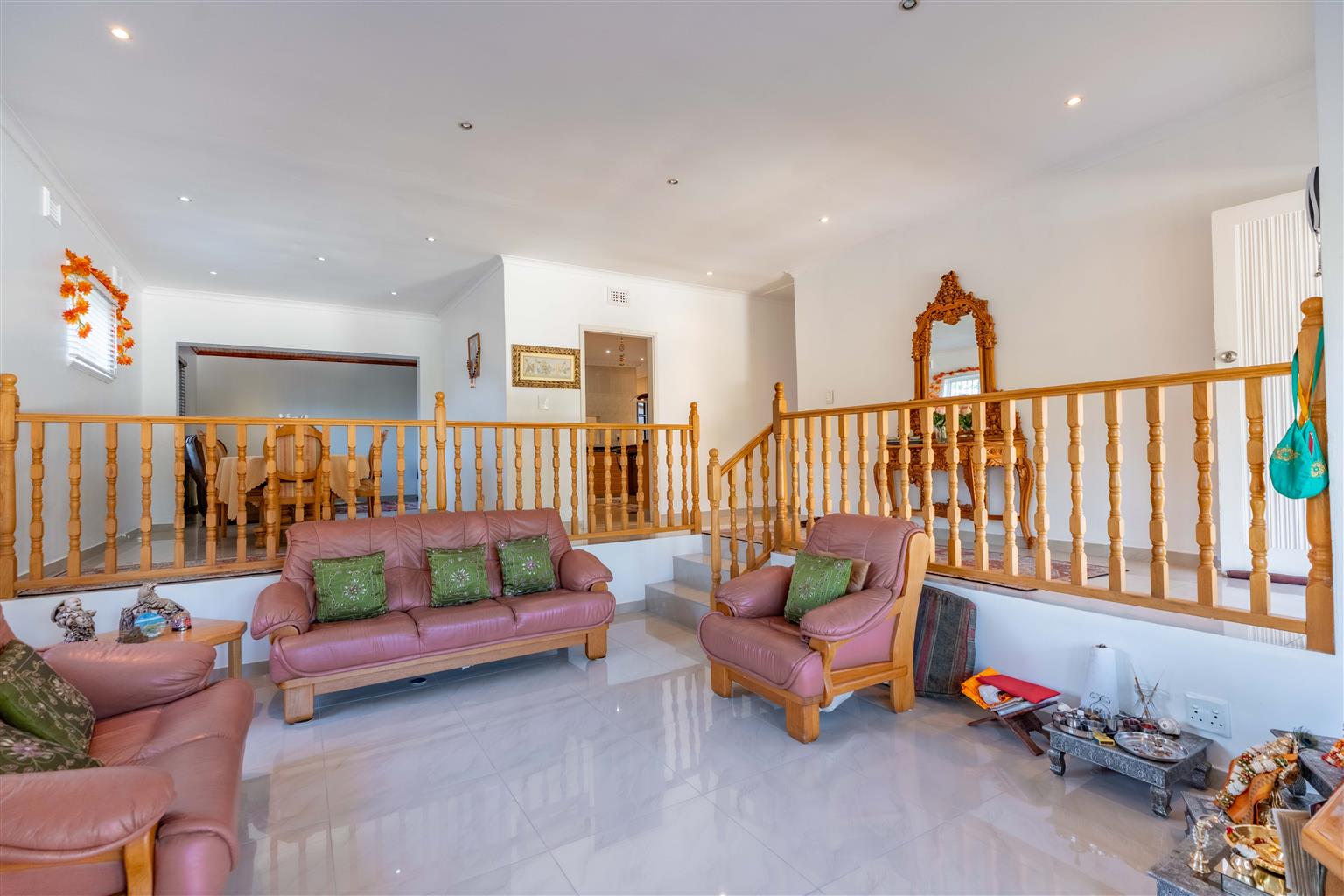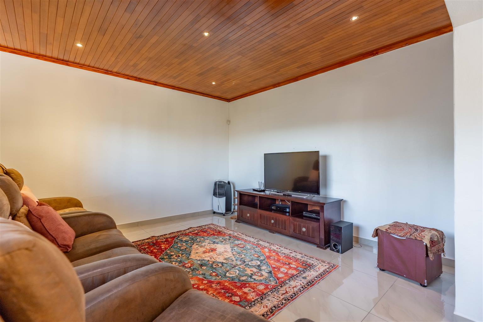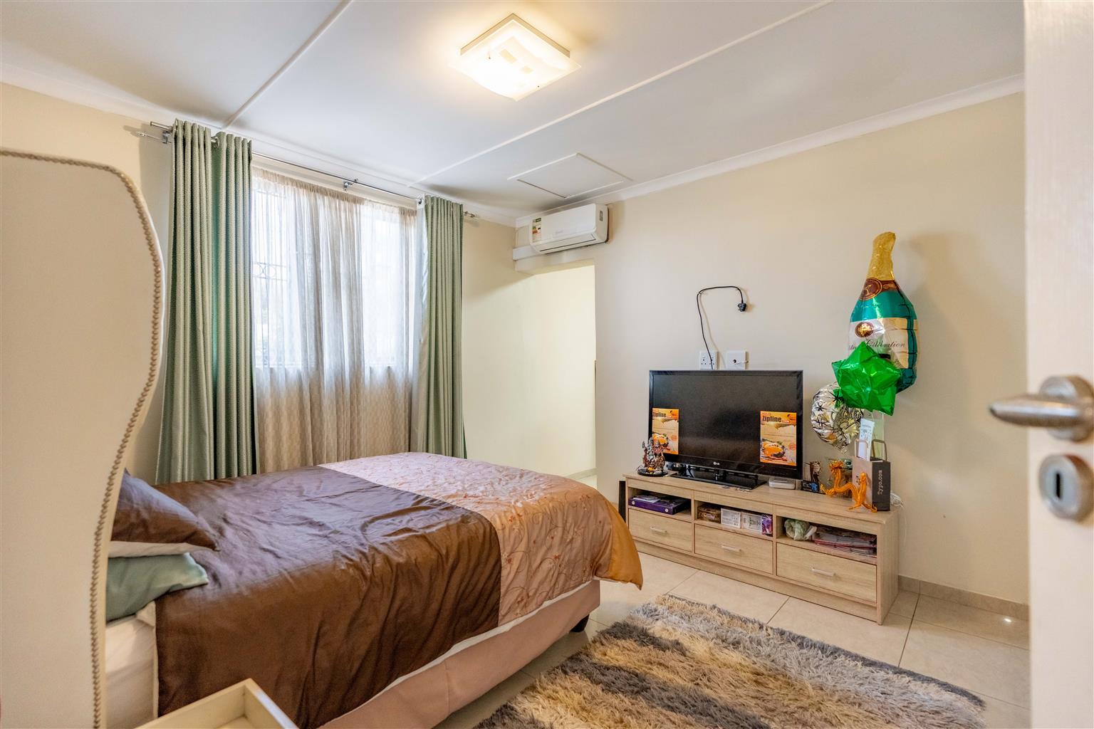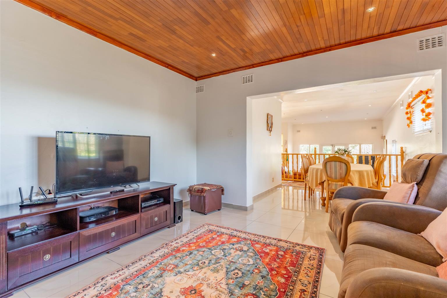 The spacious interior features four generously sized bedrooms, including a luxurious master suite with a dedicated dressing room and en-suite bathroom, two expansive lounges, and a fully tiled dining room—perfect for family gatherings. Three air conditioning units keep everyone comfortable year-round, while two en-suite bathrooms and a family bathroom streamline busy mornings.