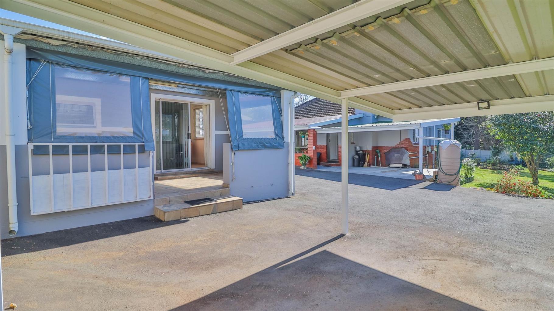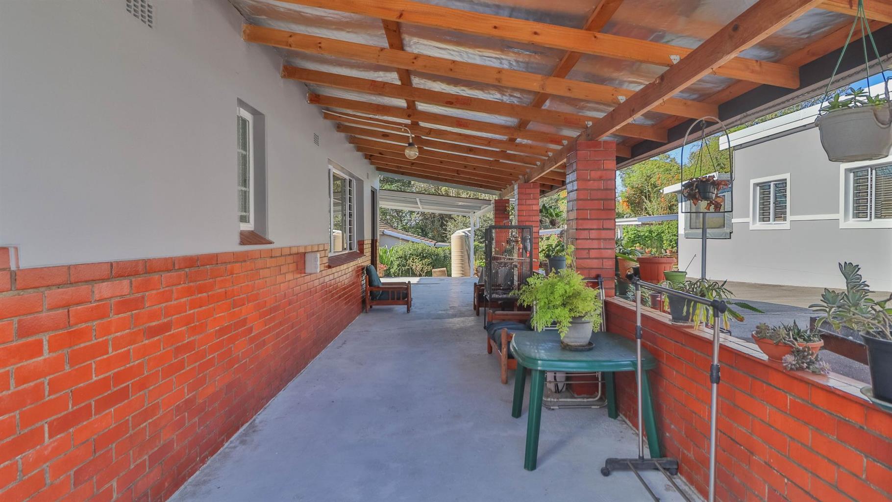 A covered verandah overlooks the level, fully fenced garden – perfect for children and pets. The property also includes a lock-up garage and three carports, providing ample parking space.