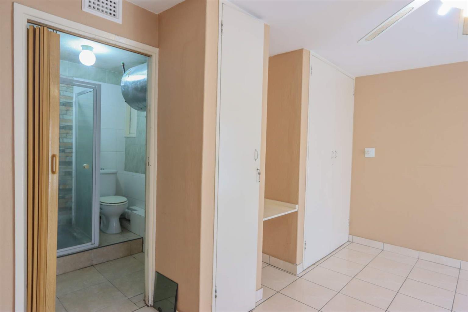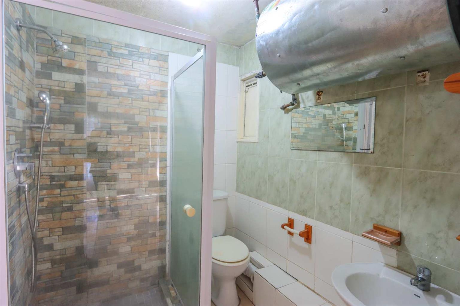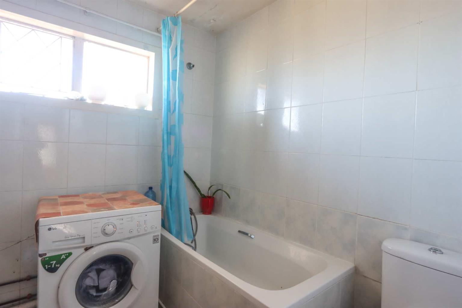 A family bathroom offers a bathtub with overhead shower and a toilet, while a handy storage cupboard in the passage adds extra convenience.