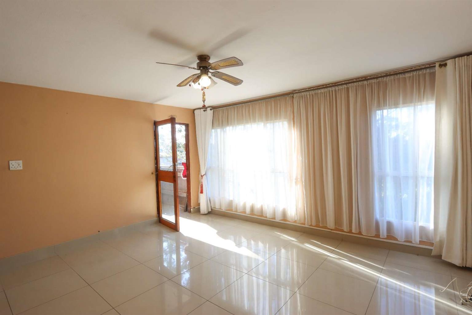 The first bedroom includes built-in cupboards, a ceiling fan, and direct access to the balcony, bringing in fresh air and natural light. The main bedroom is generously sized and boasts tiled floors, built-in cupboards, a ceiling fan, and a private en-suite bathroom with a shower and toilet. The third bedroom also features built-in cupboards and ample space.