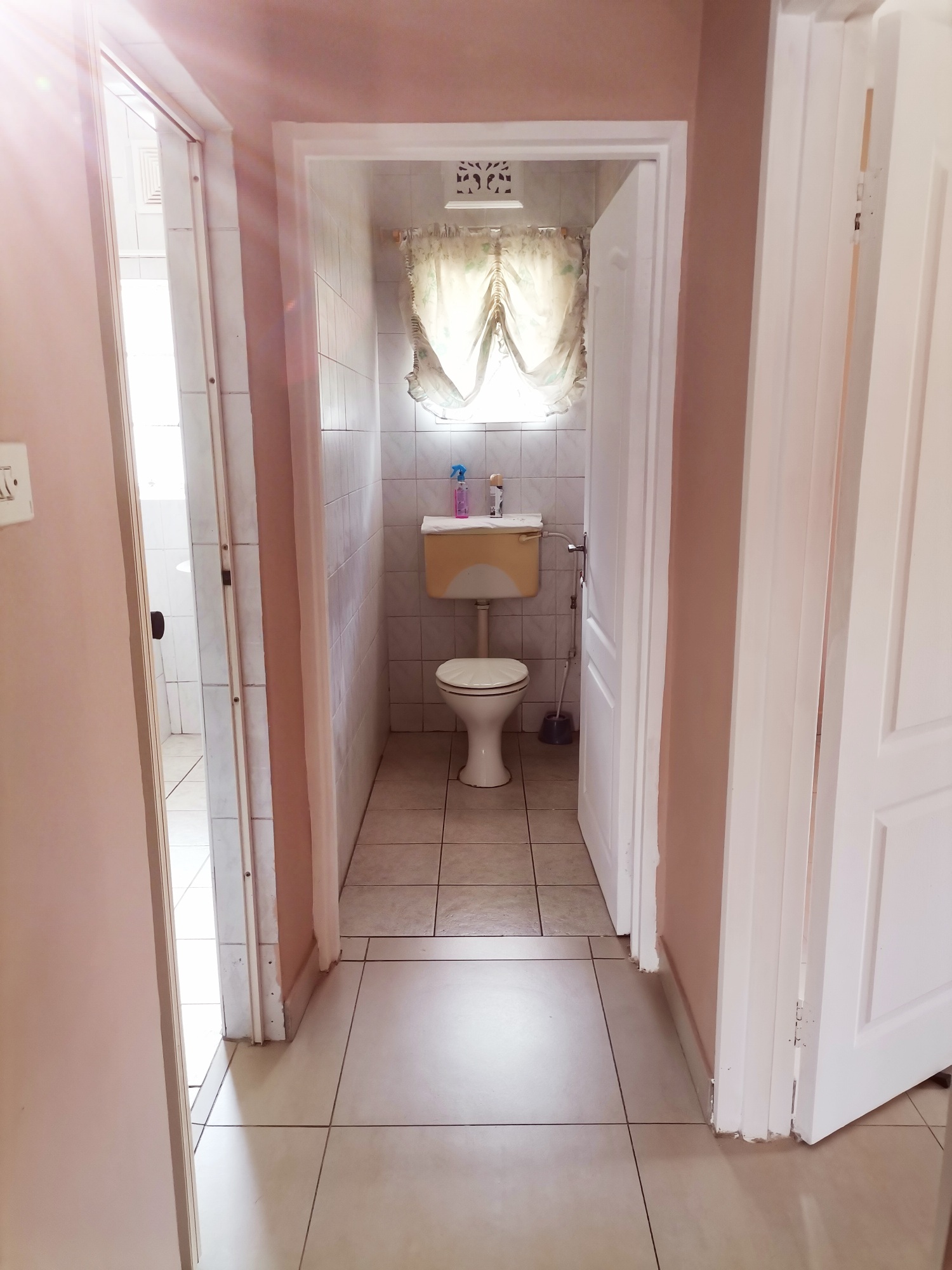 A large level garden which wraps around the house. A single garage, with a fully tarred driveway, domestic quarters and 2 carports.