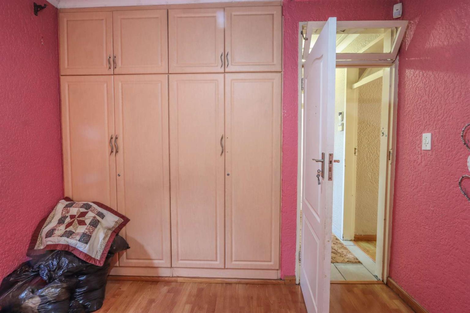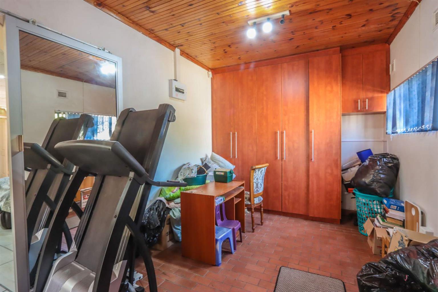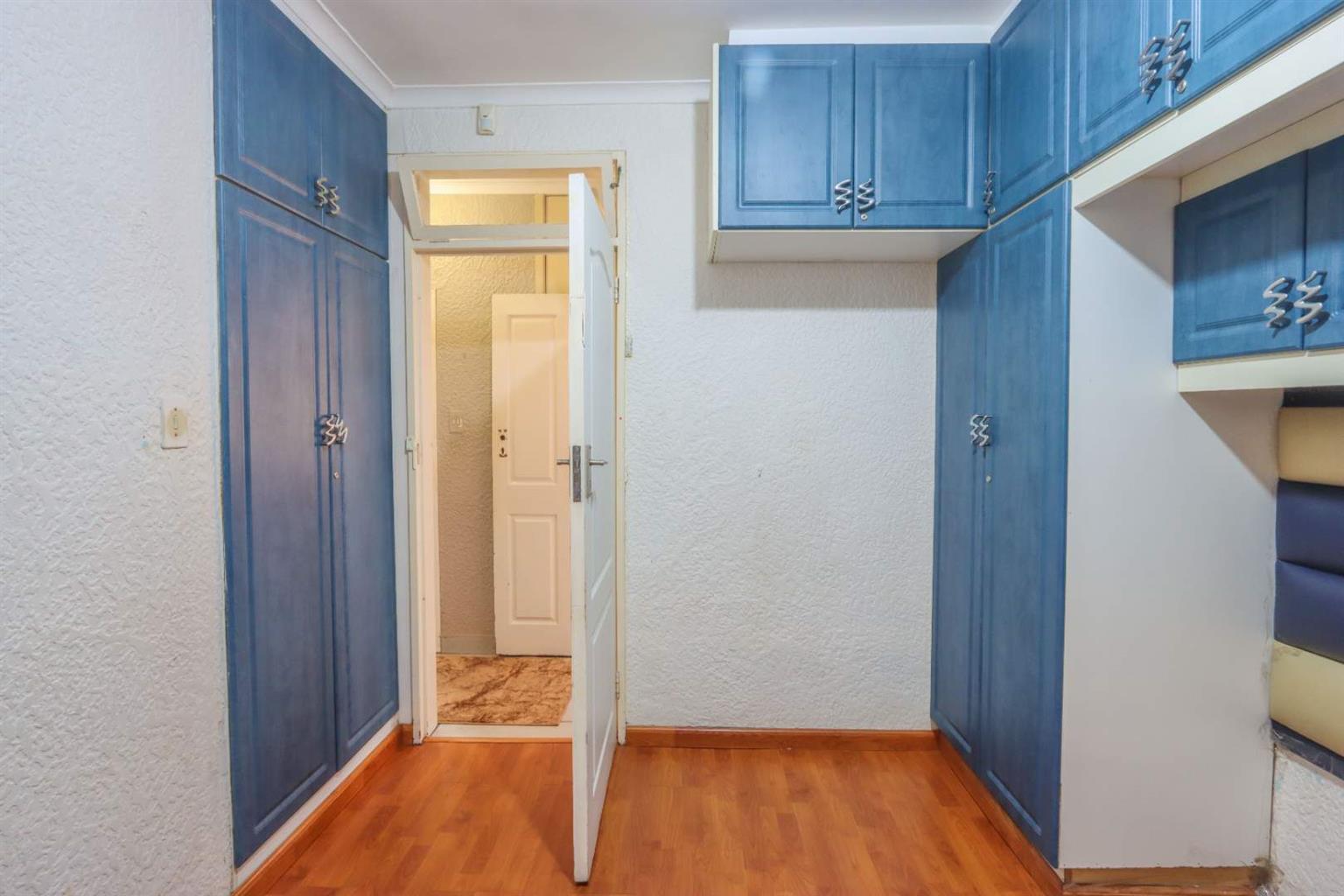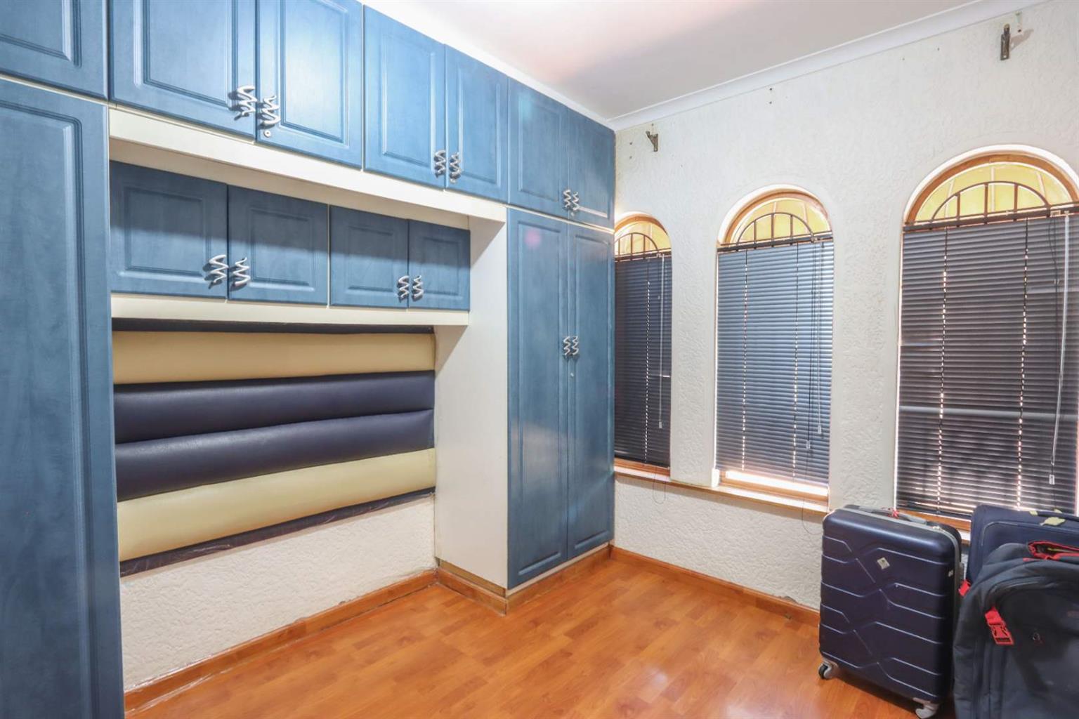 2nd bedroom fitted with built-in cupboards, aircon, and blinds.
