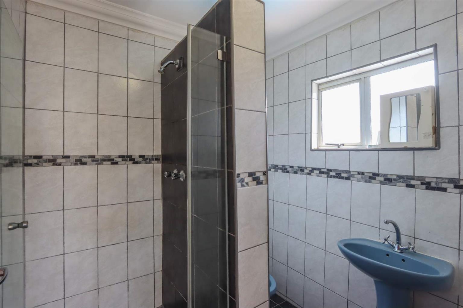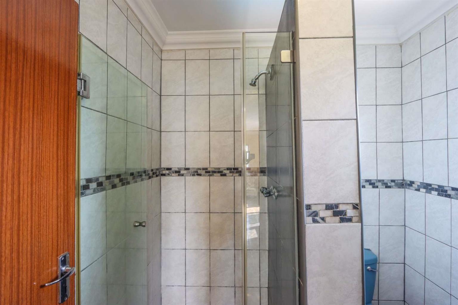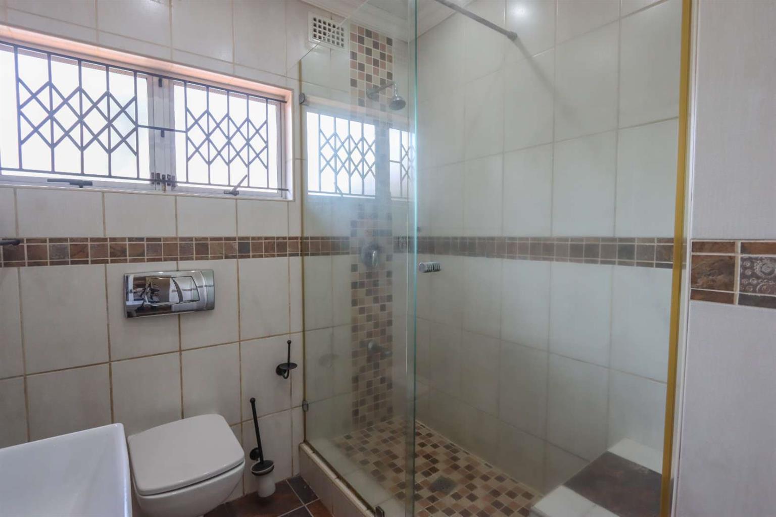 Family bathroom with shower and toilet.