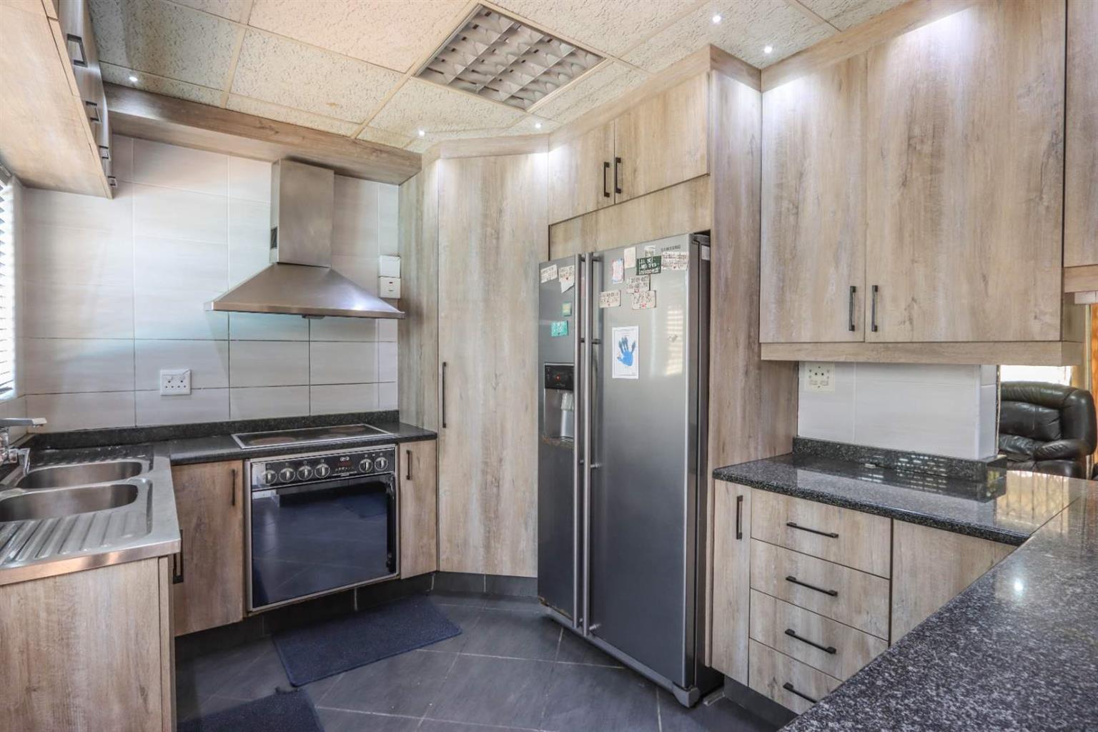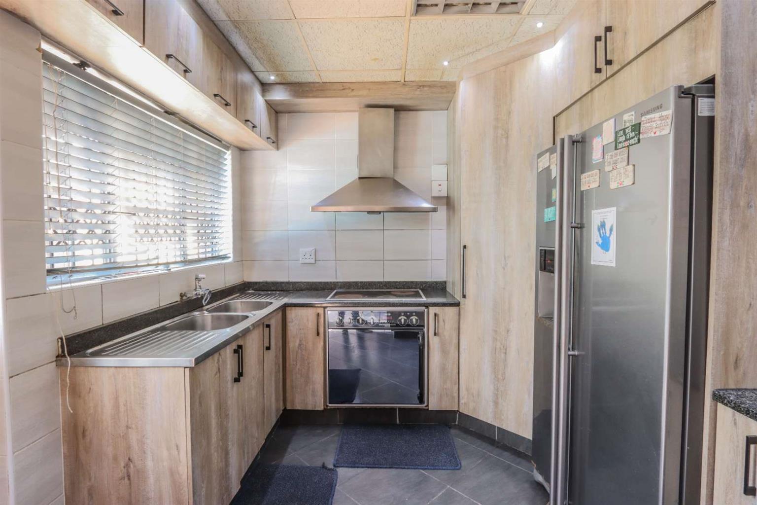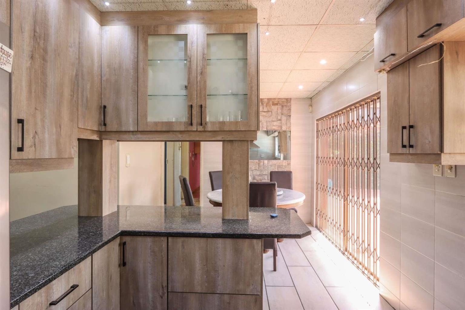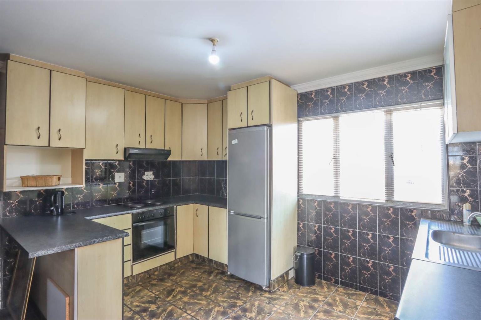 Fully fitted kitchen with under-counter oven, H.O.B, and built-in cupboards.