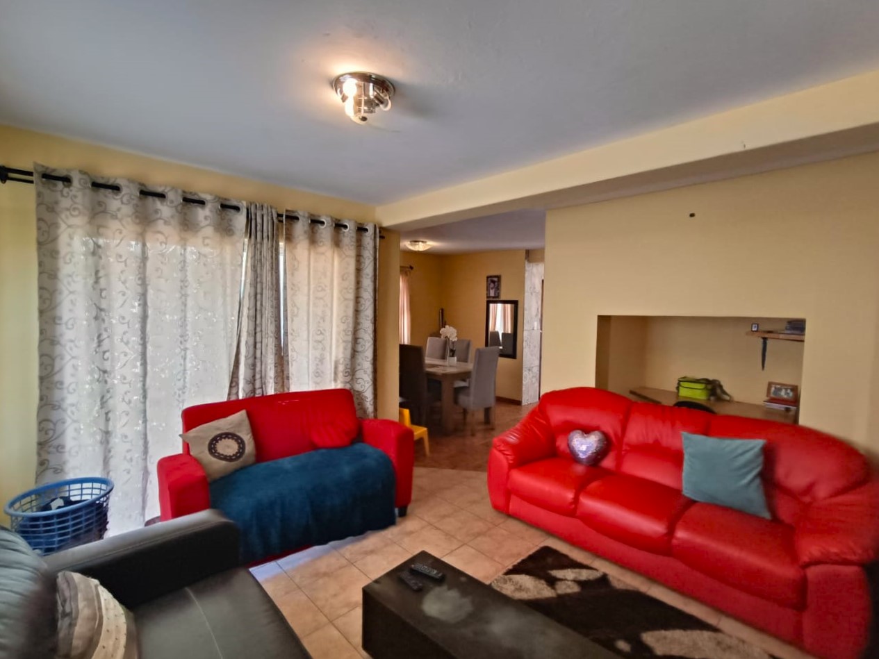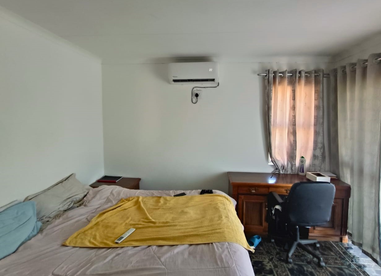Downstairs is the fully fitted kitchen, a dining room, a lounge with an aircon, and a study corner. The lounge walks out on a covered patio and there is also a garage and carport, and a courtyard for you to enjoy some sun.