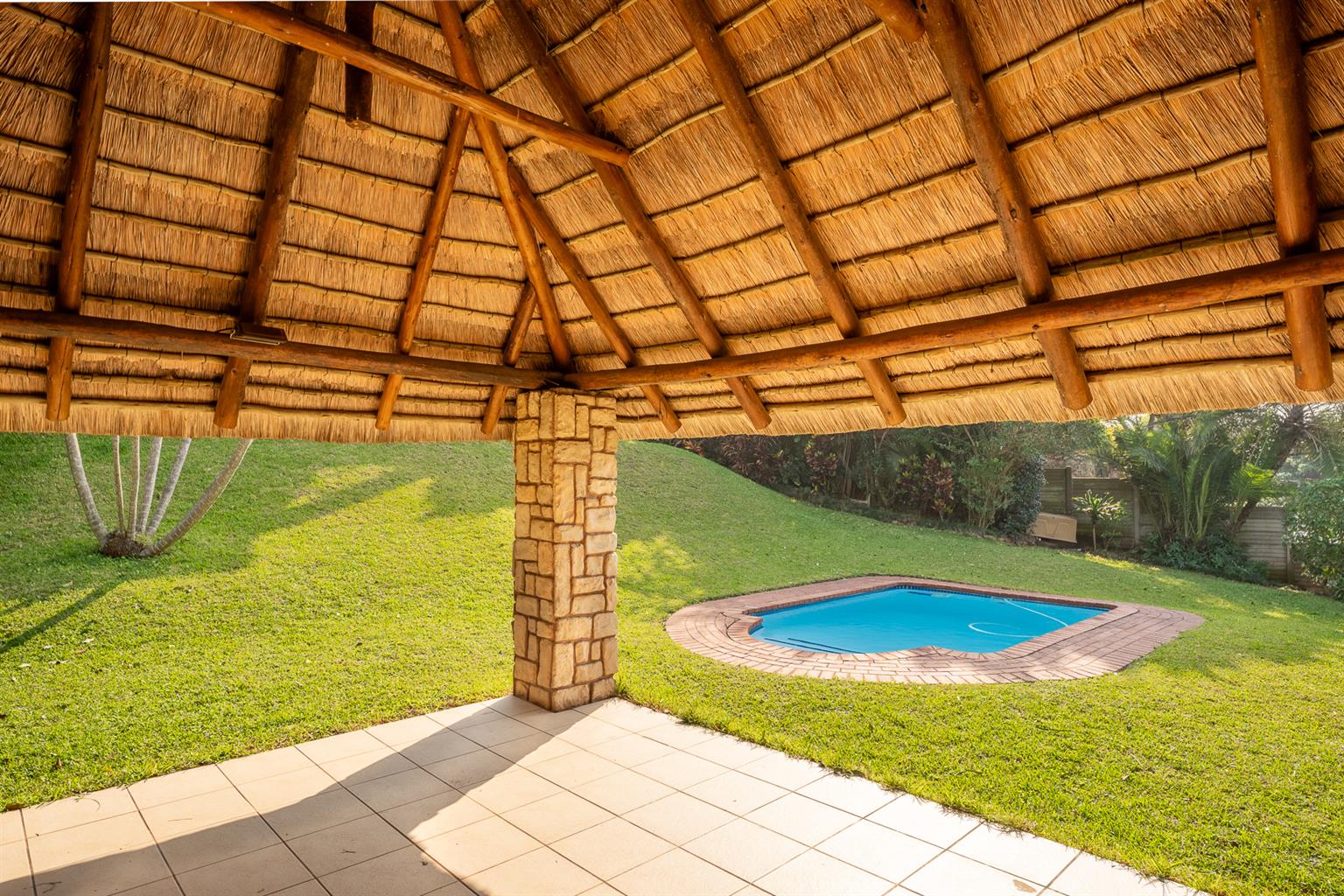 The outdoor entertainment area is a true highlight of this home. A stunning lapa, complete with both gas and wood braai facilities, offers the perfect setting for hosting gatherings and enjoying meals with family and friends. The beautiful garden surrounds a sparkling pool, inviting you to take a refreshing dip on warm summer days.