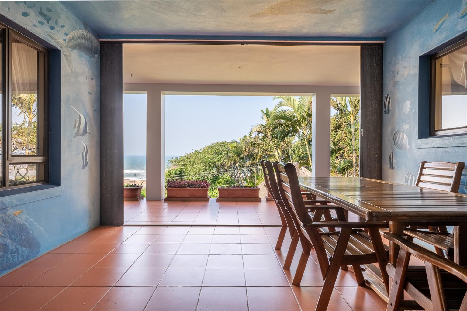 As you enter the home, you are immediately greeted by the mesmerizing vistas of the Scottburgh ocean and lagoon through large, strategically placed windows. The open living area boasts a cozy atmosphere, with a separate enclosed patio that extends the living space and allows you to fully immerse yourself in the breathtaking surroundings.