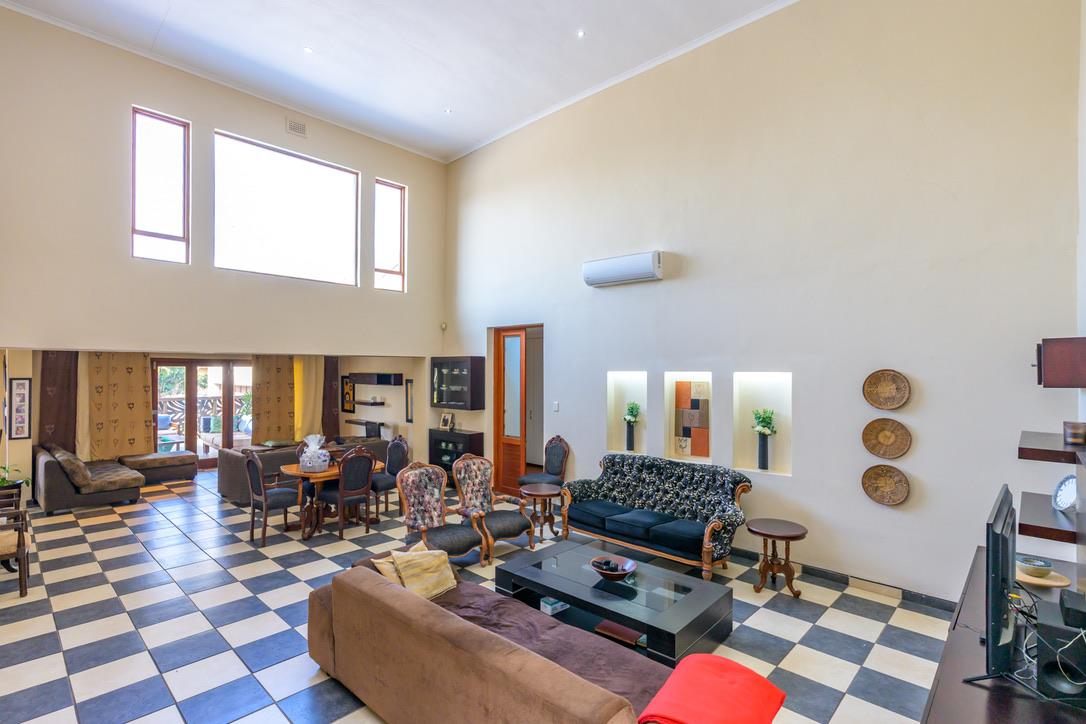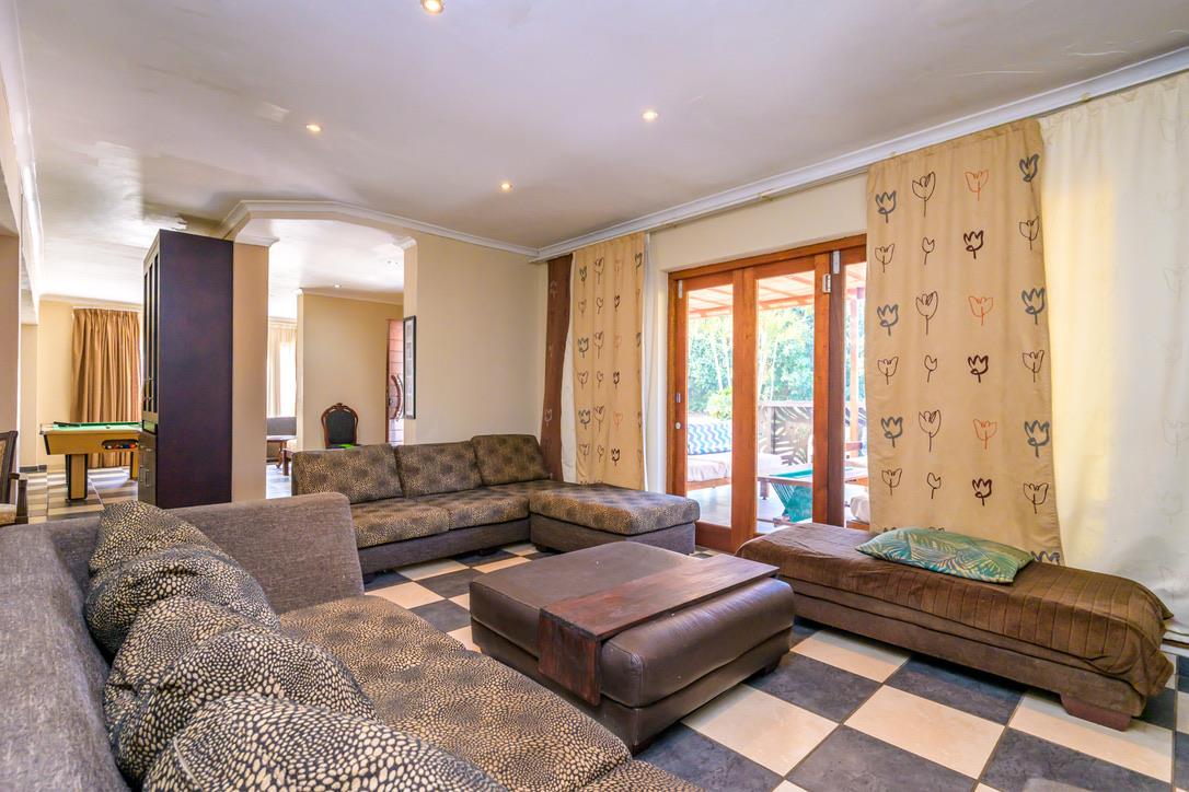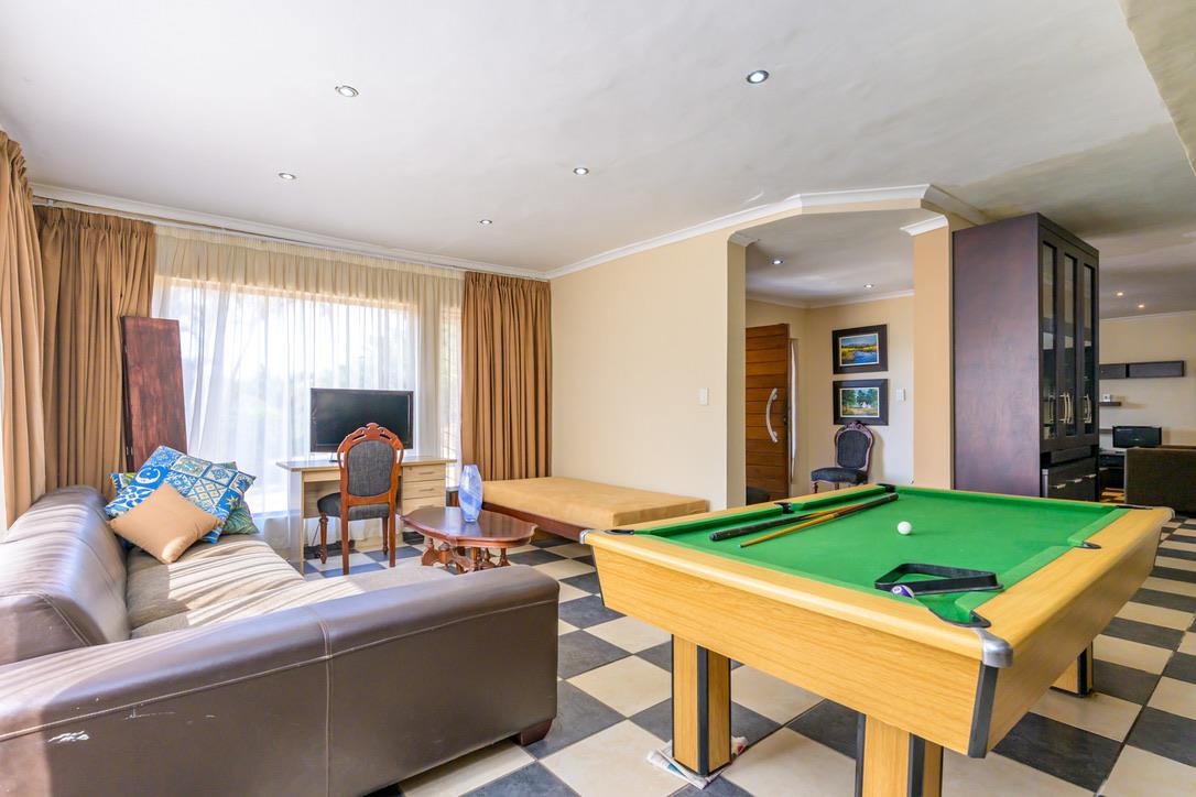 Set on a rare double plot within walking distance of the beach, this versatile residence combines scale, elegance, and income-generating opportunity. Designed for effortless living and entertaining, it offers abundant accommodation across the main house, a sizeable flatlet, and staff quarters making it ideal for extended family living or conversion into a boutique guest house/B&B.