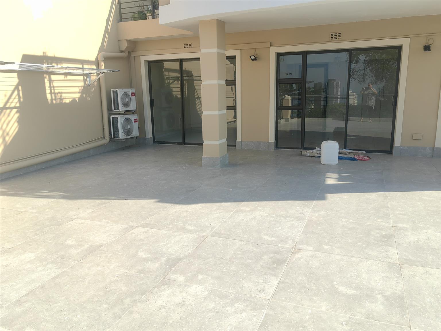 The unit offers three well sized bedrooms all with built in cupboards and aircon. The main bedroom has an ensuite bathroom with seperate shower and bath as well as access to the balcony with views. The second and third bedroom share the main bathroom that is equipped with shower, basin and loo.