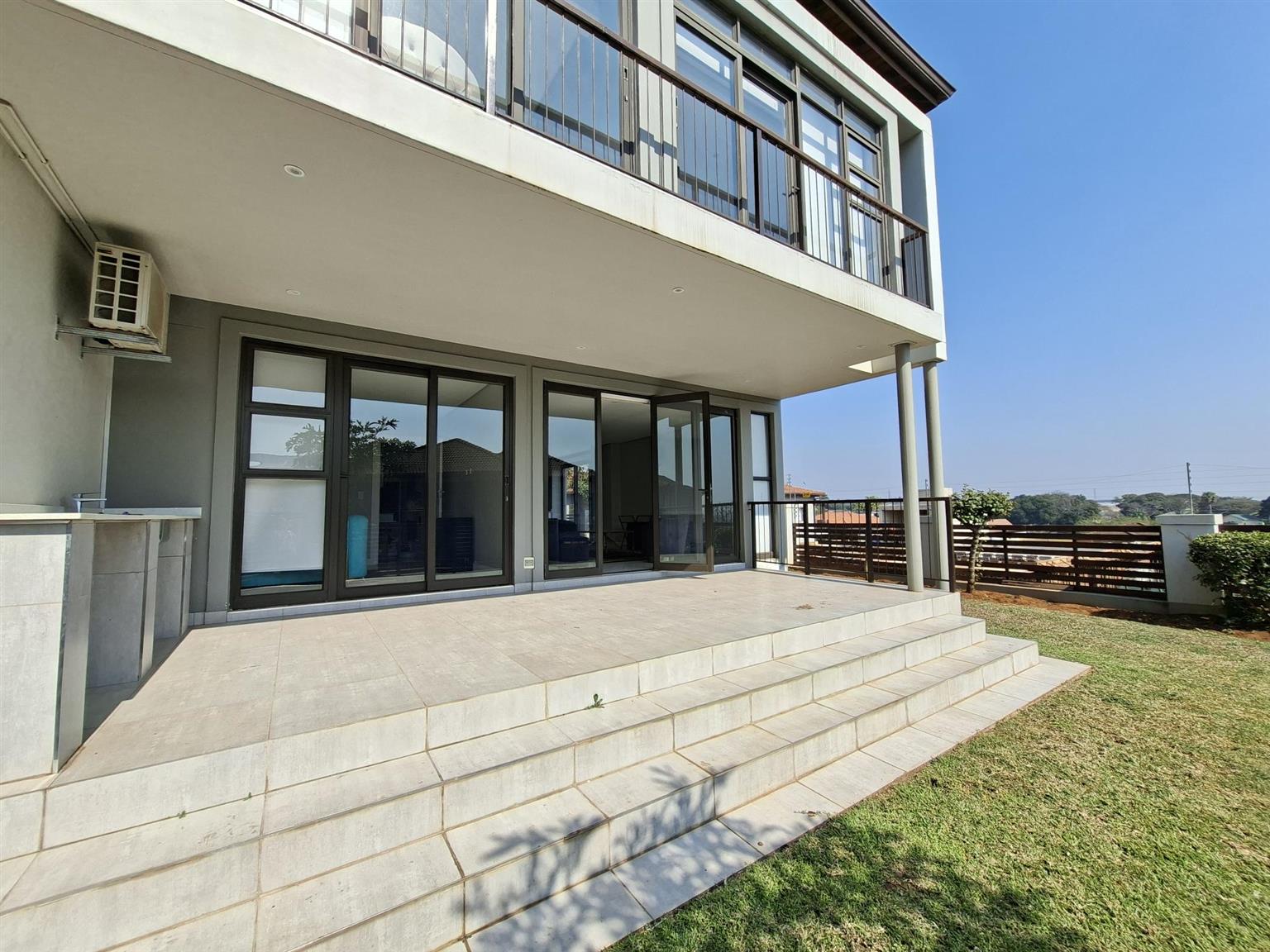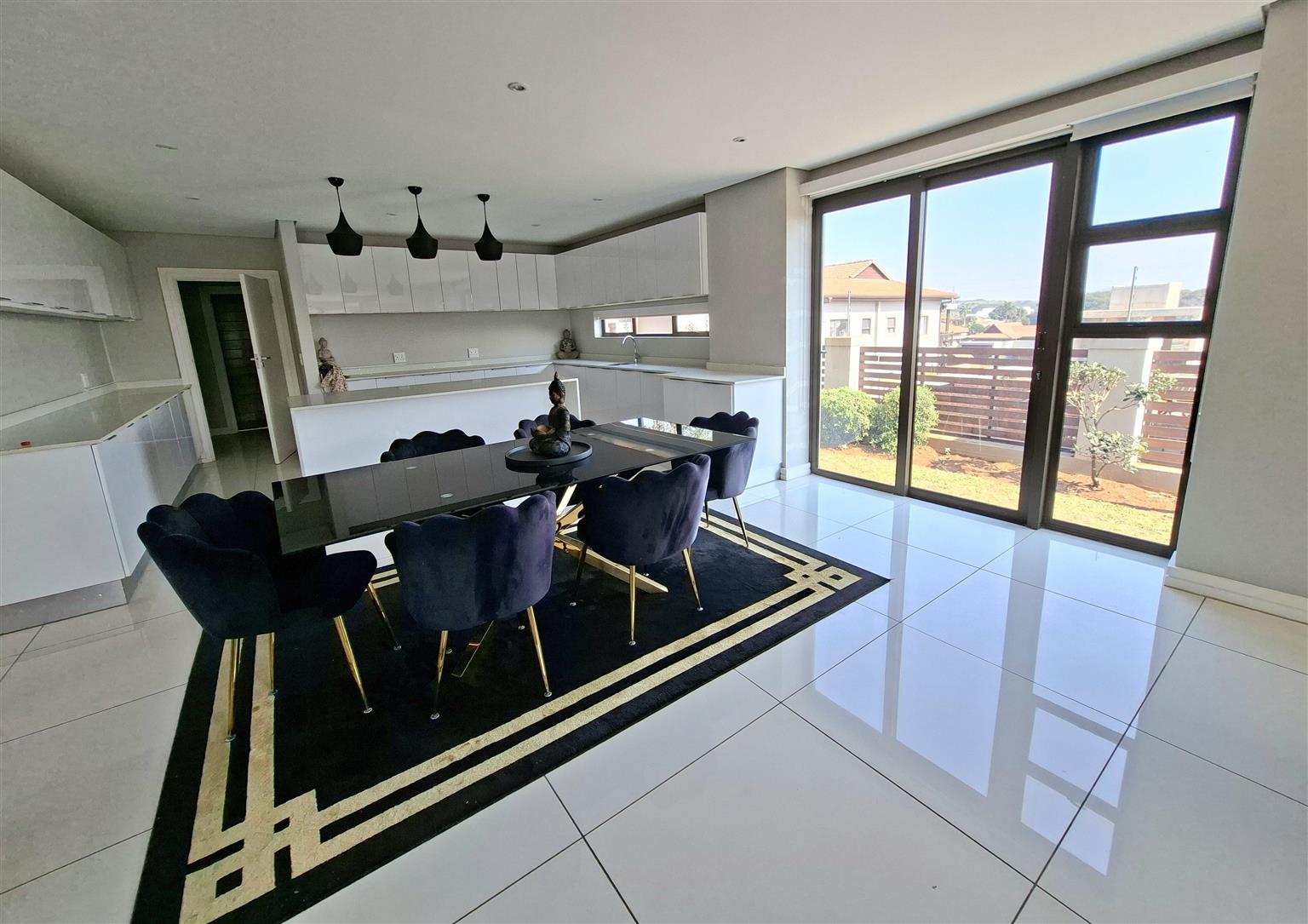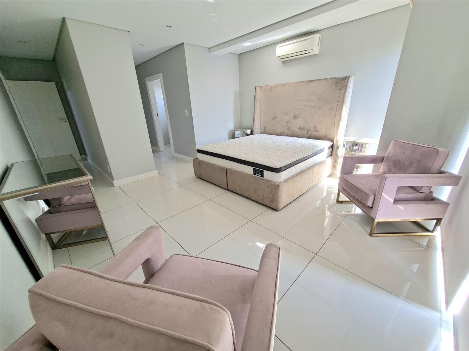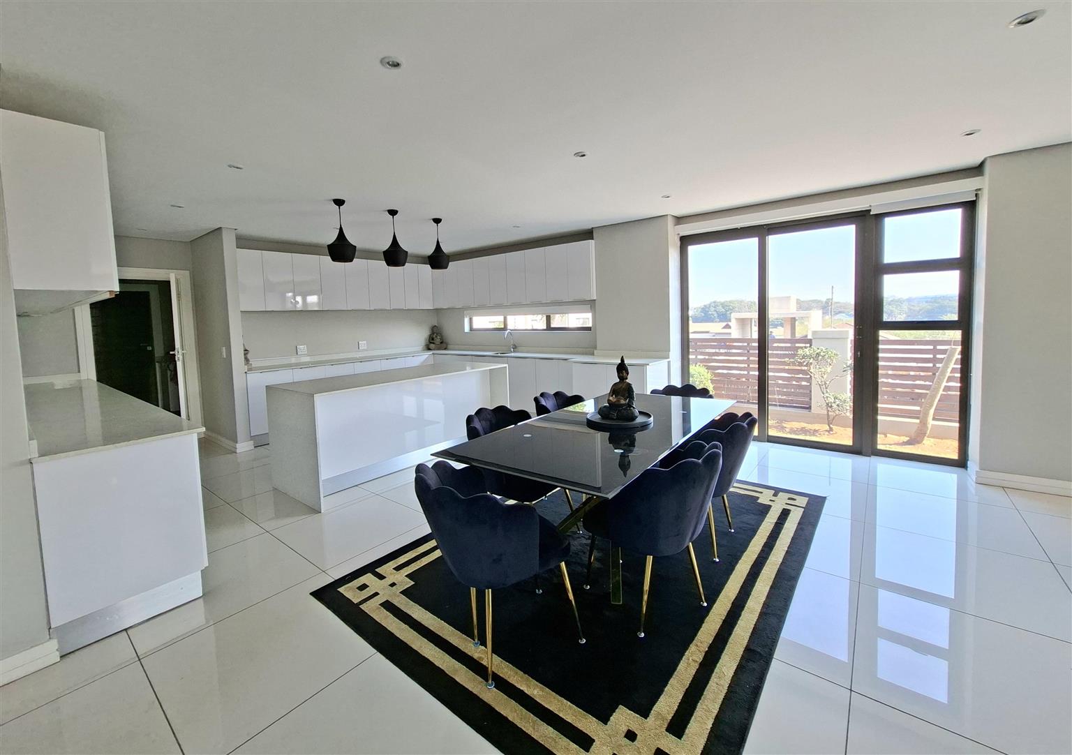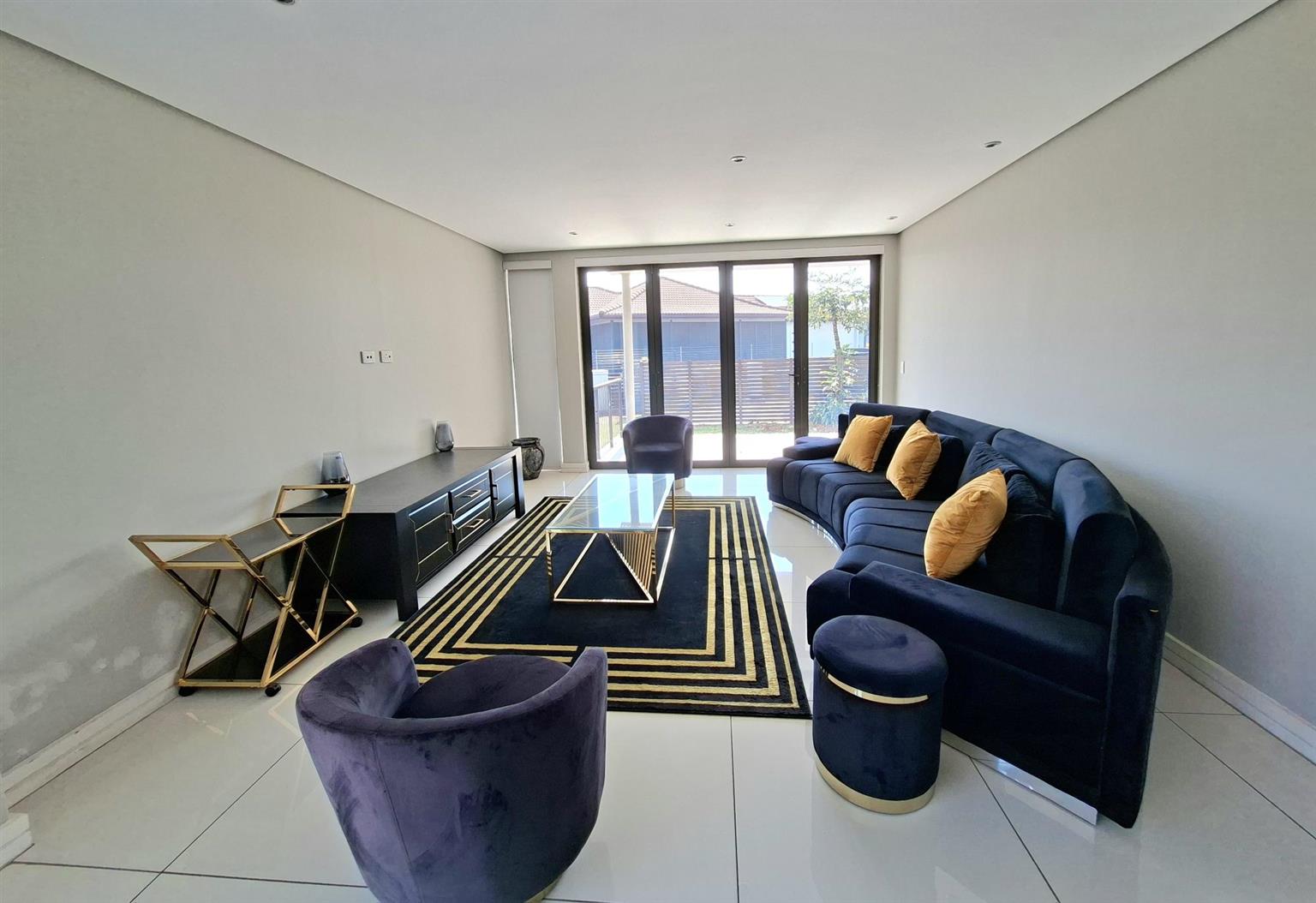 This sophisticated 5 bedroom, 5 bathroom home offers expansive living spaces bathed in natural light. Step into the generous open-plan living area, where the seamless flow extends from the elegant entrance hall through the stylish lounge and onto the enclosed garden, an ideal haven for children and the family dogs. A separate room can be found when entering the home. This is ideally suited as a guest bedroom or TV lounge. The adjoining dining area leads effortlessly to the sleek, fully-fitted kitchen, complete with a large central island, perfect for entertaining or hosting family gatherings. For added convenience, a separate scullery and laundry ensure both practicality and refinement. The double garage leads directly into the home.