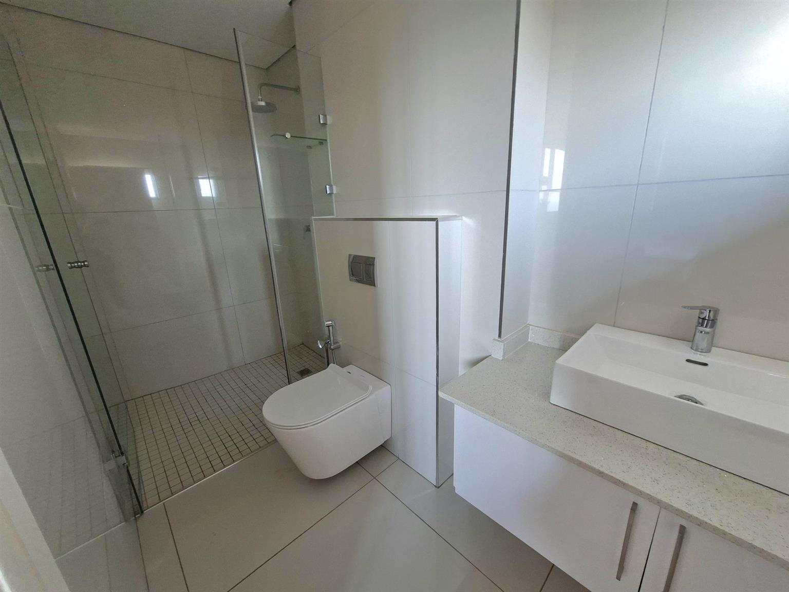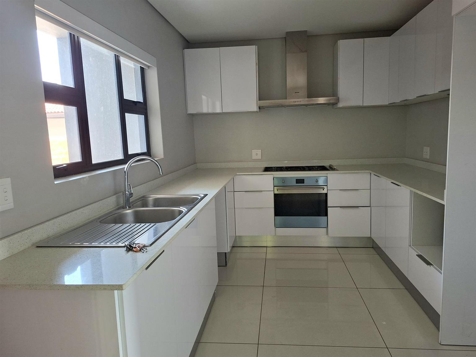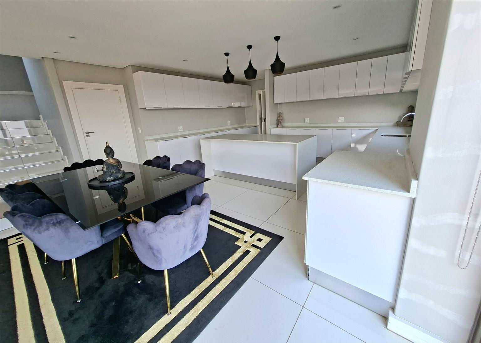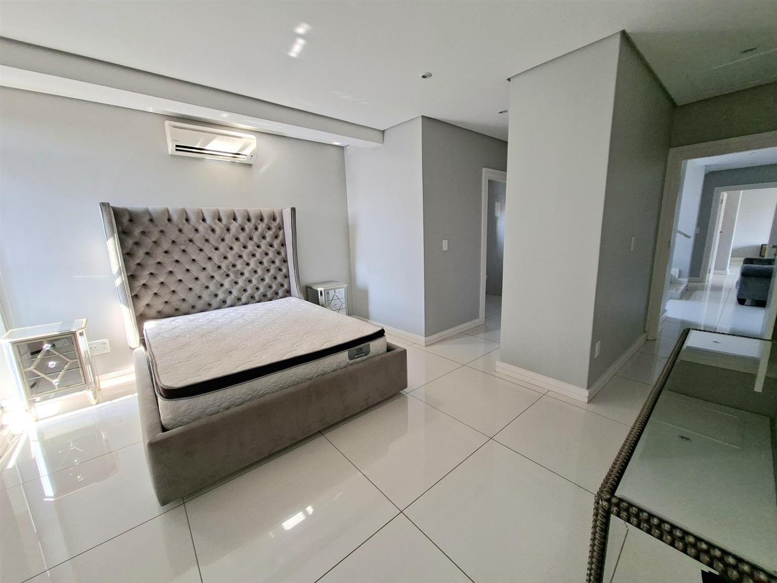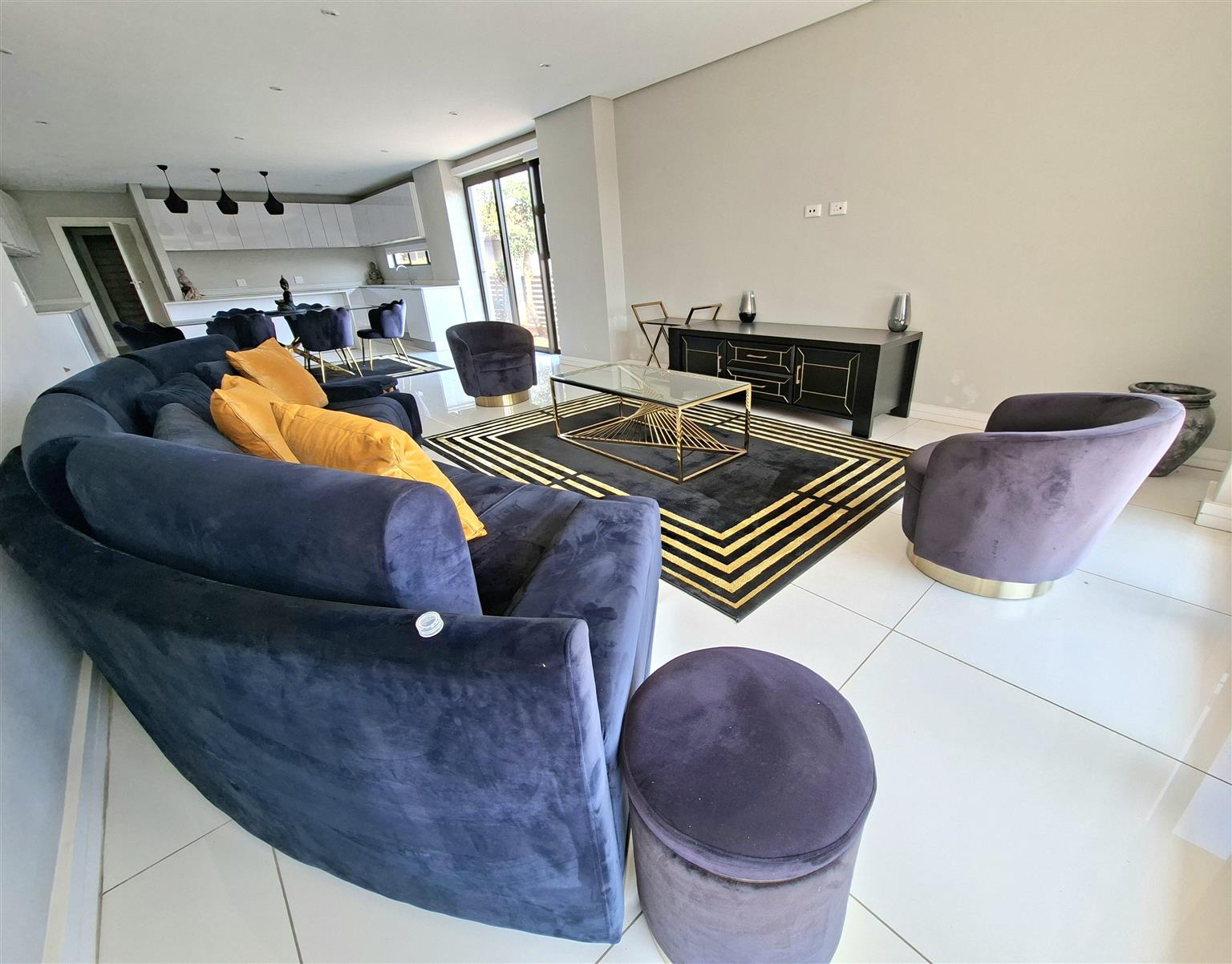 This sophisticated 5 bedroom, 5 bathroom home offers expansive living spaces bathed in natural light. Step into the generous open-plan living area, where the seamless flow extends from the elegant entrance hall through the stylish lounge and onto the enclosed garden, an ideal haven for children and the family dogs. A separate room can be found when entering the home. This is ideally suited as a guest bedroom or TV lounge. The adjoining dining area leads effortlessly to the sleek, fully-fitted kitchen, complete with a large central island, perfect for entertaining or hosting family gatherings. For added convenience, a separate scullery and laundry ensure both practicality and refinement. The double garage leads directly into the home.