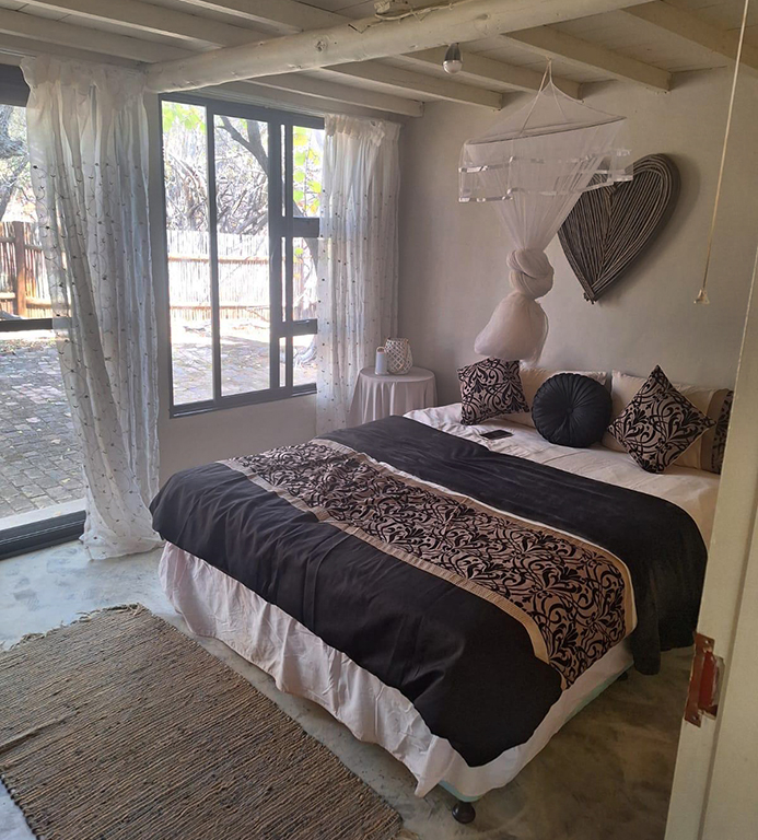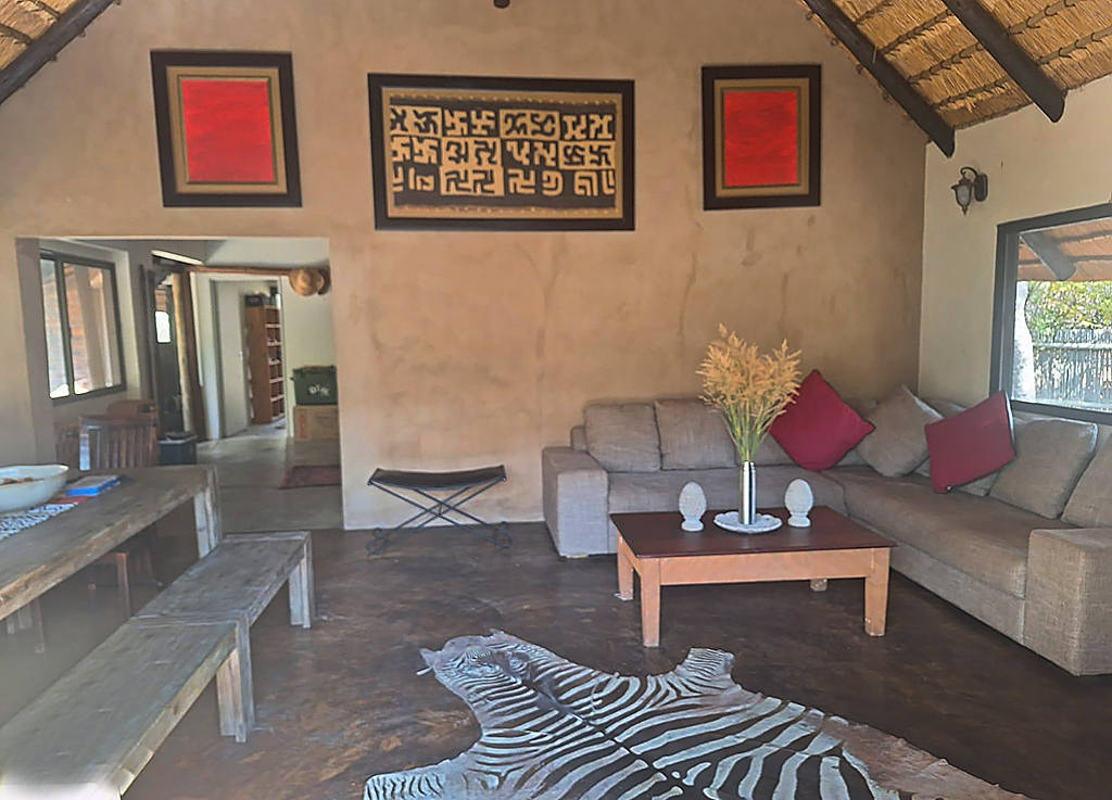 235 ha against the river is the residential section which falls outside the game camp. Stands are laid out to be out of sight of each other and therefor guarantee privacy. This beautiful 3 bed Chalet with a rondavel are close to river. Upstairs room there's two double beds, two more can sleep in living room. Total 10 persons.