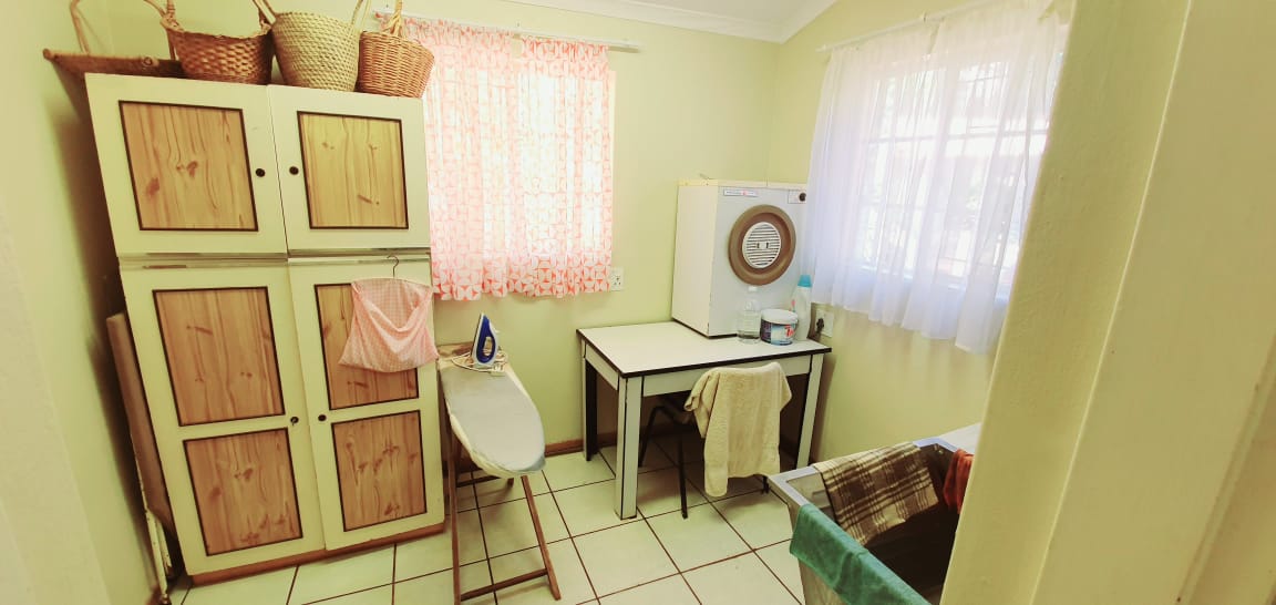 This spacious home offers a lounge, family room, dining room, study, kitchen with granite tops, scullery and laundry, 4 bedrooms, 3 full bathrooms, sparkling pool surrounded by a lovely green garden supported by a borehole, 5000L water tank and pump, garage for 4 cars, 2 carports, domestic room with toilet, 3phase electricity. The home is 400m2 and the stand 2855m2.