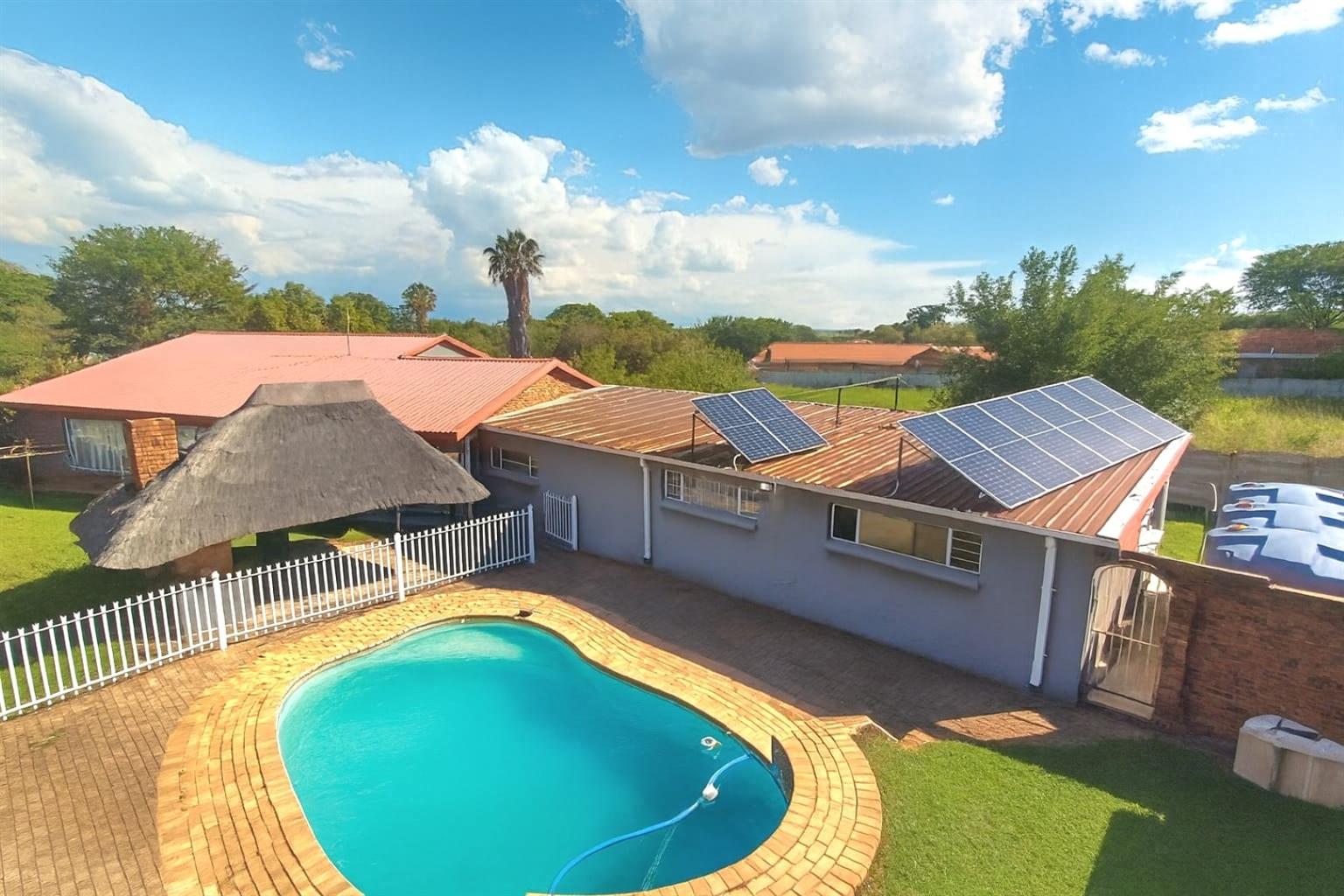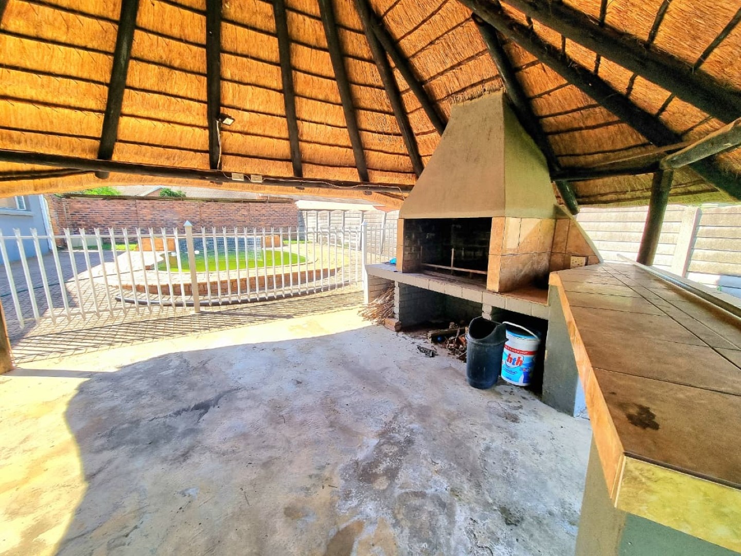 Weekends melt into bliss here: a sparkling pool waiting for summer splashes, a thatched Lapa with built-in braai for long Bushveld afternoons, and generous outdoor areas for kids, pets, and guests to roam. The home itself is warm and inviting, offering a mix of tiled and wooden-ceiling finishes that give it character and comfort.