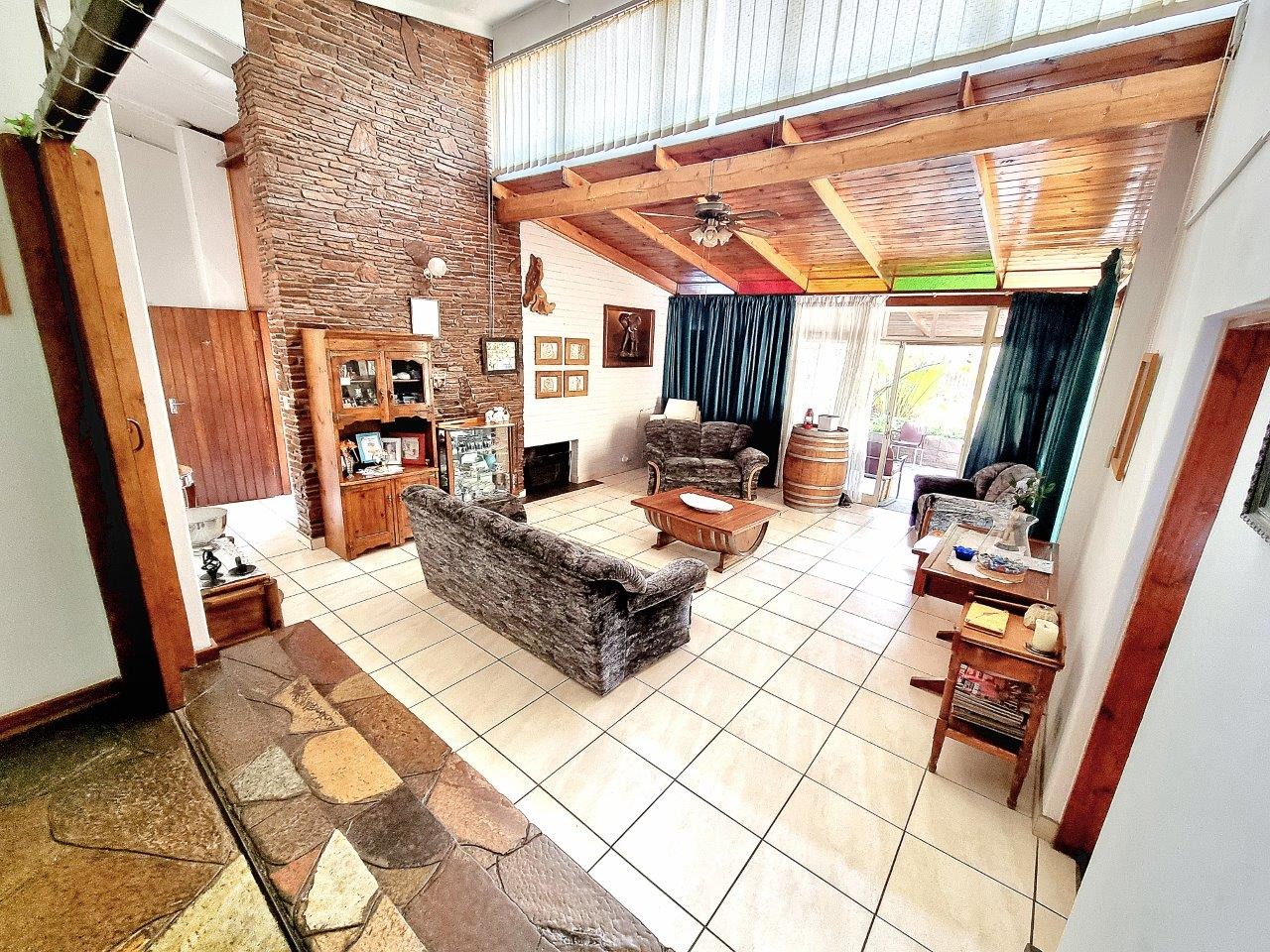 This beautiful four-bedroom home with an office is situated on a vast 1920 square meter stand, offering ample space for comfortable living and future expansions. The house boasts three bathrooms, two guest toilets, and a double domestic accommodation. The single garage is extra long, fitting two cars in tandem, alongside a separate carport and two additional open parking spaces. Inside, the cozy lounge features its own unique fireplace, complemented by a separate dining area.