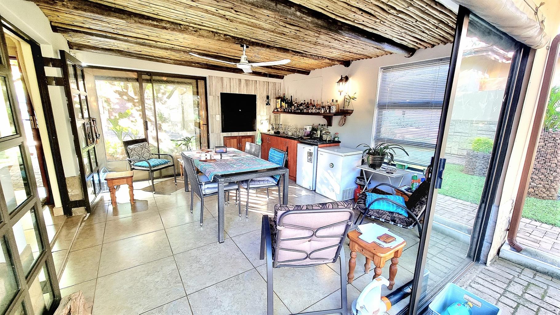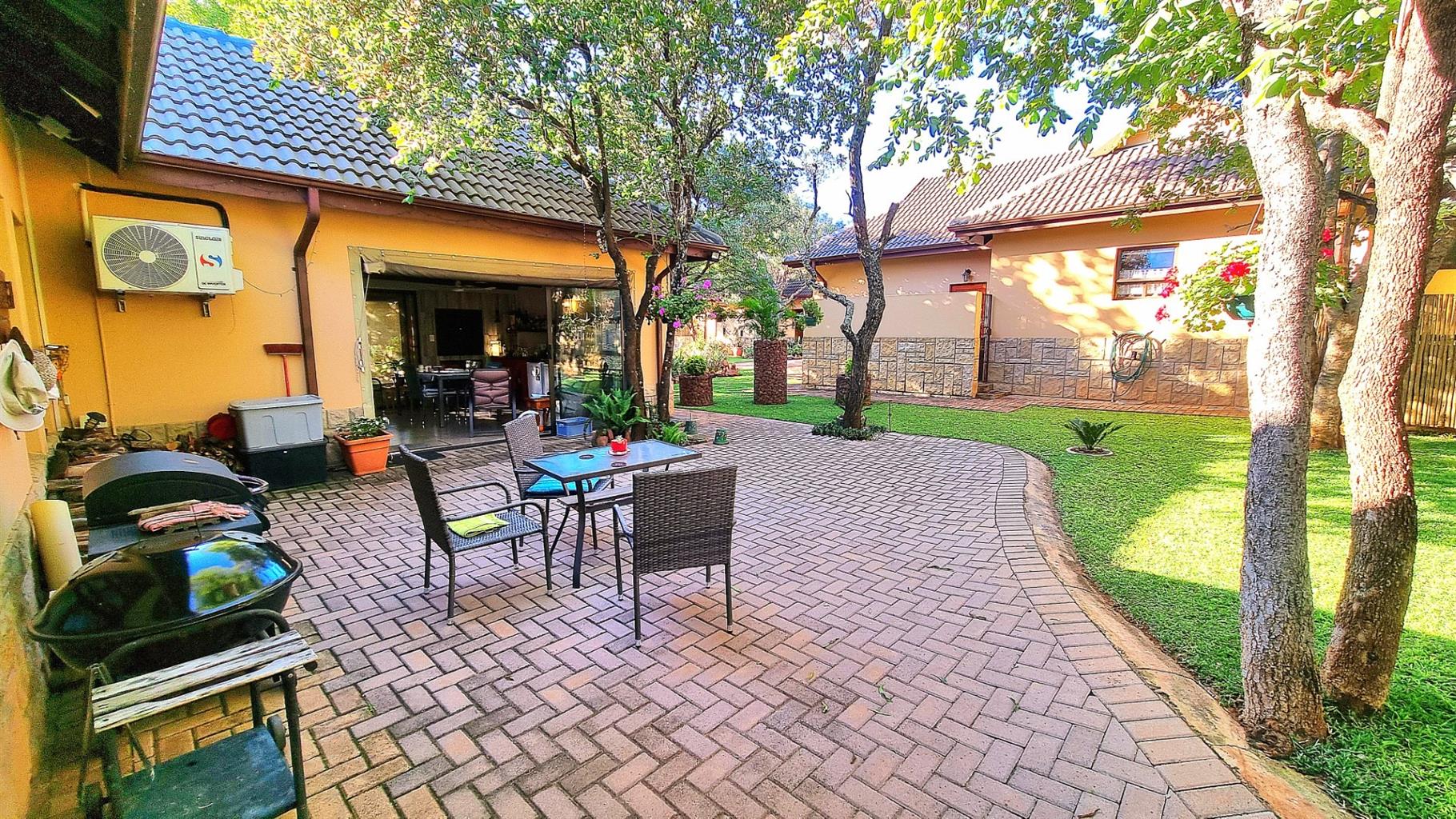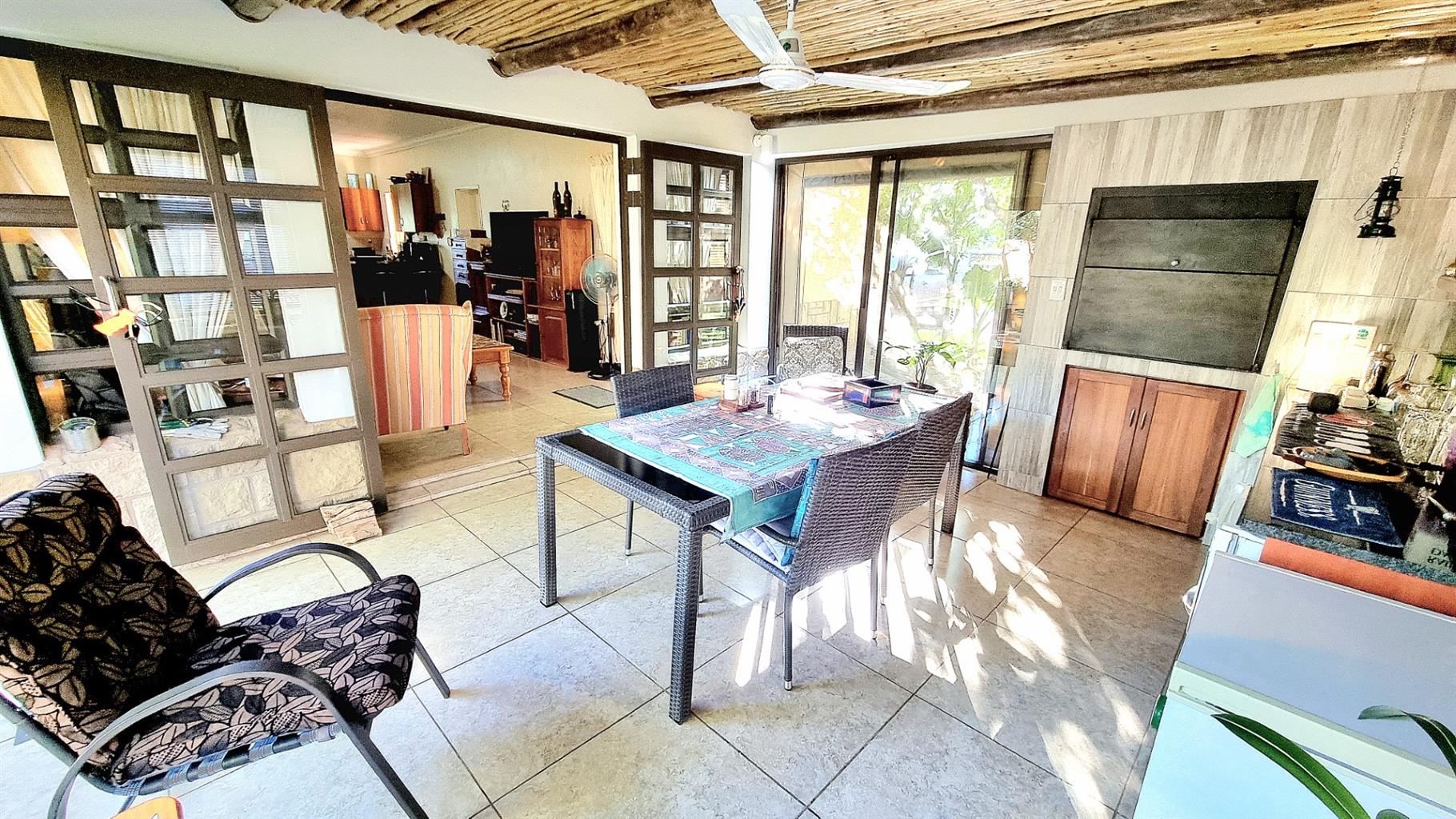 Stay connected with fiber internet and enjoy year-round comfort with two air-conditioning units. The home features beautiful tiles throughout and a dedicated laundry area in the garage that opens onto a separate back section. The lush garden is a delight for garden enthusiasts. From the living room, sliding doors open to the covered patio area, featuring an indoor braai and ample space for entertaining. Additional sliding doors and canvas coverings provide versatility, making this the perfect entertainment space.