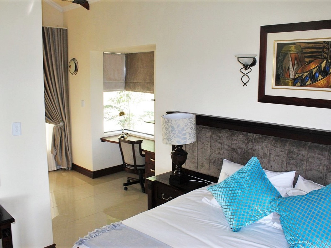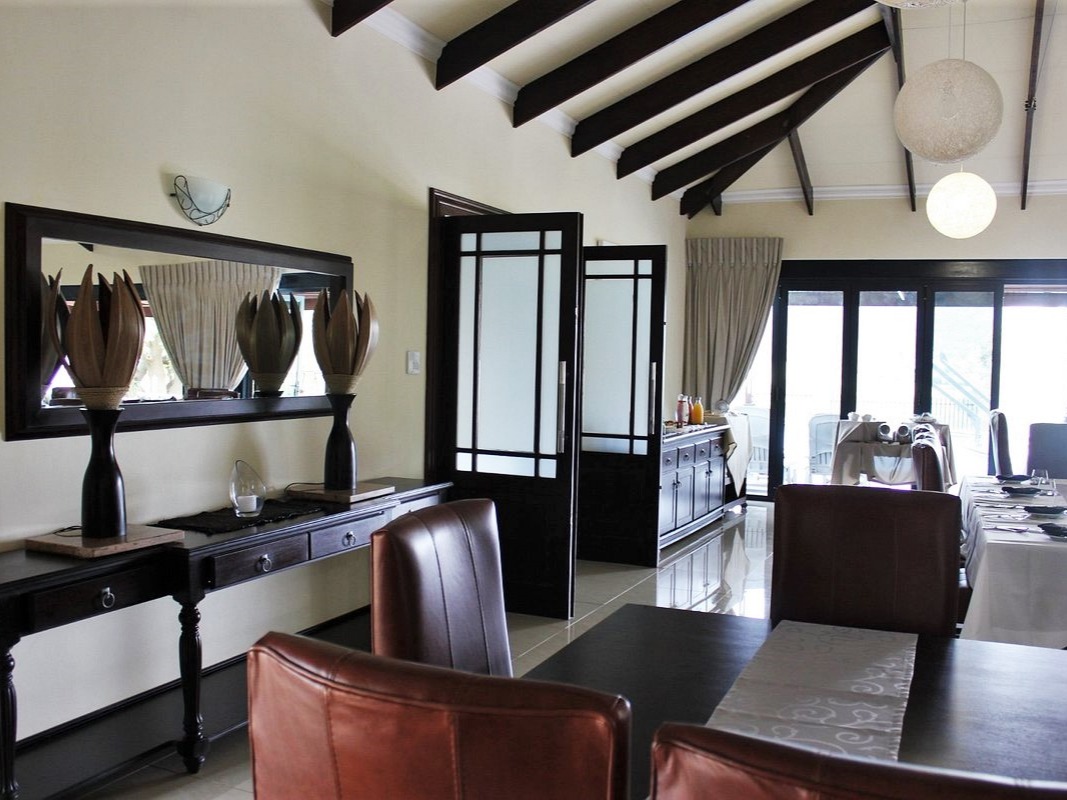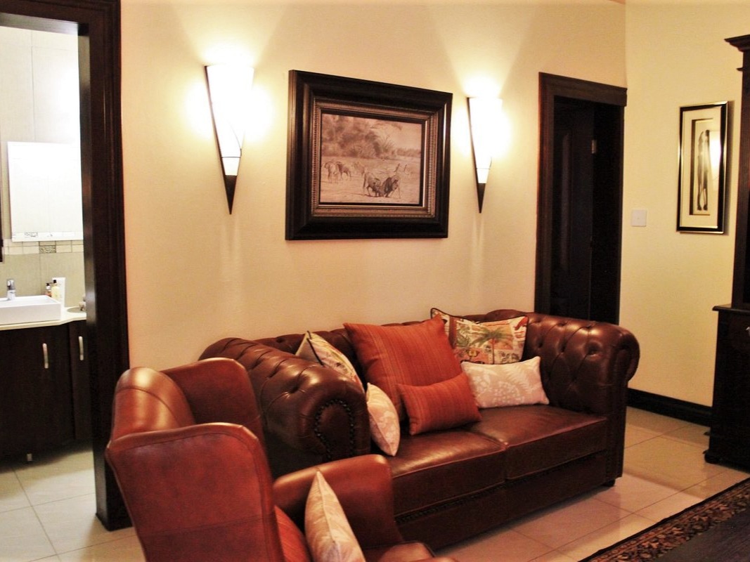 Main lodge fully tiled. Fully equipped Gourmet Kitchen complete with adequate Mahogany Built in Cupboards and Marble Finish Tops.