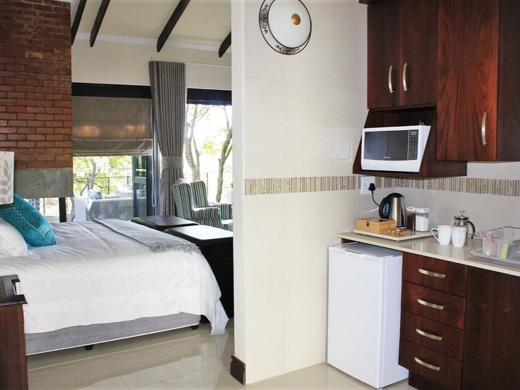 The four modern lodges are designed as a one-bedroom en-suite unit with a west-facing deck overlooking the un-spoilt bushveld. These lodges cater for comfort during all seasons and have an eye height glazed fireplace, wooden television display unit, private garden, -outdoor shower and -steel deck that is enclosed by stainless steel handrails & brackets which is combined with commercial steel handrail panels.