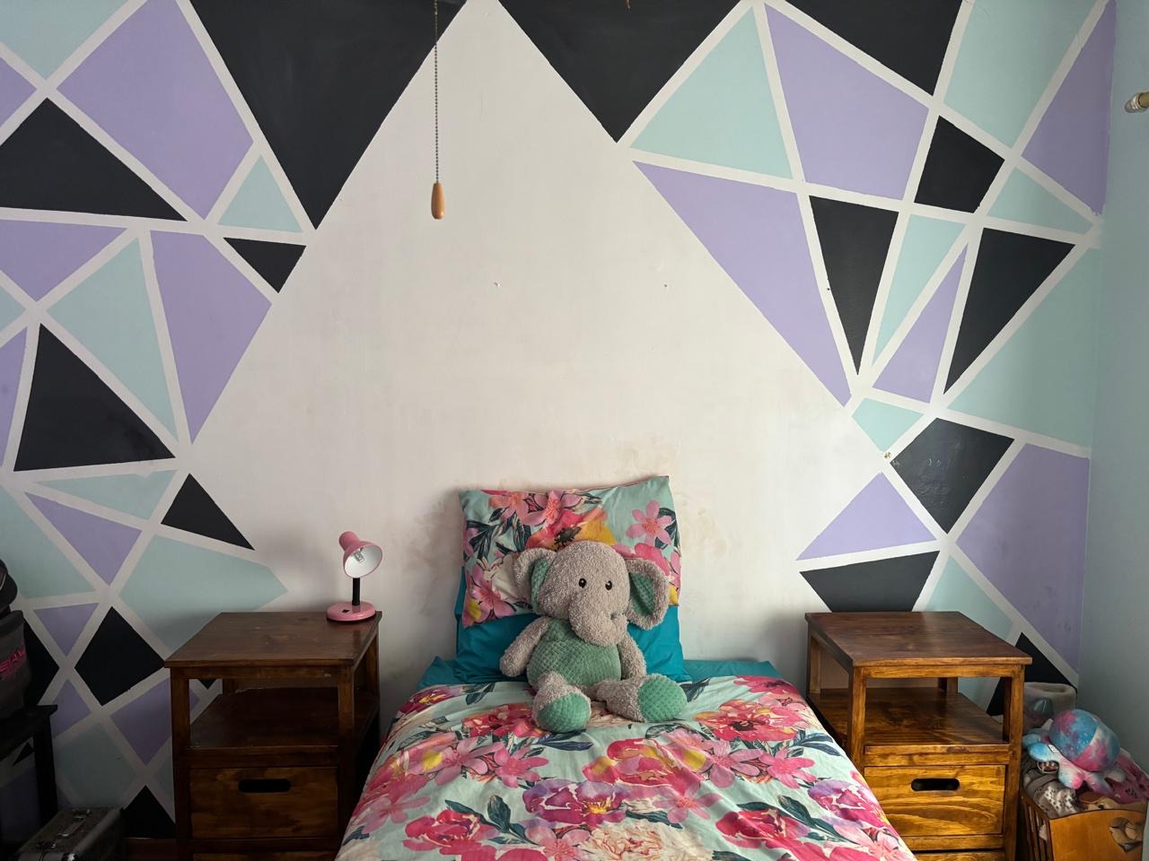 Two bedrooms share a full bathroom, complete with a bathtub.