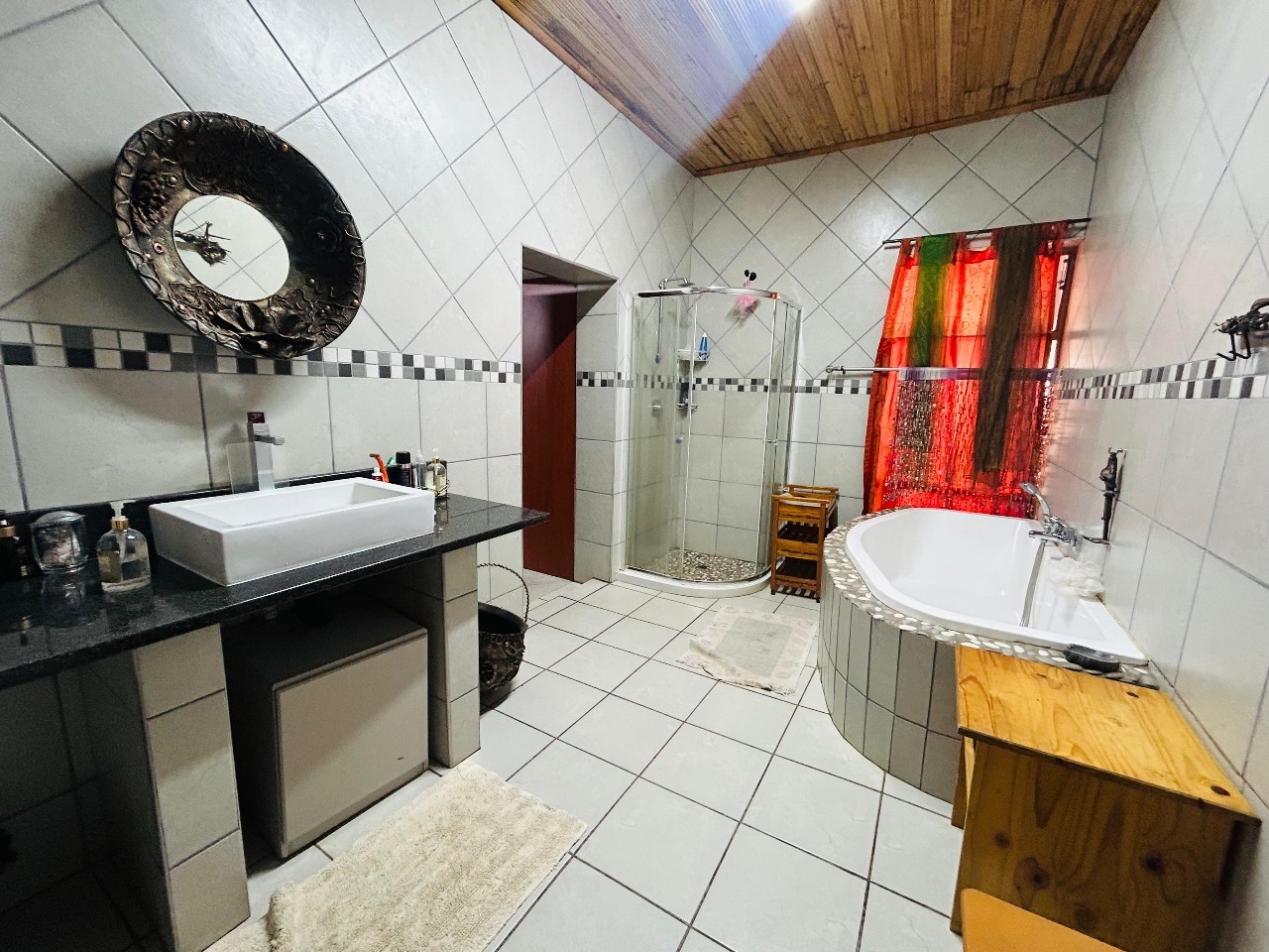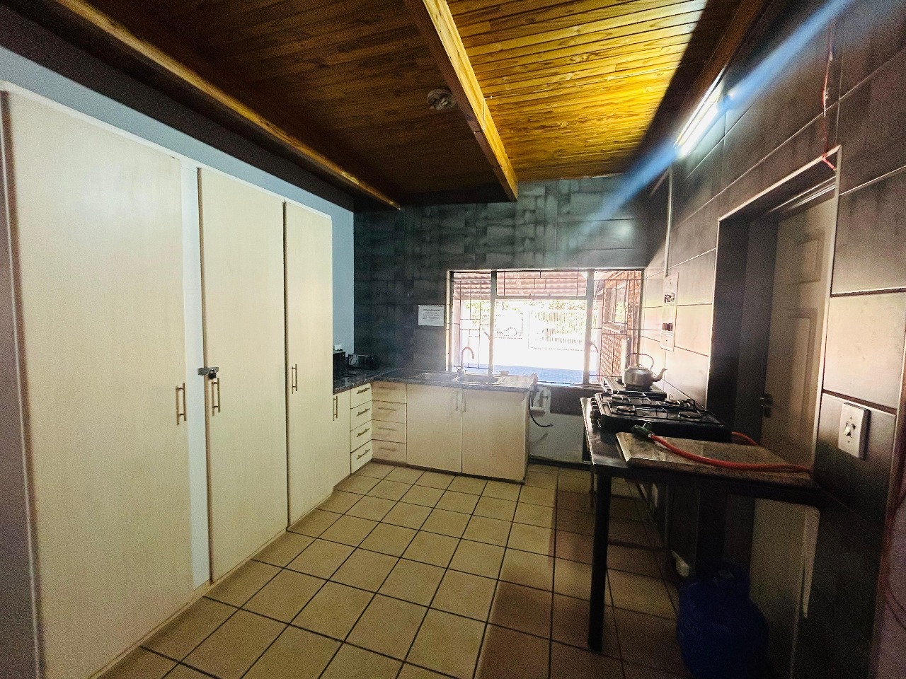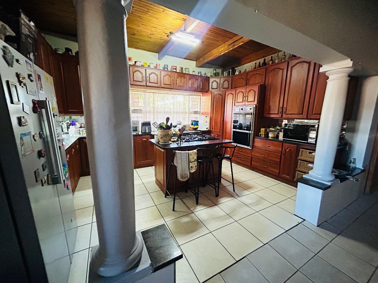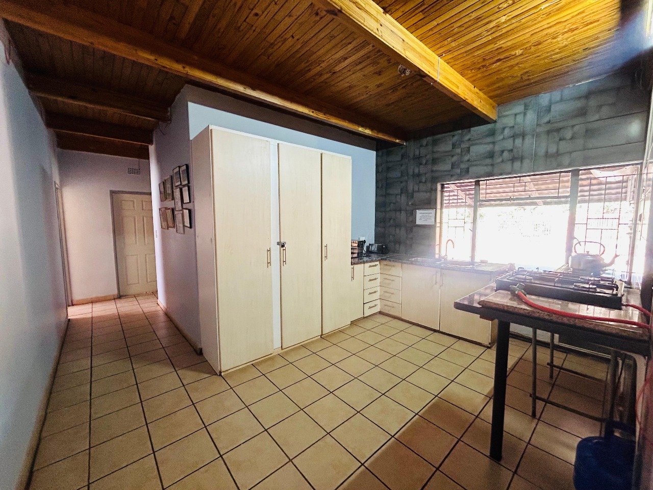 This spacious home features an open-flow design, combining the living, dining, and kitchen areas seamlessly. The kitchen is well-appointed with ample cupboard space, a scullery, laundry room, and both a gas and electric stove – ideal for uninterrupted cooking regardless of load shedding.