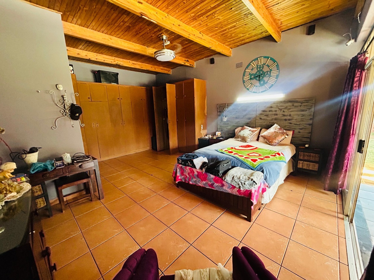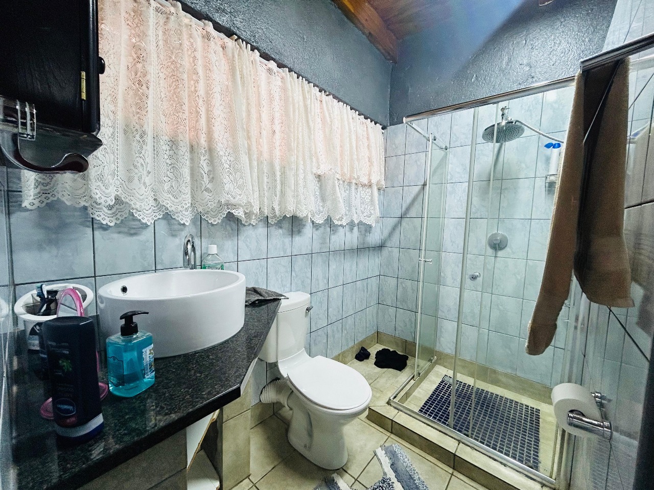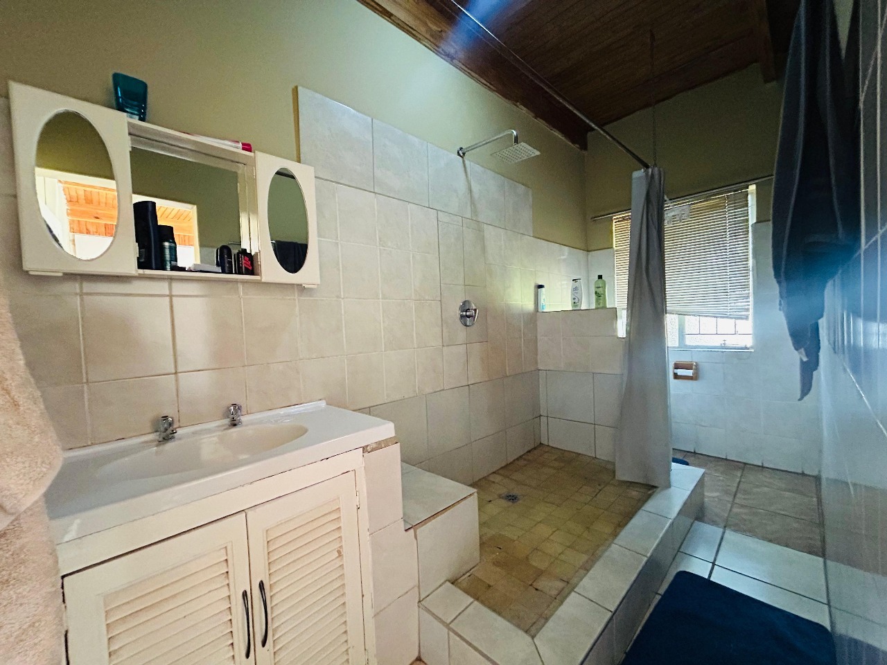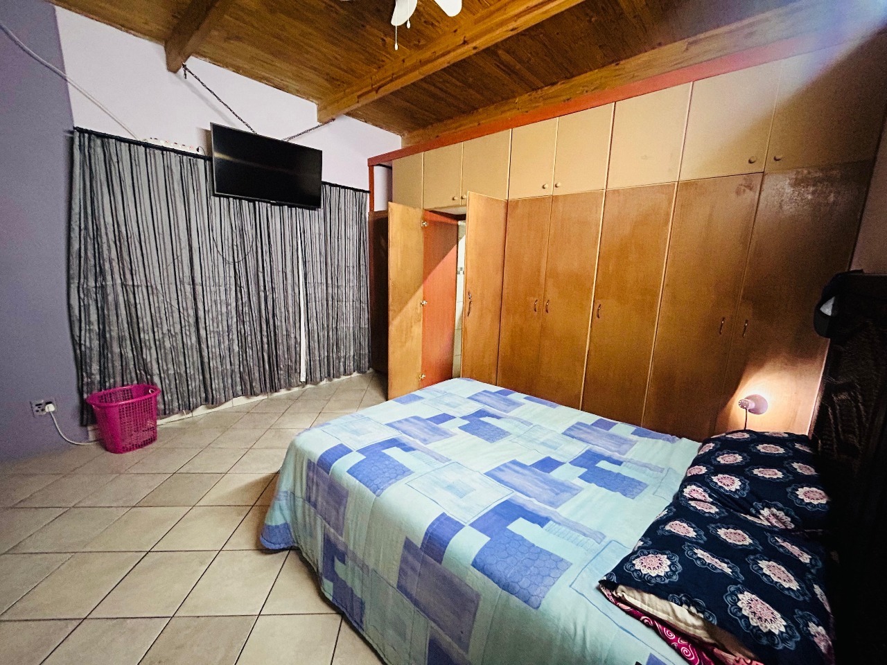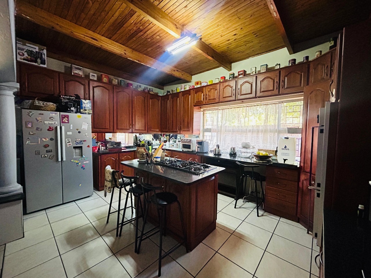 This spacious home features an open-flow design, combining the living, dining, and kitchen areas seamlessly. The kitchen is well-appointed with ample cupboard space, a scullery, laundry room, and both a gas and electric stove – ideal for uninterrupted cooking regardless of load shedding.