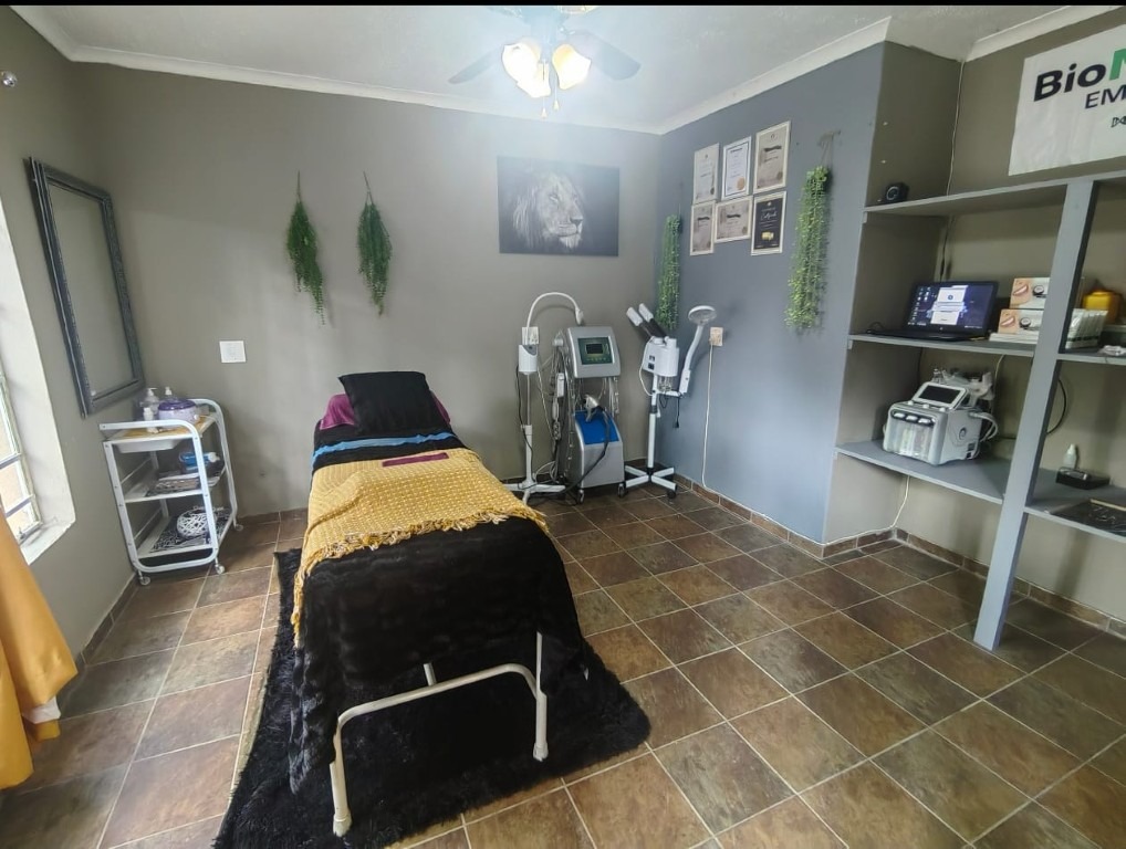Spacious open plan lounge and dining area that overlooks the entertainment area and the lovely pool. A passage door opens onto the lovely outdoor undercover verandah with a built-in braai, with sink and storage space, a tranquility personified. The benefit to the property is a one-bedroom, one bathroom, and a small living area. The home is secure with an alarm system and an electrical fence. The property is surrounded by walls and palisades, a motorized gate, neatly paved with exterior lighting.