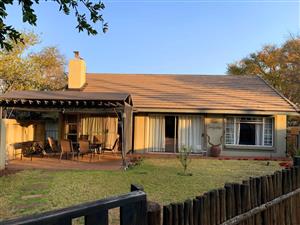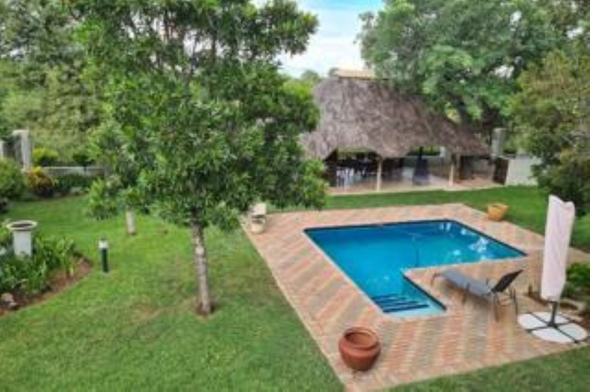 The accommodation of a 4-bedroom house with 3 full bathrooms is ideal for someone who would like to stay permanently in the bush. The main bedroom is very spacious and has a small lounge and a walk-in closet, an en-suite bathroom, and an outside shower.