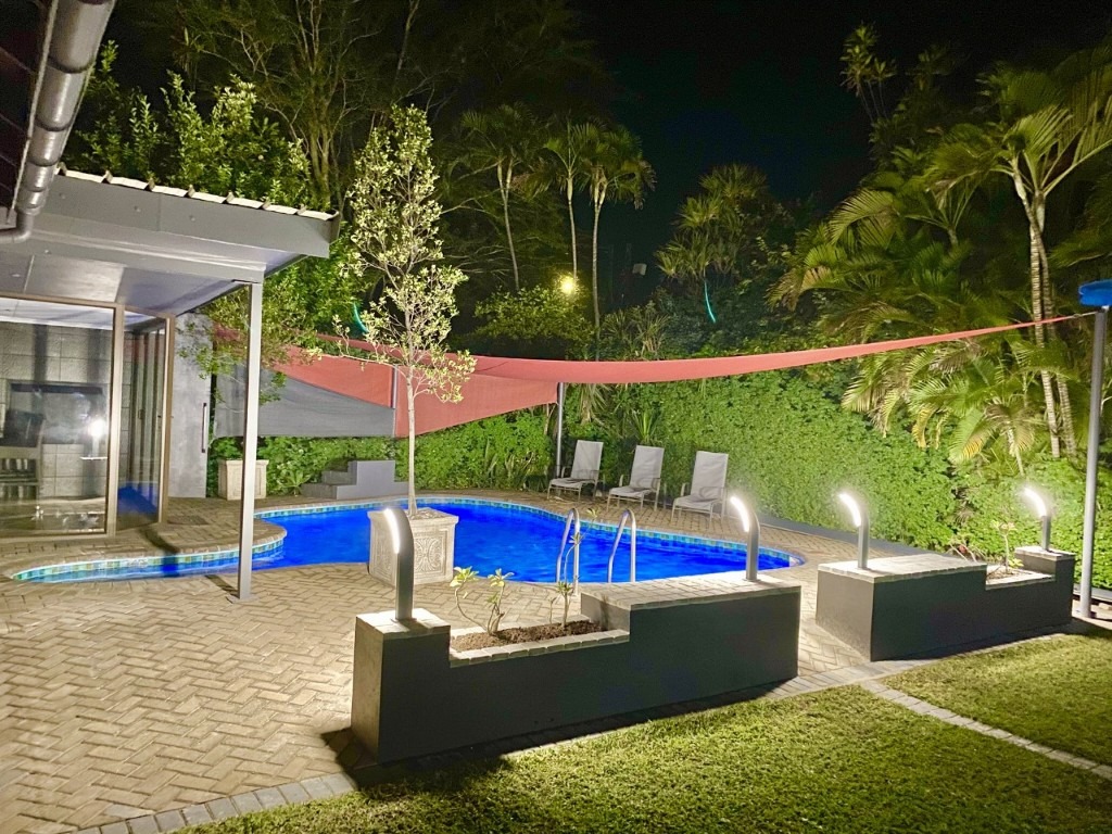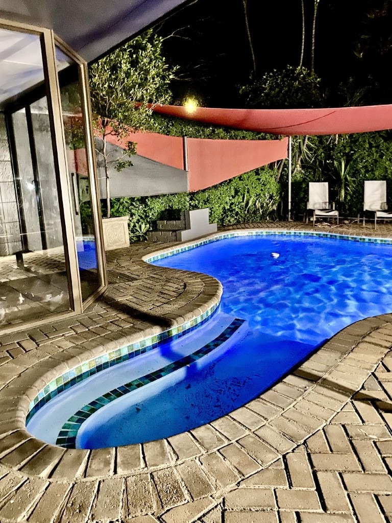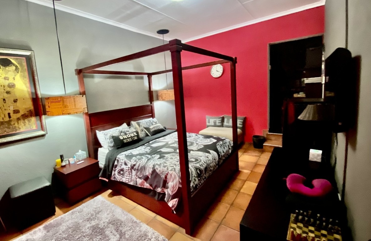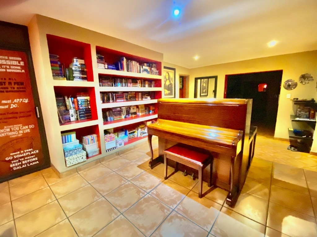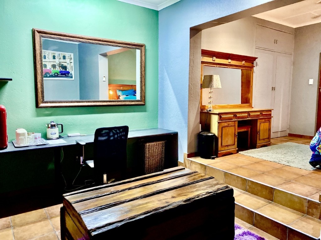 This property welcomes many different uses, with the zoning allowing for business and residential use. Generous, reserved, and visitor parking is available for your staff and customers, making this a high-demand location. Bonus: all furniture included. The nearby amenities will meet your everyday business, staff, and customer needs. A lovely foyer welcomes you into the property. Accommodation: 3 bedrooms, each with sliding doors that open onto the pool. Master bedroom walk-in closet and en suite. One large guest bathroom. The open living areas offer a wonderful sense of freedom; however, it is essential to establish visual and functional zones to avoid the feeling of one large, undefined area. Beautiful kitchen with island and pantry, every corner told a story, separate laundry. One bedroom flatlet with its kitchen and bathroom. An excellent alarm system is linked and an electrical fence. The property is surrounded by walls. Demestic quarters with a bathroom and Wendy's house for the garden tools. Silence the diesel generator and 5000Lt JoJo tank with a booster pump. Exceptional indoor and outdoor entertainment pool and braai area. Established garden. If you want the investment of a lifetime, the opportunity to own a rare piece of real estate, this is it. A thoughtfully designed home of timeless design and faultless function. A workshop with bathroom, office spaces with a bathroom can be converted into another flatlet for more accommodation.