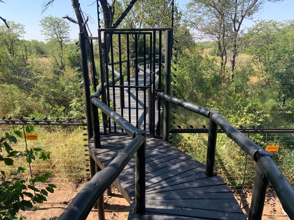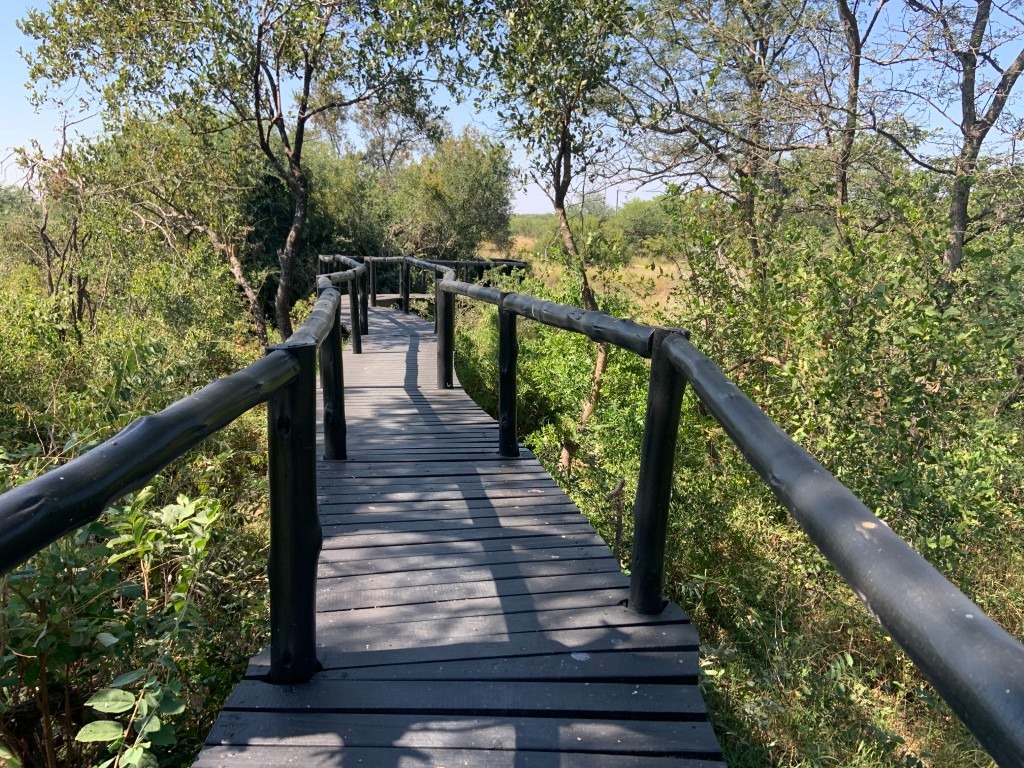 Leading off from the boma is a 40m long raised wooden walkway that meanders at canopy level through a thicket of Black monkey thorn, false–thorn and sickle bushes to a game viewing hide at the edge of the waterhole.